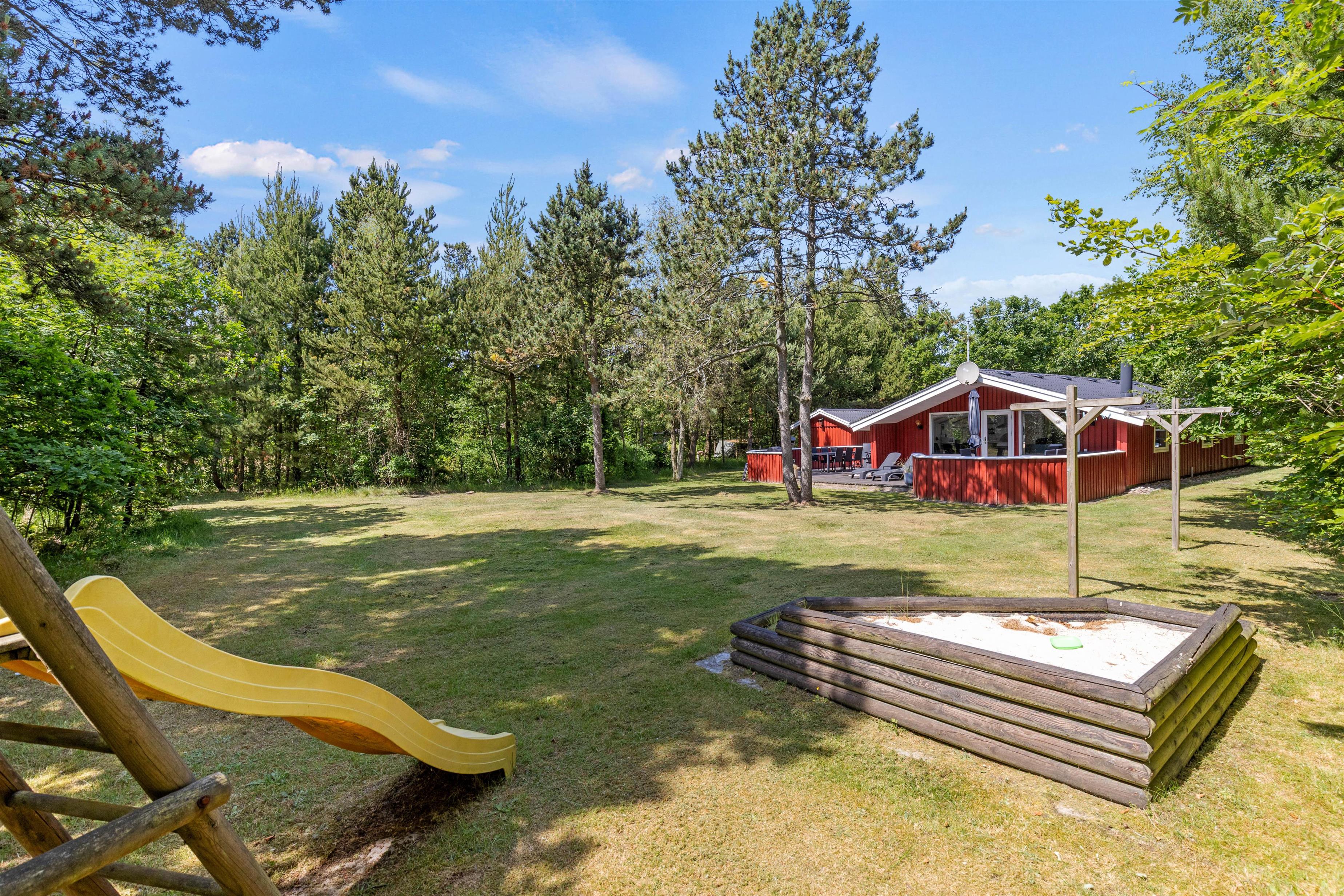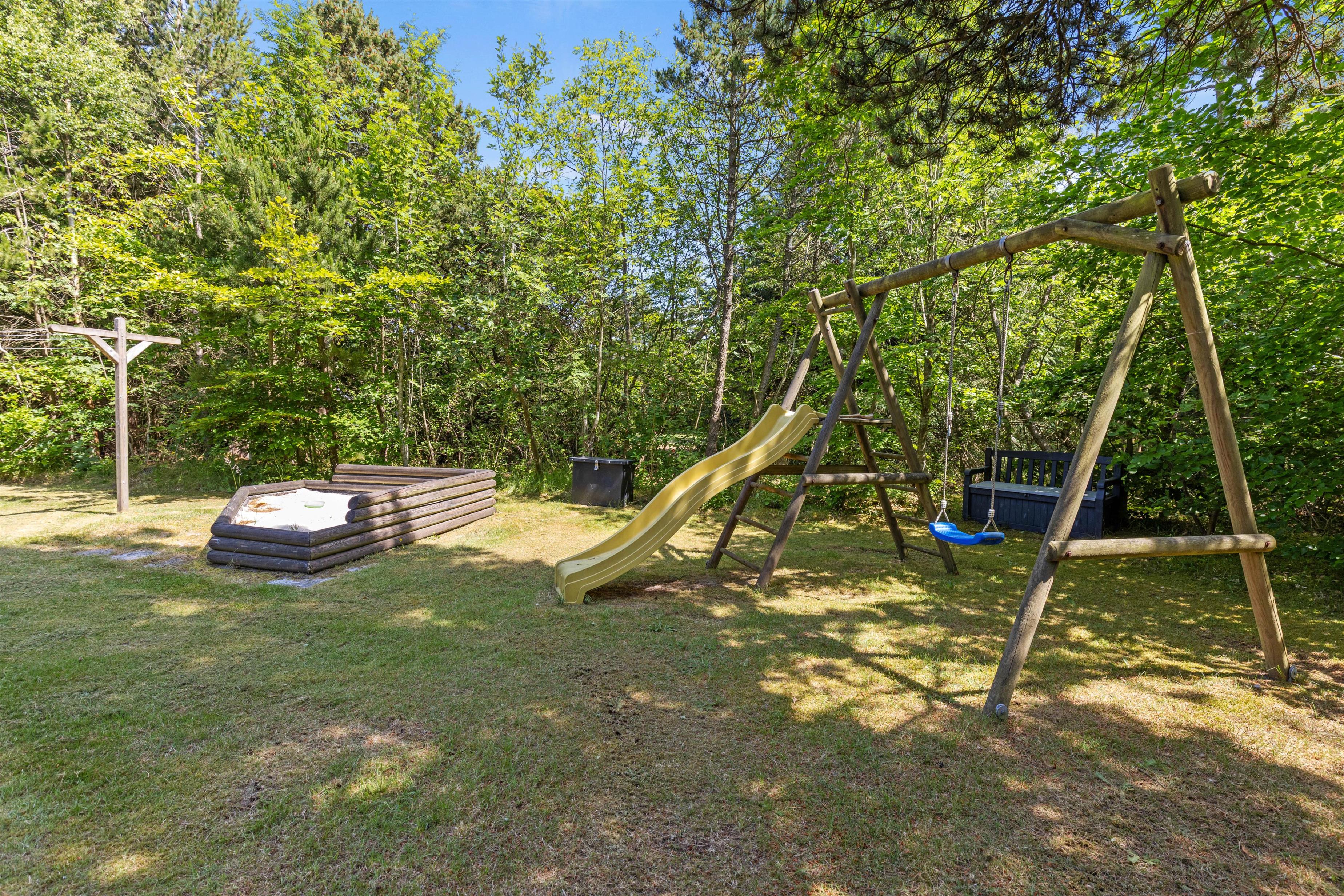 Foran huset er en stor græsplæne, som især vil falde i god jord blandt de mindste feriegæster, der her kan lege og spille. Her kan hele familien også tage en runde vikingespil eller en omgang fodbold, hvis I er friske. Der er også en sandkasse og et gyngestativ, så de mindste aldrig kommer til at kede sig.