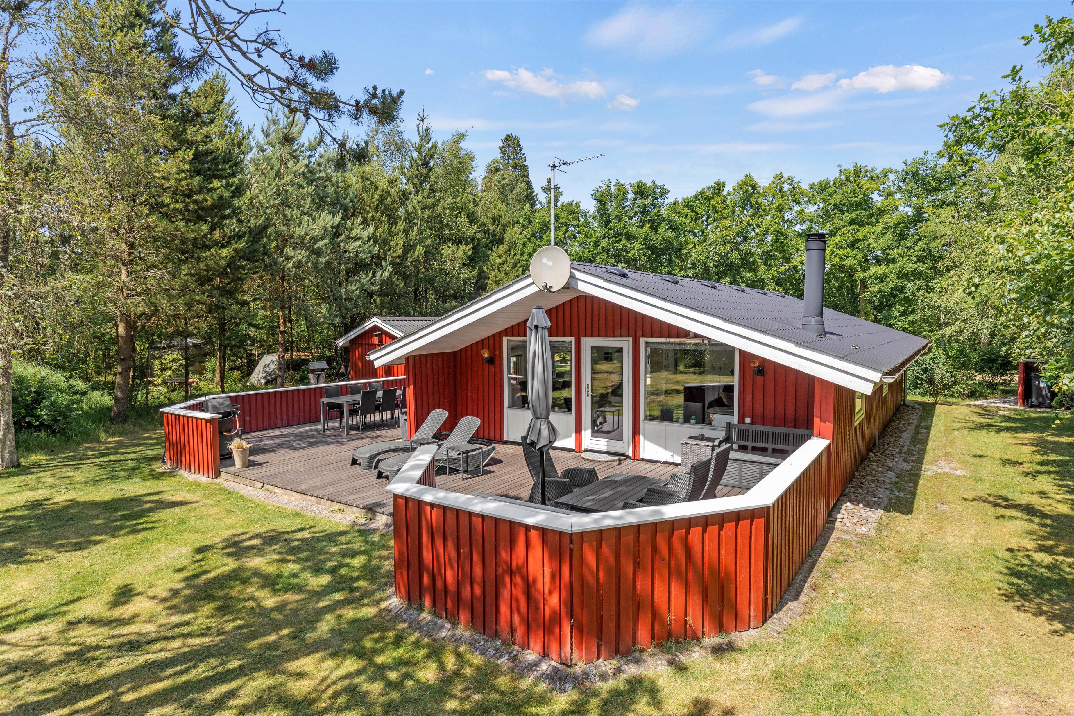 Har I lyst til en dejlig og afslappende ferie midt i Houstrups skovlandskab? Her kan I tilbringe en helt ugeneret ferie med jeres nærmeste. Nyd stilheden og fuglenes fløjten, og betragt den smukke solnedgang bag de mange høje træer, som omkranser huset.