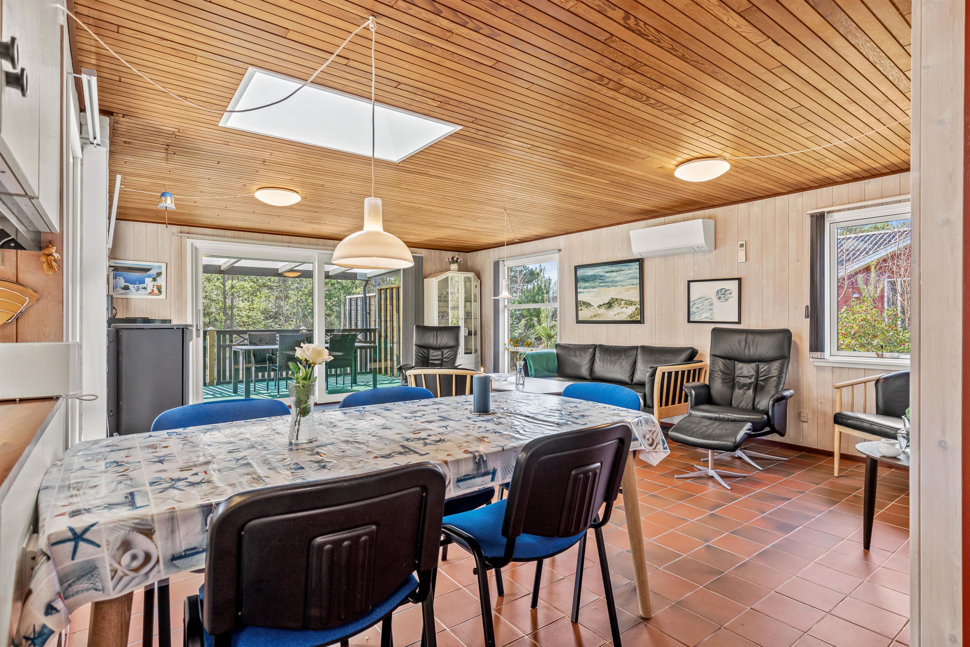 Læ, hvis det blæser, skygge når solen brænder og dertil masser af god plads, havemøbler og grill – den store sydvendte terrasse er bare perfekt til jeres ferie! Start feriedagen med at åbne køkkenets hyggelige 'stalddør' og luk fuglesangen ind i køkkenet, lad duften af nåleskoven og lyngheden trække ind og blande sig med duften af friskbrygget morgenkaffe - en superskøn cocktail.