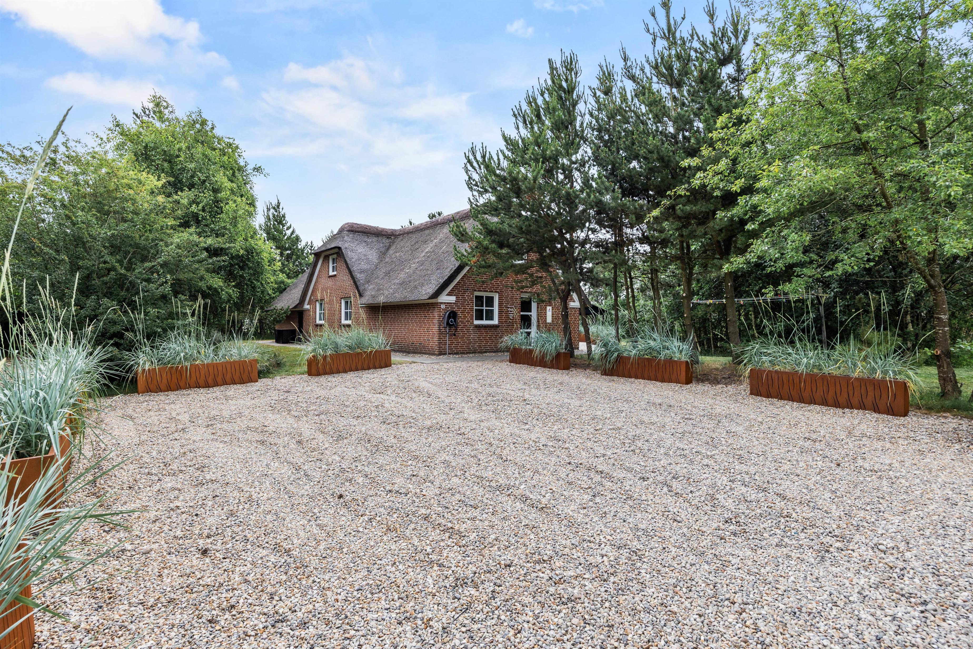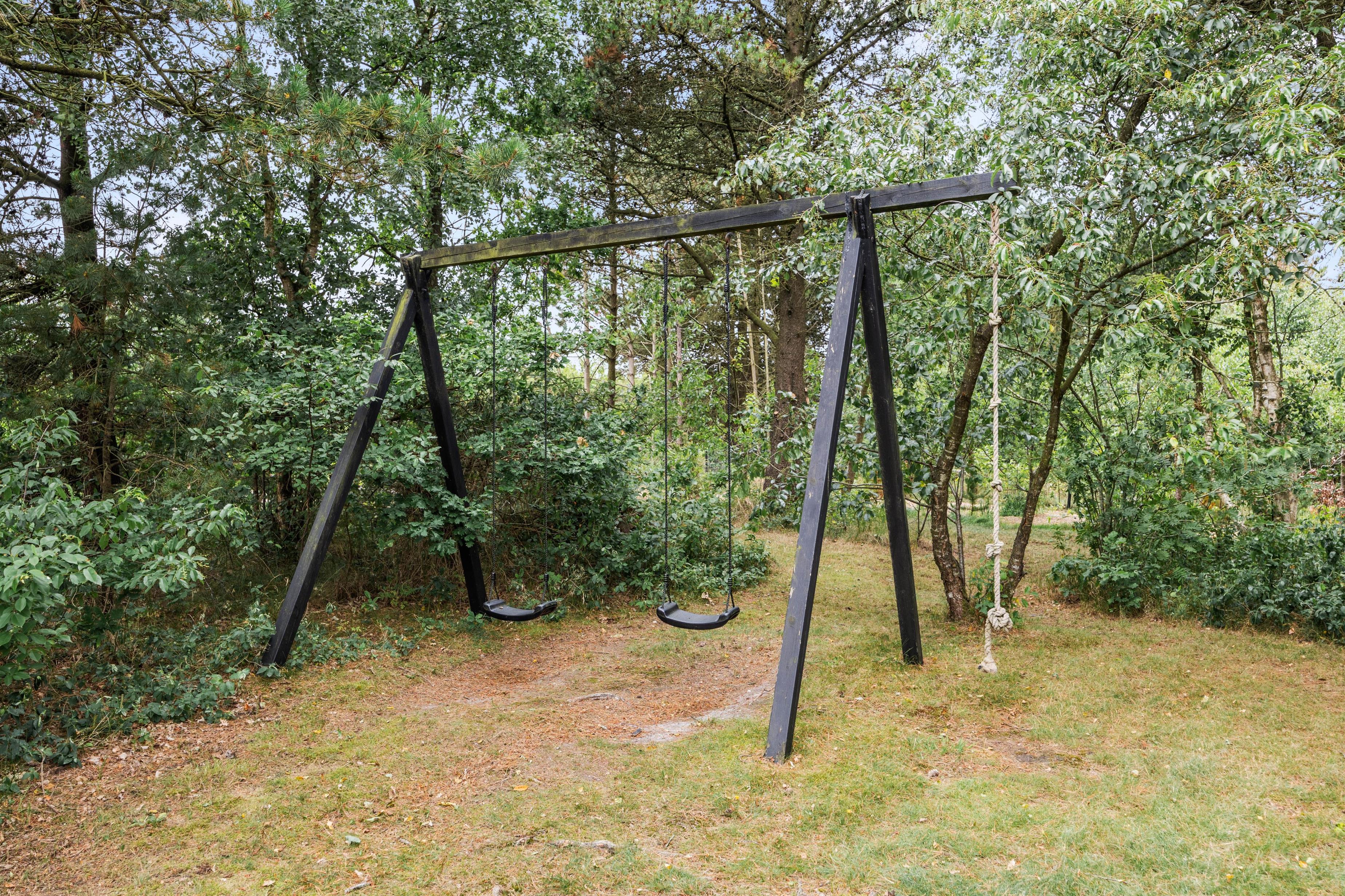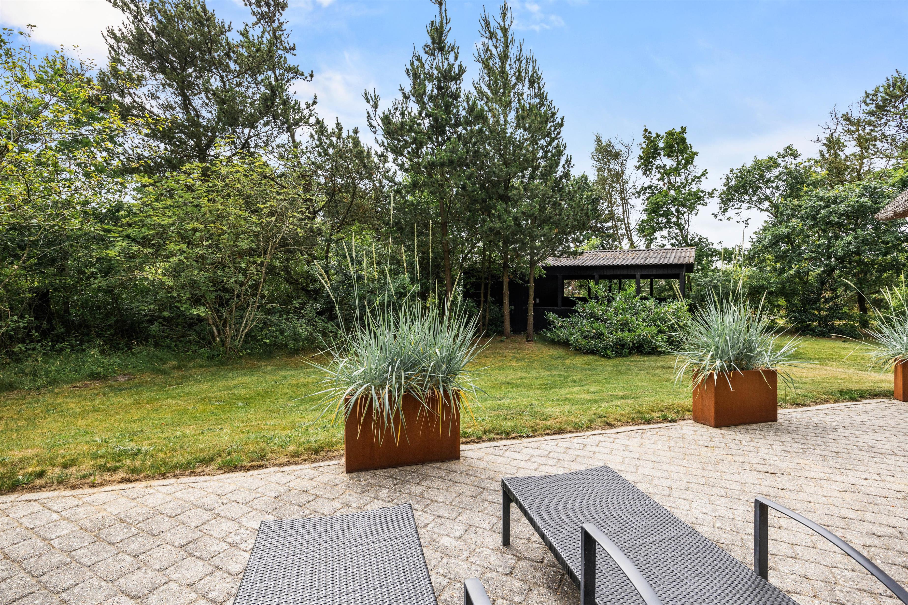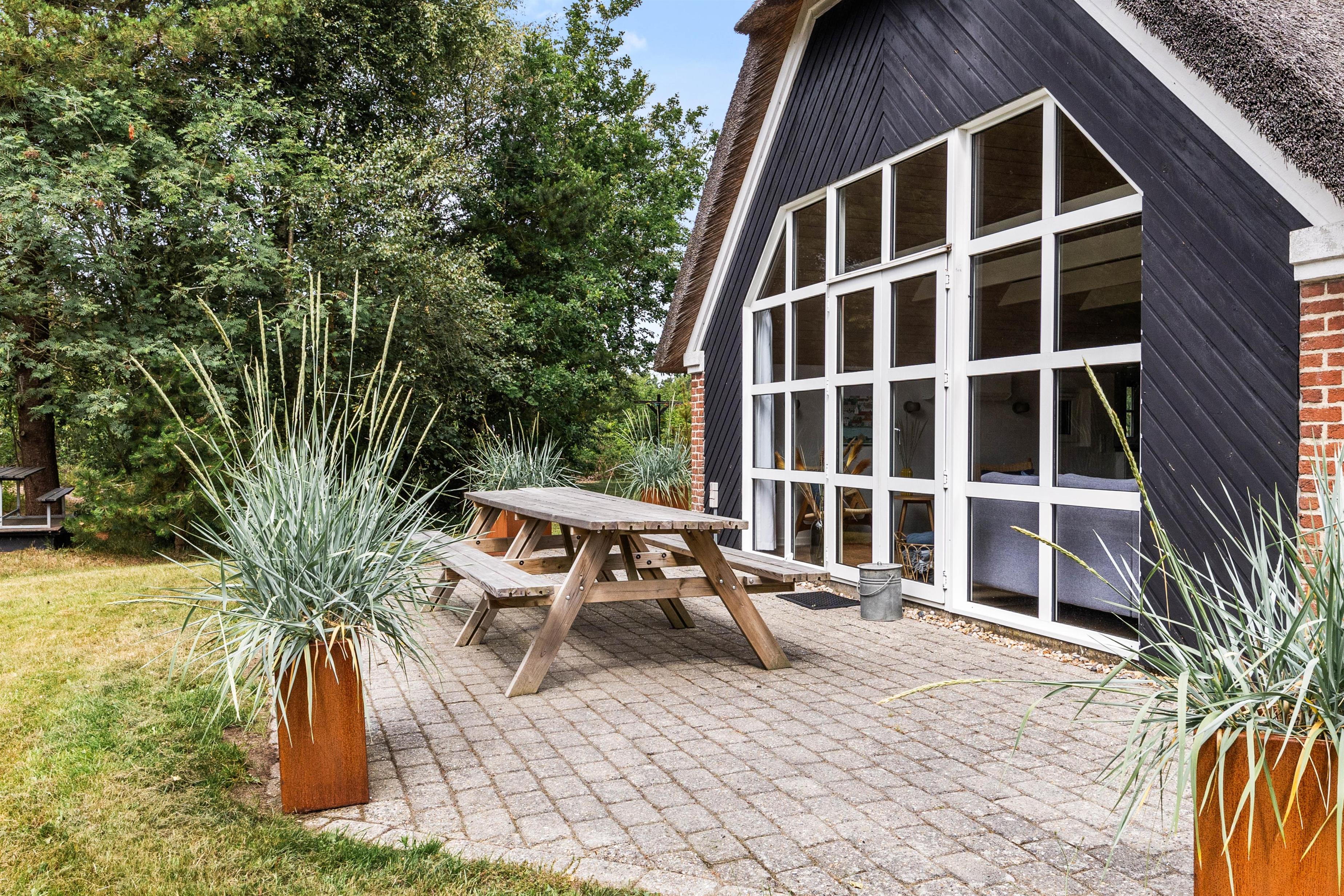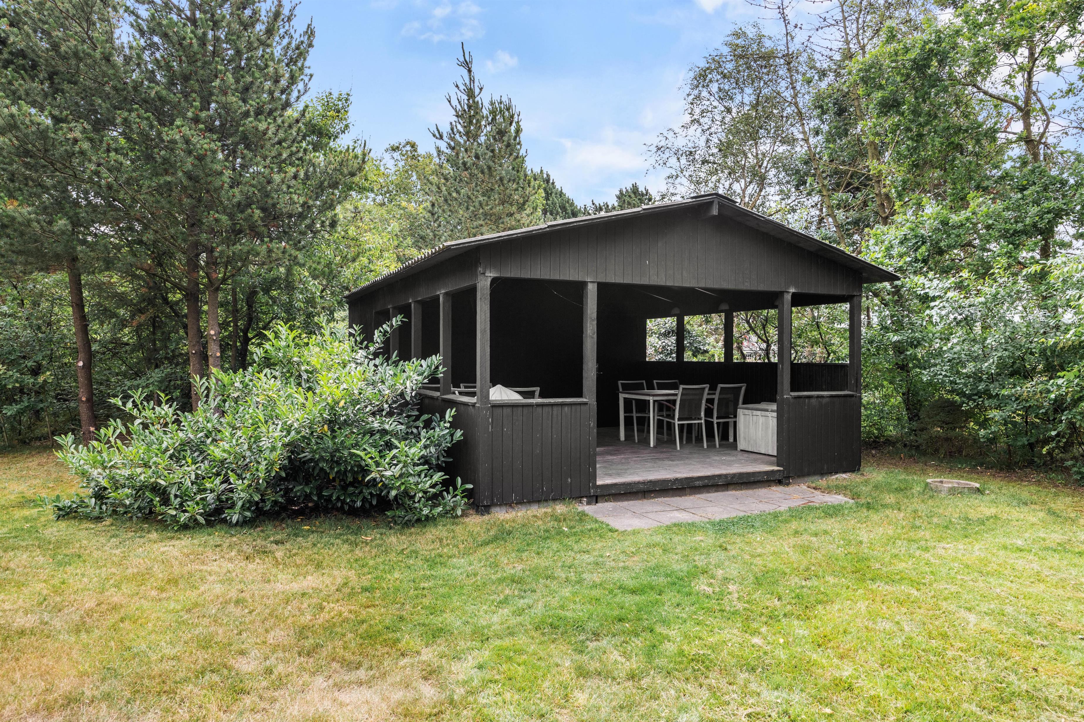 Sommerhuset ligger på en stor 1780m2 grund med både græsplæne og naturgrund, hvilket giver jer rig mulighed for at nyde ferien udenfor. Den overdækkede terrasse er udstyret med havemøbler og en grill, så I kan tilberede og nyde måltider i det fri. Hvis I har en hund, er denne naturligvis velkommen her, da op til 2 hunde er tilladt i feriehuset.