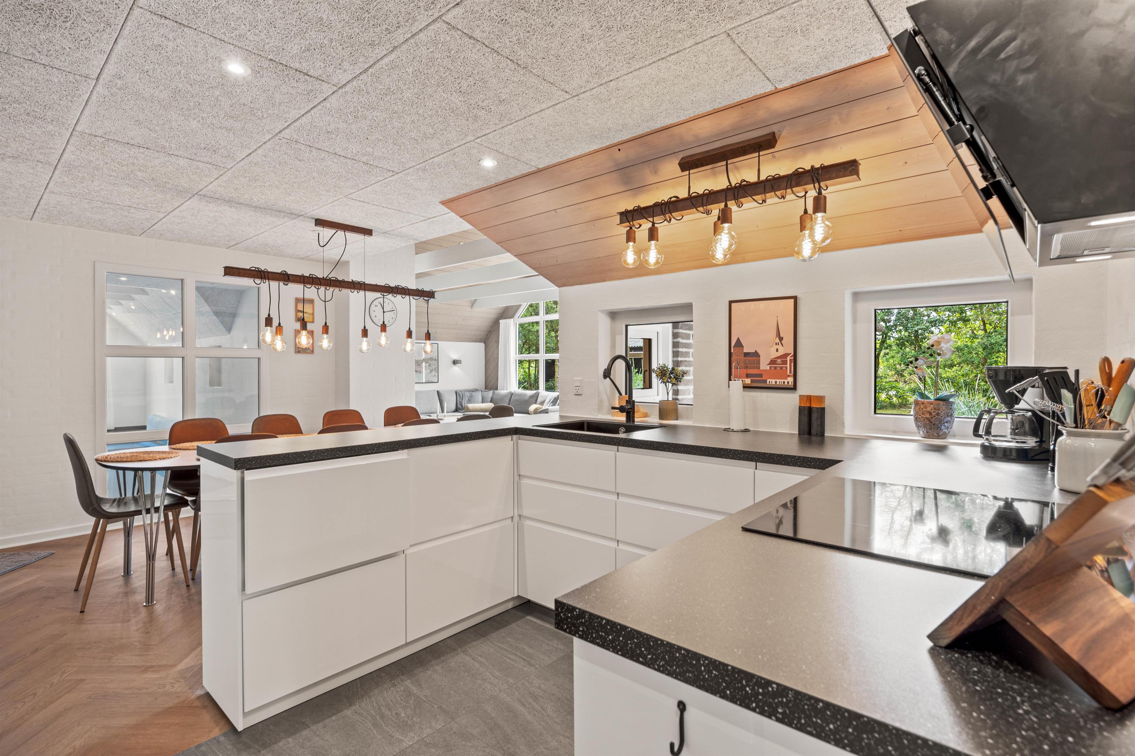 Dette sommerhus forkæler gæsterne med både sauna og en fantastisk pool, hvor I både kan plaske rundt og bade, eller træne svømmefærdighederne, da poolen har svømmetræner. Slip væk fra hverdagens stress og nyd en stille stund i saunaens varme. På badeværelserne finder I gulvvarme, hvilket tilbyder ekstra komfort på de køligere morgener.