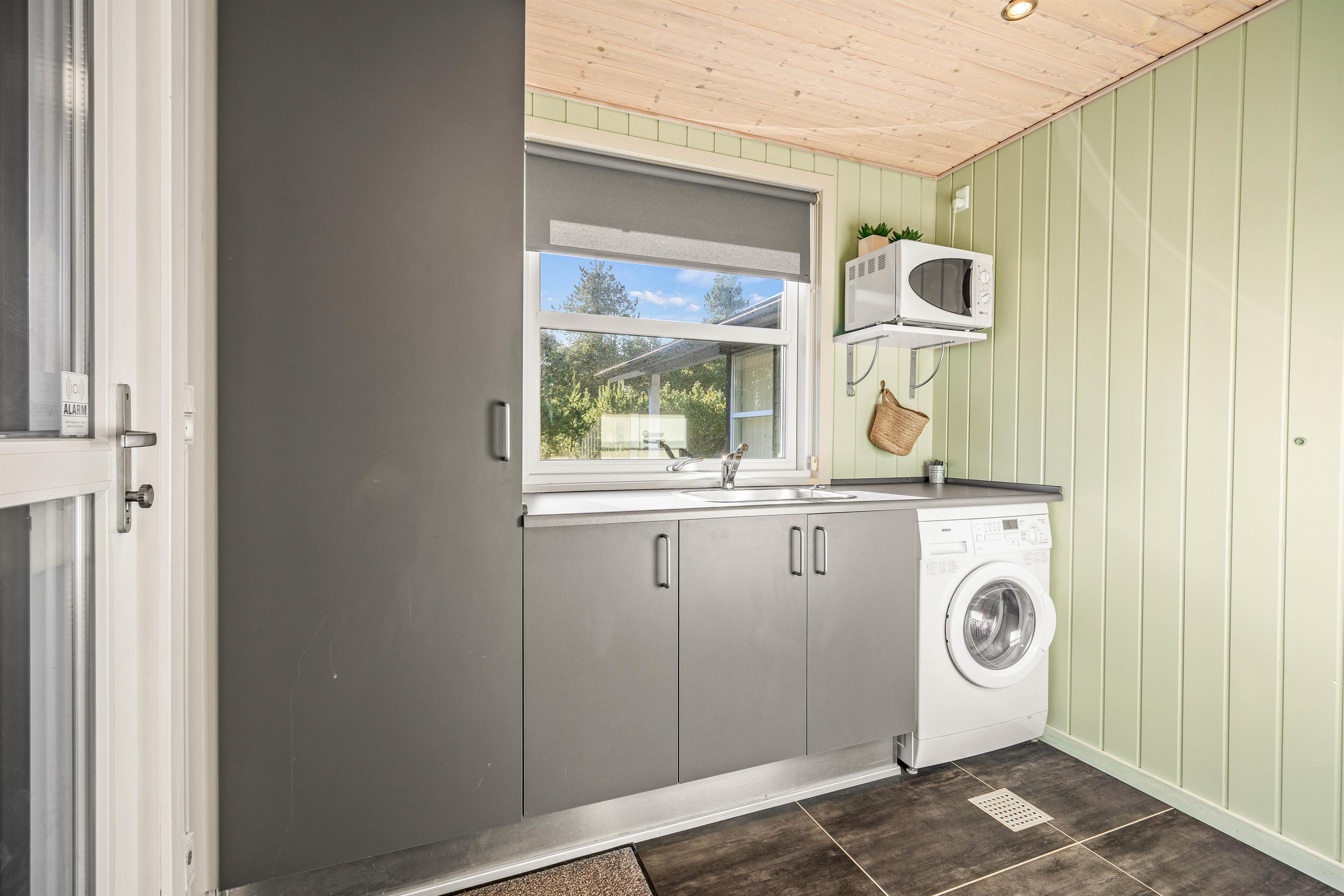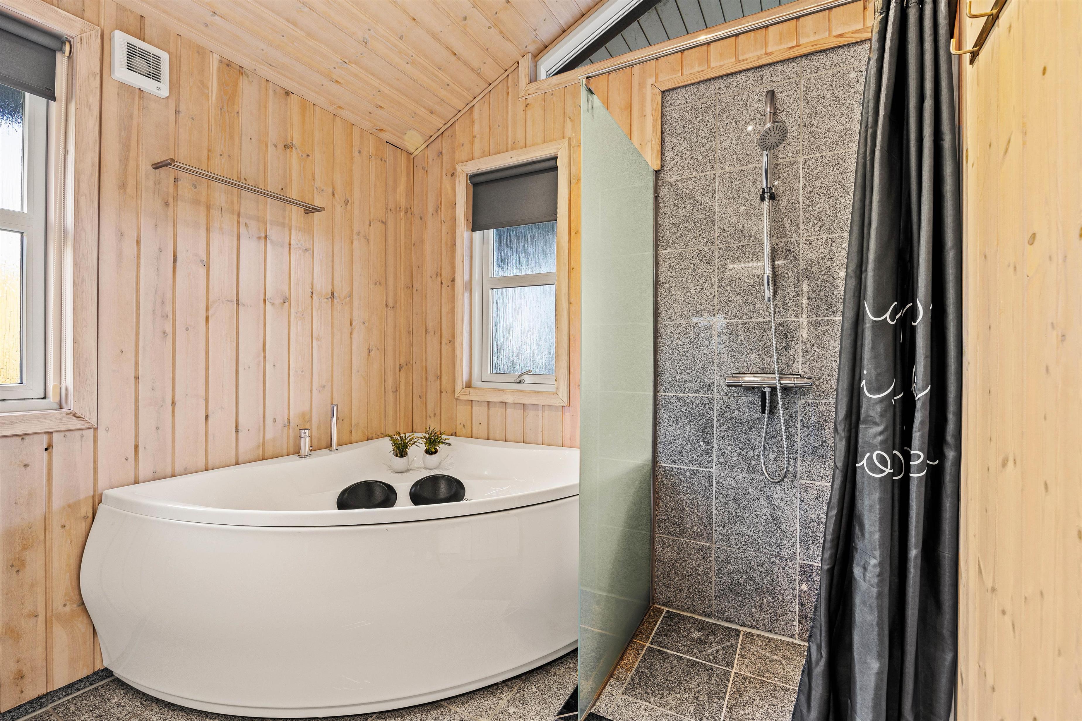 De tre soveværelser byder på god nattesøvn; det ene soveværelse har en dobbeltseng, mens de to andre er udstyret med trekvartsenge. Der er to badeværelser, begge udstyret med gulvvarme, hvoraf det ene også har en tømmespa til to personer. Derudover er der vaskemaskine og tørretumbler, hvilket gør det nemt at holde styr på vasketøjet under jeres ophold.