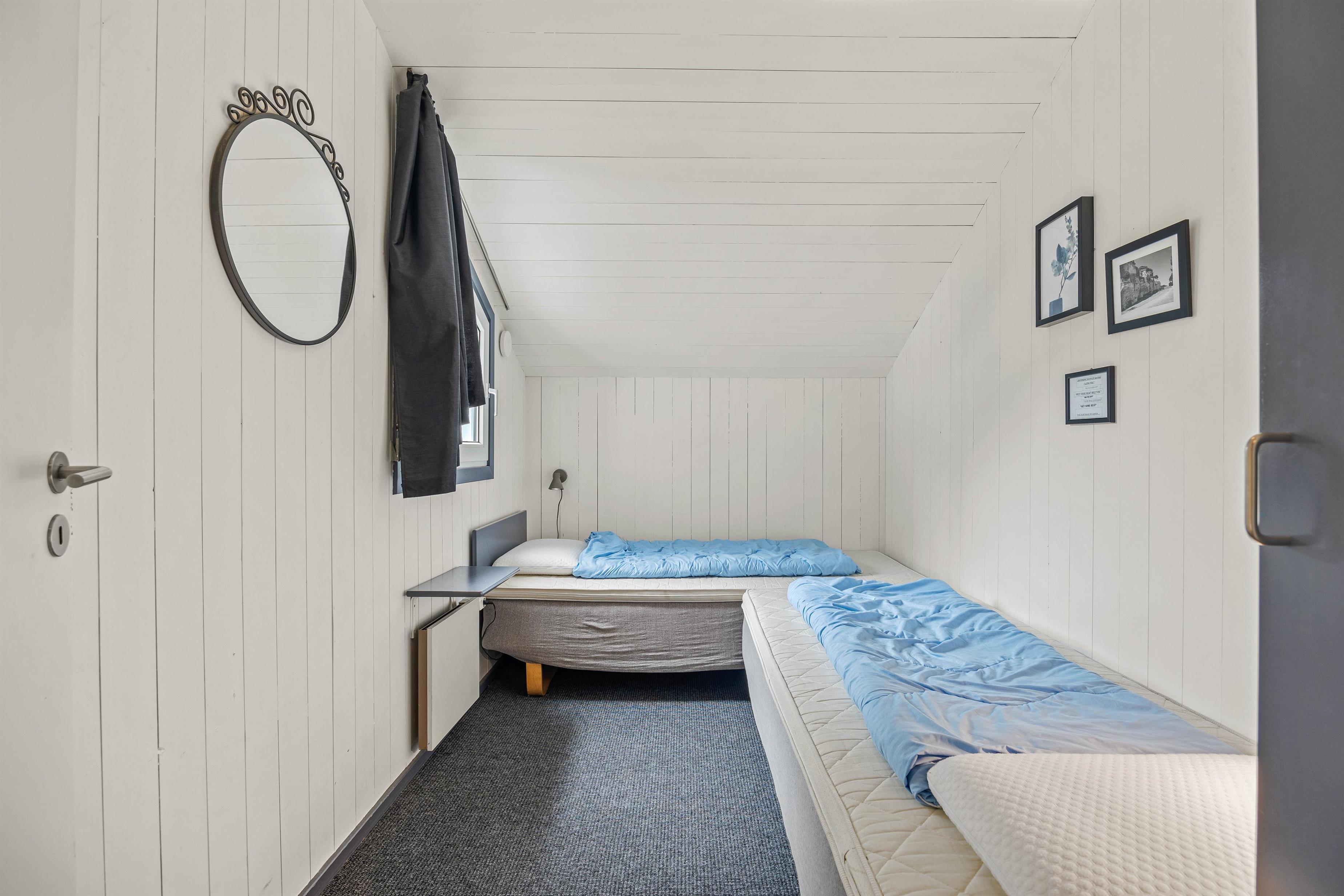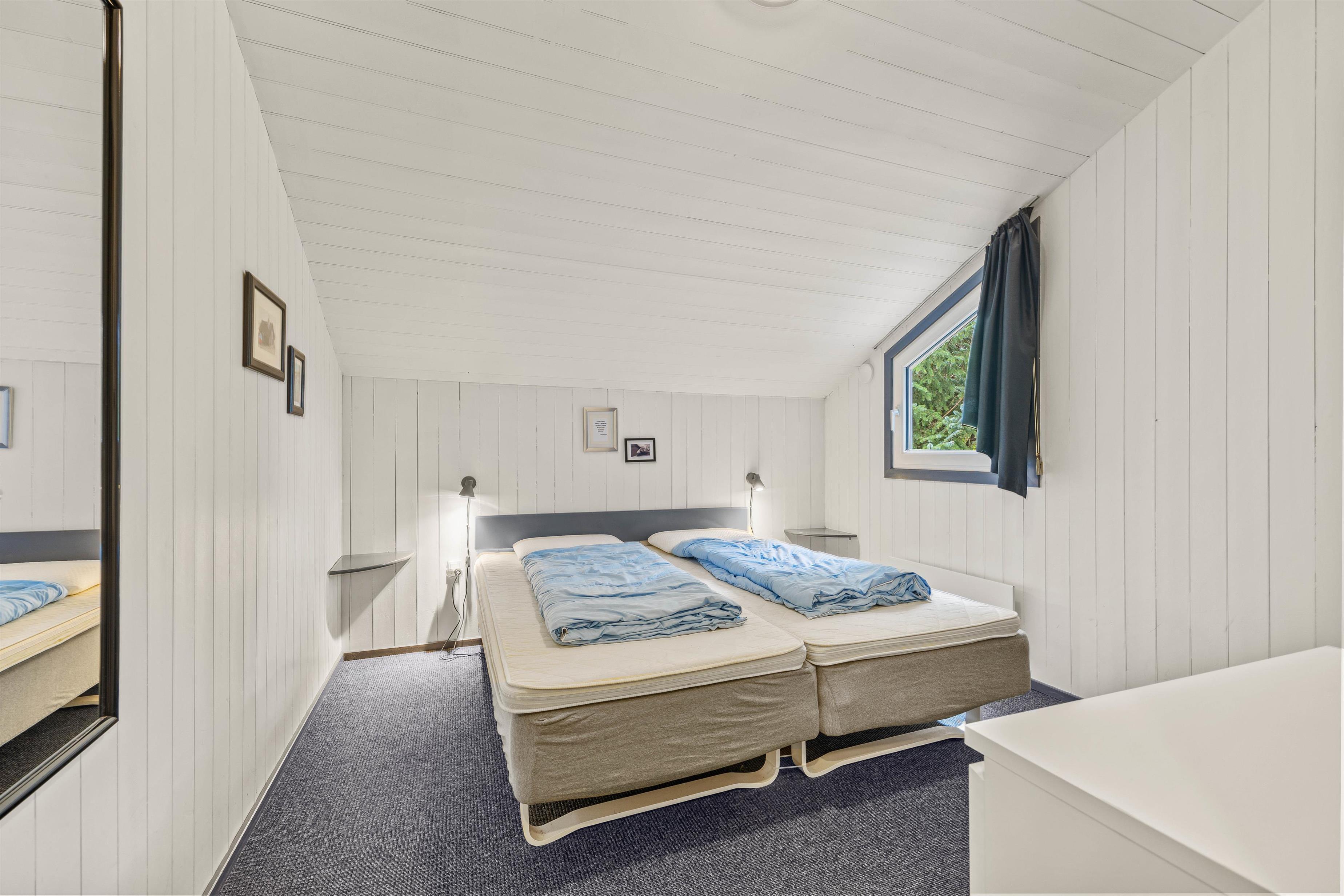 Med 4 soveværelser er der masser af plads til hele familien, inklusive flere generationer. To af værelserne har komfortable dobbeltsenge, mens de to andre har to enkeltsenge hver, perfekt til familien på tværs af generationer. Dertil er der en hyggelig hems med yderligere 2 sovepladser på madrasser.