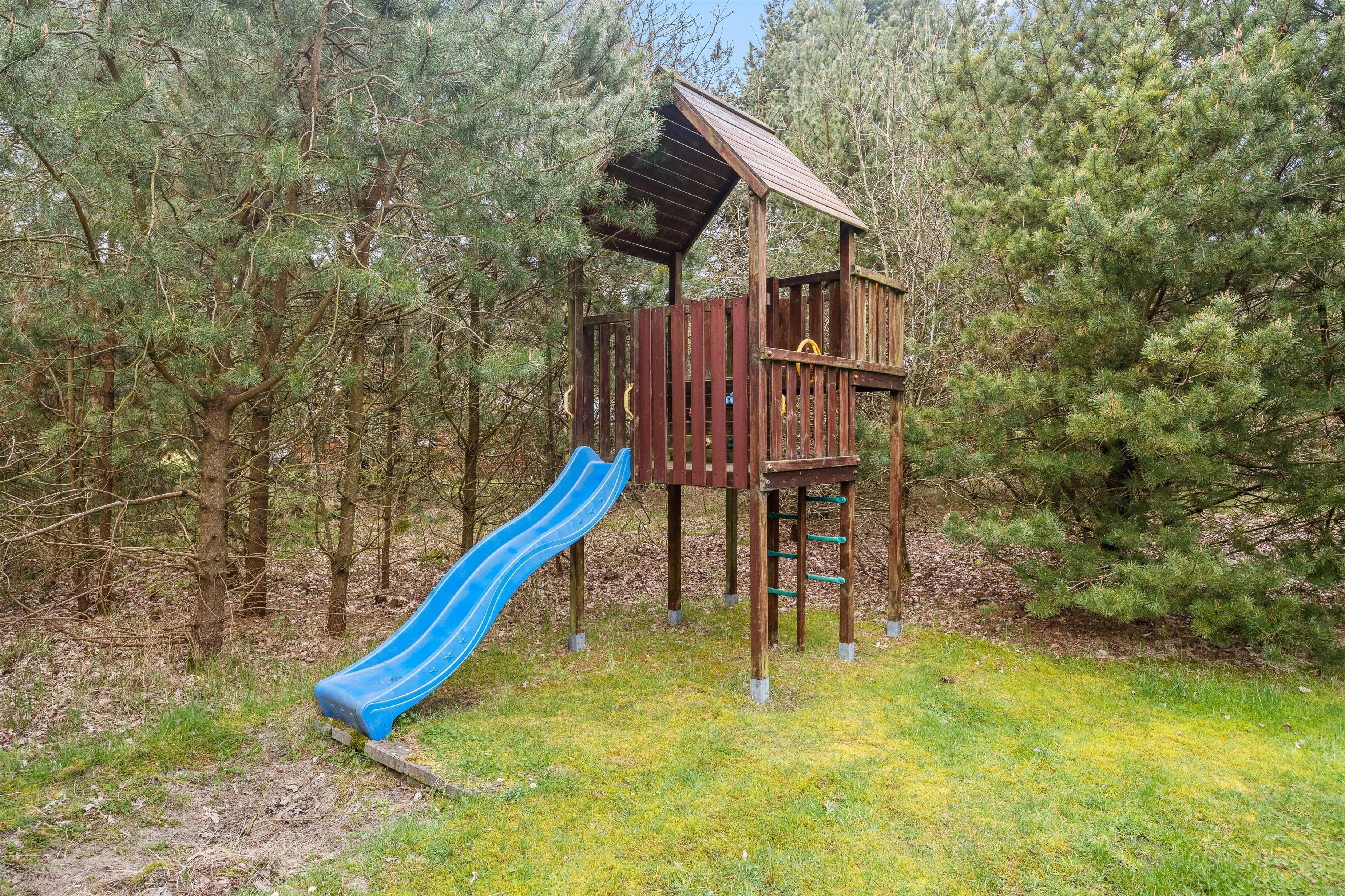 Udendørsområdet omkring sommerhuset strækker sig over en rummelig plænegrund på hele 1679 kvadratmeter, hvilket giver rig mulighed for leg og boldspil både for to- og firbenede gæster. Måske frister det med en omgang kongespil eller andre udendørs aktiviteter? På denne skønne grund finder I også en gynge, sandkasse og et legetårn med rutsjebane, der vil bringe glæde til både børn og barnlige sjæle.