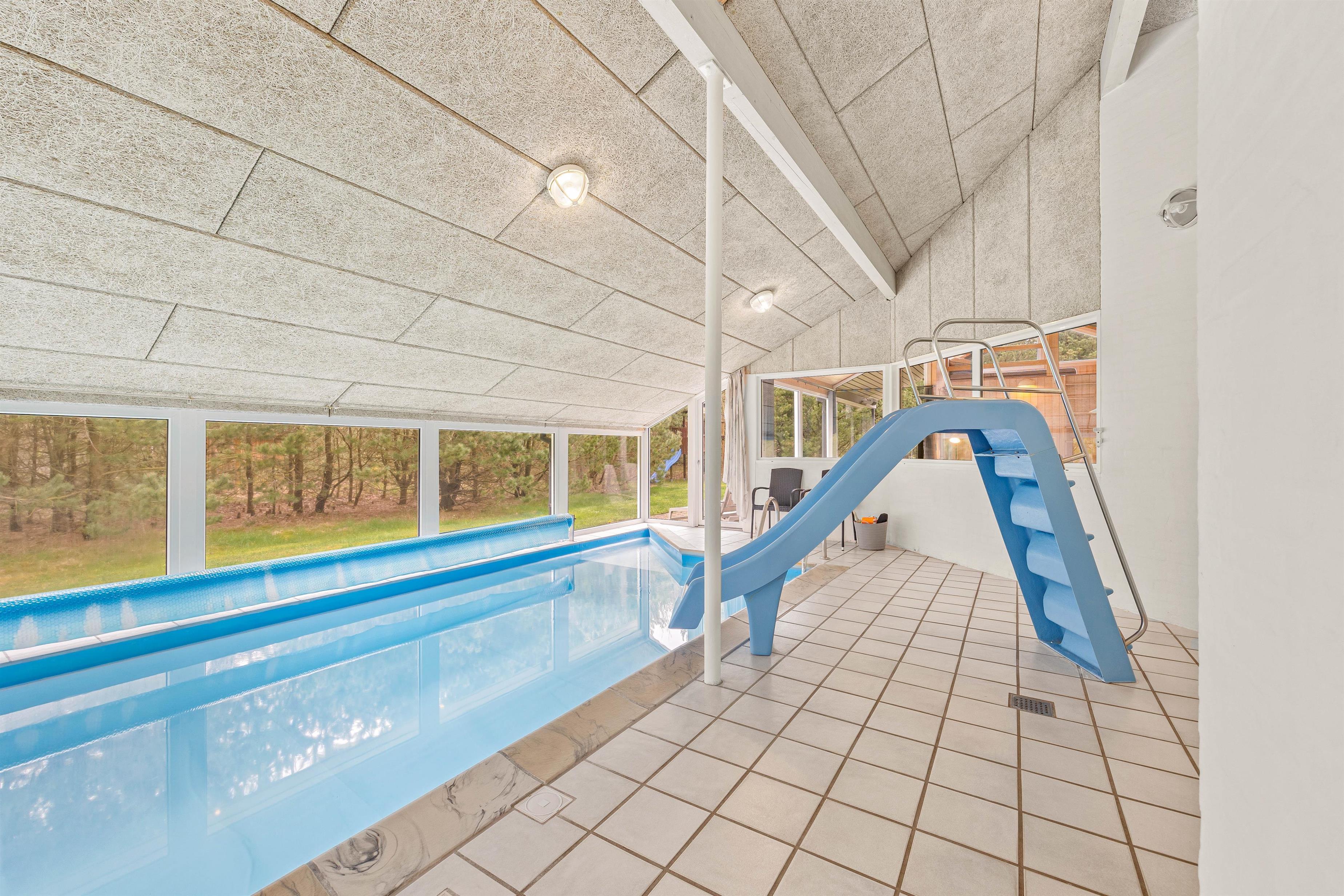 To badeværelser med gulvvarme sikrer, at alle kan nyde komforten, og her finder I også en kombi vaskemaskine. Men det bliver endnu mere luksuriøst - I kan glæde jer til et skønt poolrum med både rutsjebane, pool og spa, hvor I kan boltre jer i vandet og have det sjovt sammen. Og når musklerne trænger til ultimativ afslapning, står saunaen klar til at give jer den fuldendte wellness-oplevelse.