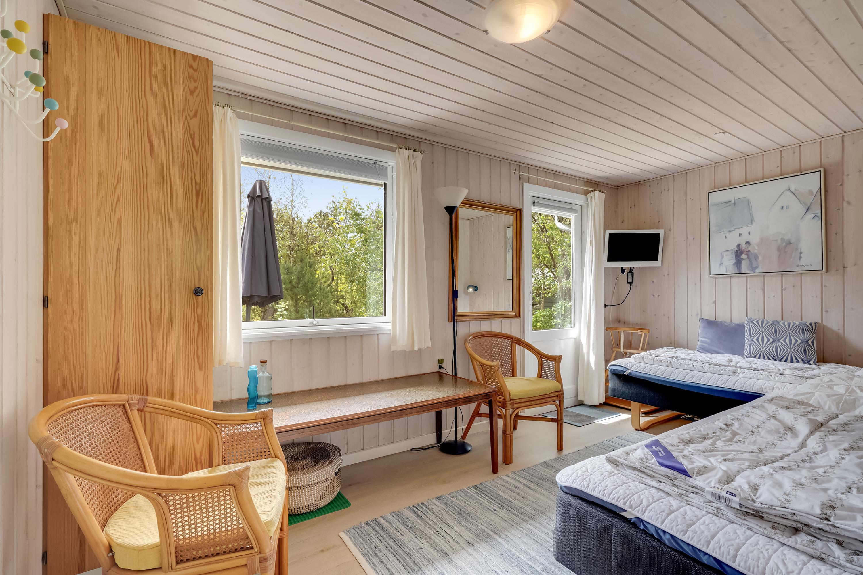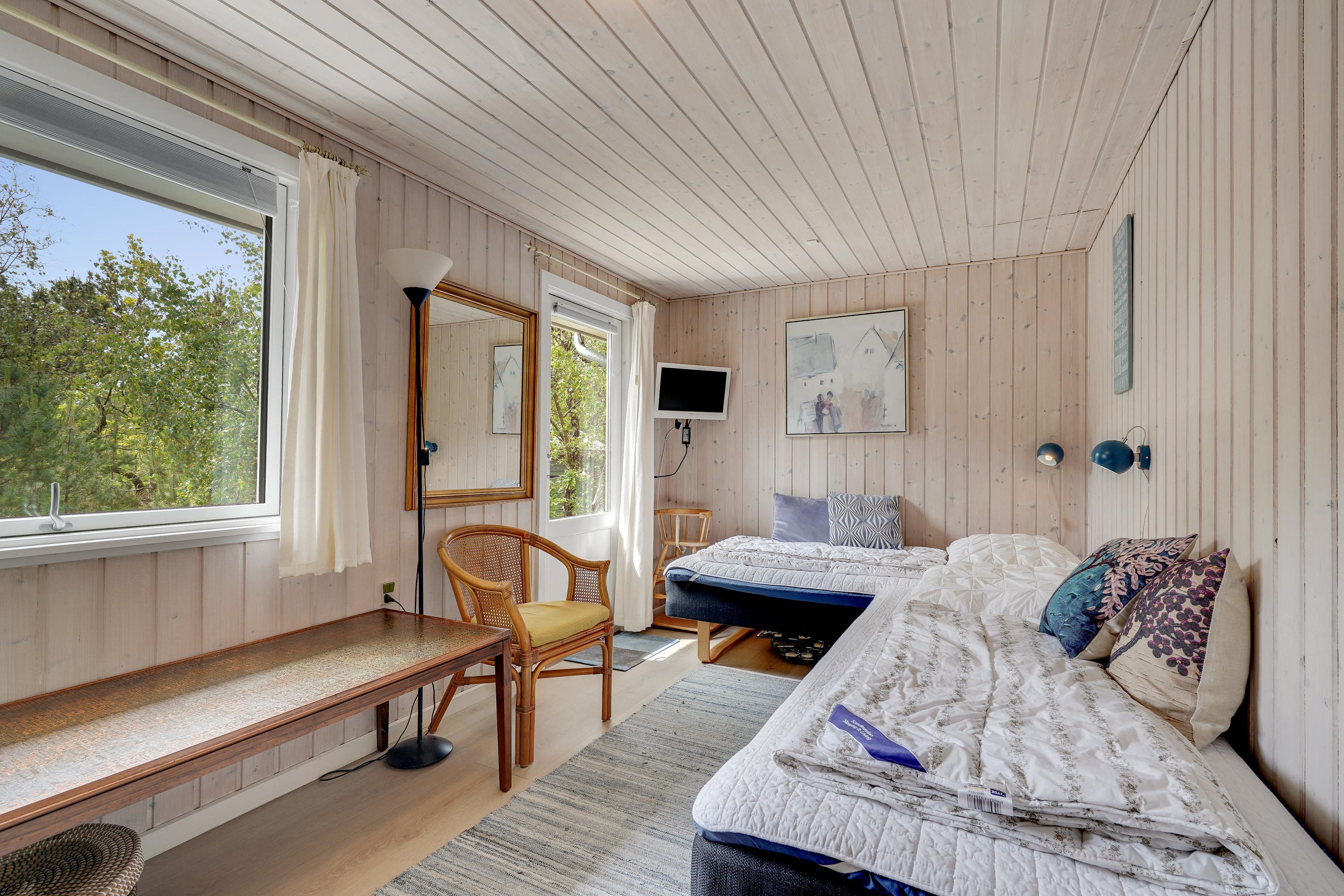 Dette charmerende feriehus kan komfortabelt rumme 6 personer fordelt på 3 hyggelige soverum – heriblandt et soveværelse med dobbeltseng (1.80) og to med enkeltsenge (90cm), hvoraf det ene kan laves om til dobbeltseng efter dine ønsker. Nyere badeværelse med spa giver perfekte rammer for afslapning og velvære efter en dag fyldt med eventyr i det fri. Faciliteterne vaskemaskine og tørretumbler kan du også gør brug af her.