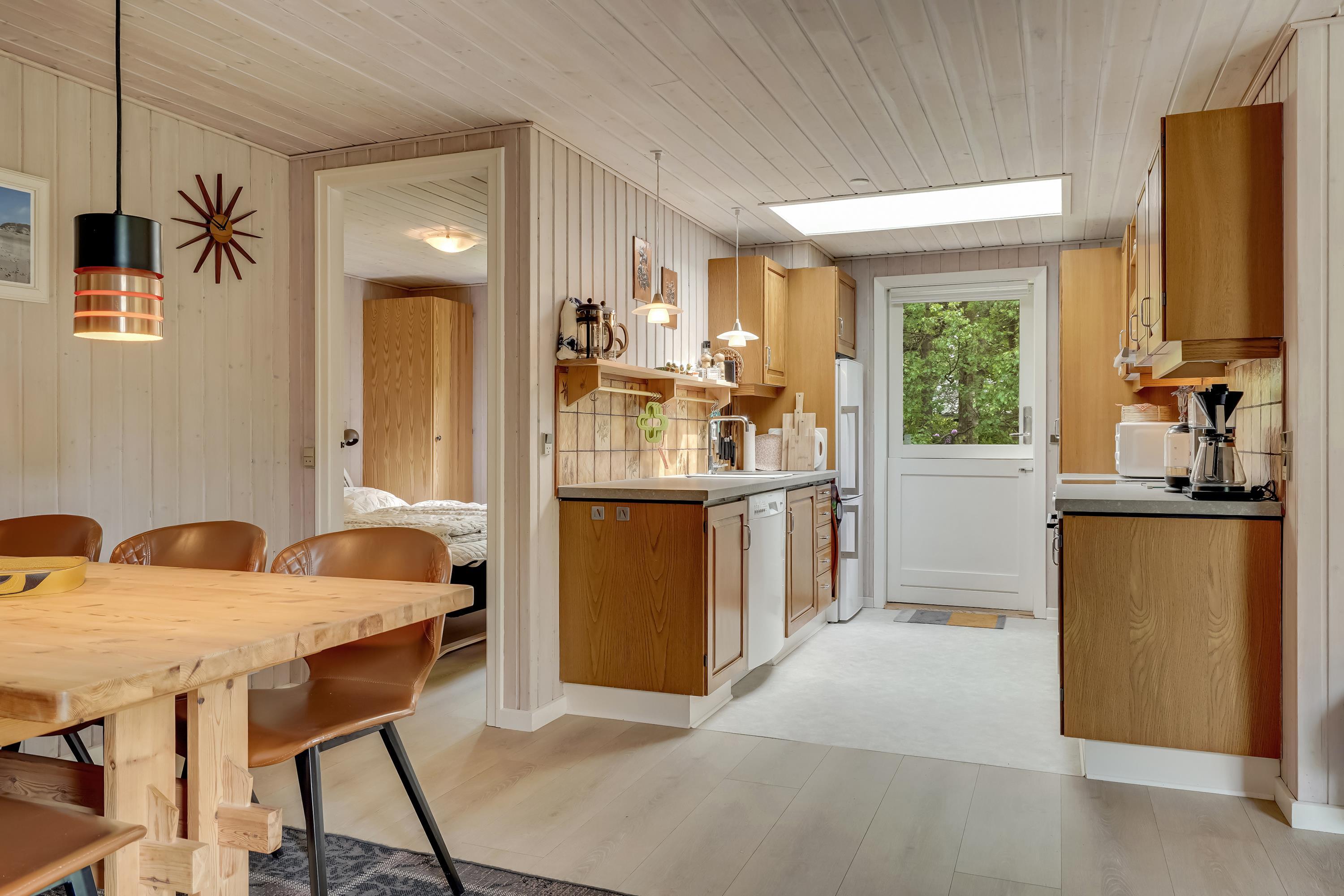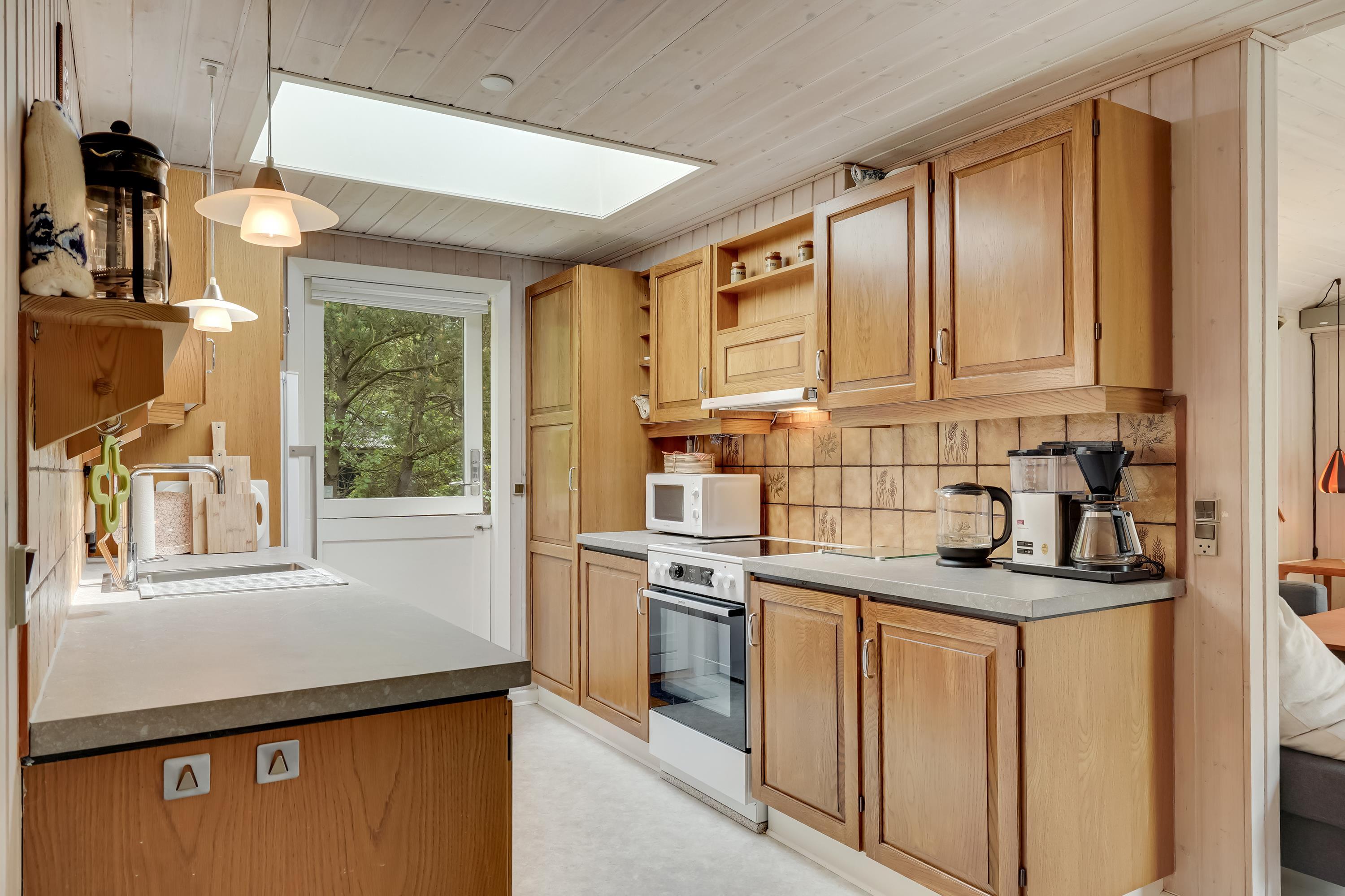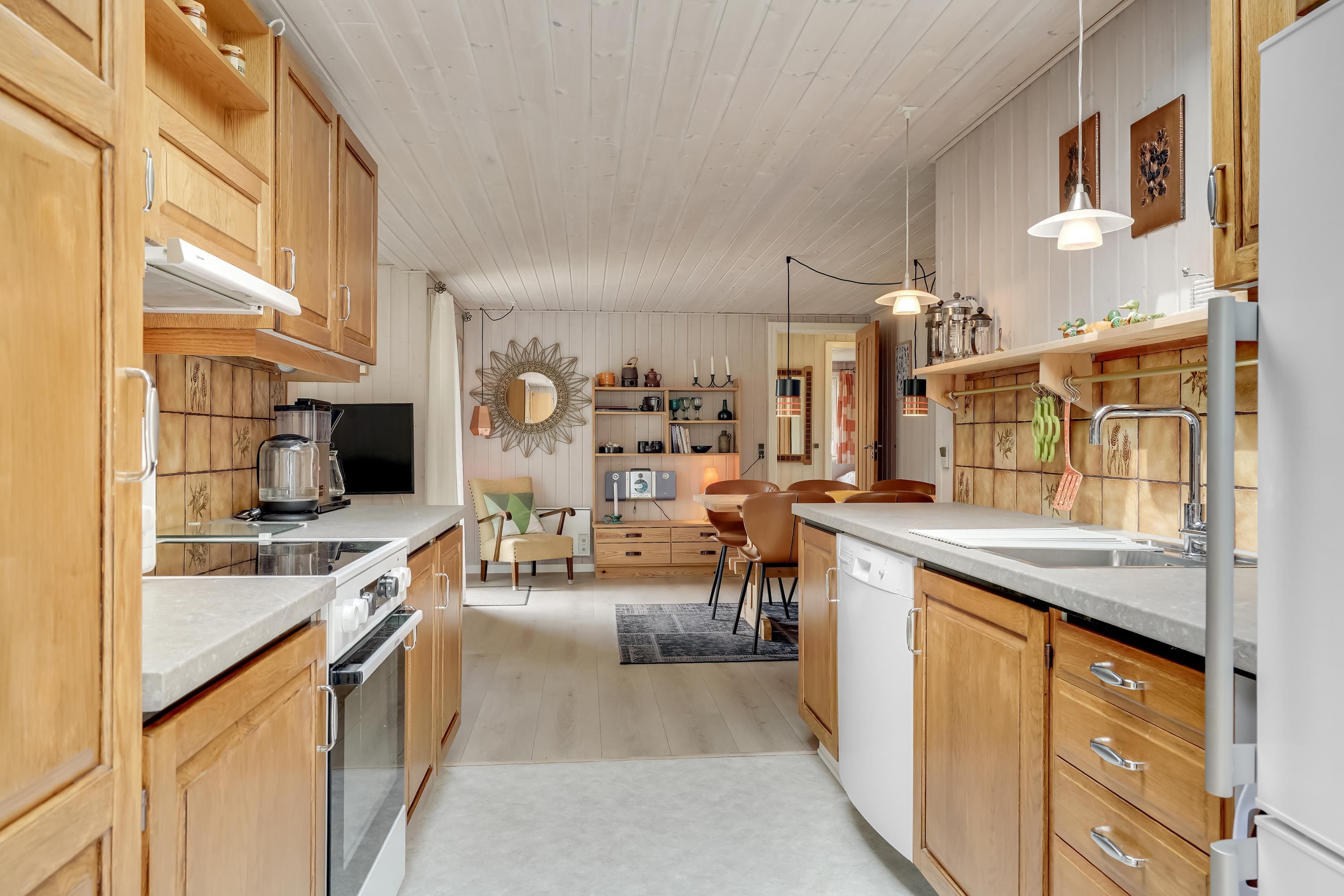 Det veludstyrede køkken hvor intet mangler og selvfølgelig også rummer mikroovn og opvaskemaskine, gør madlavningen til en leg.