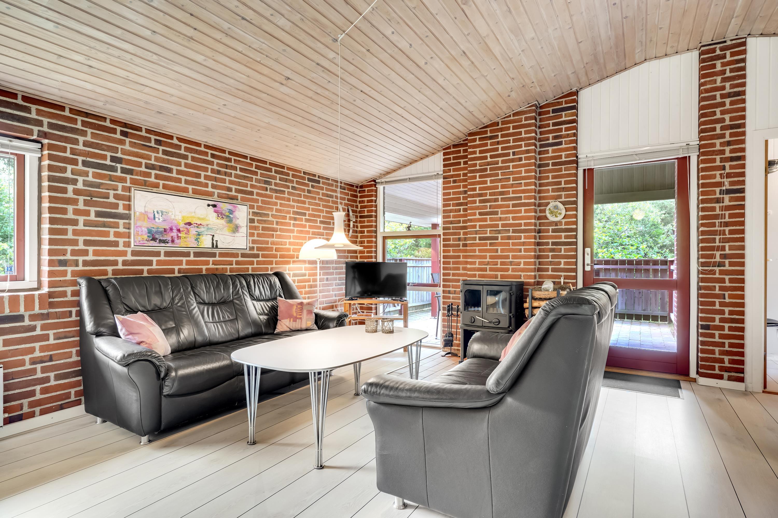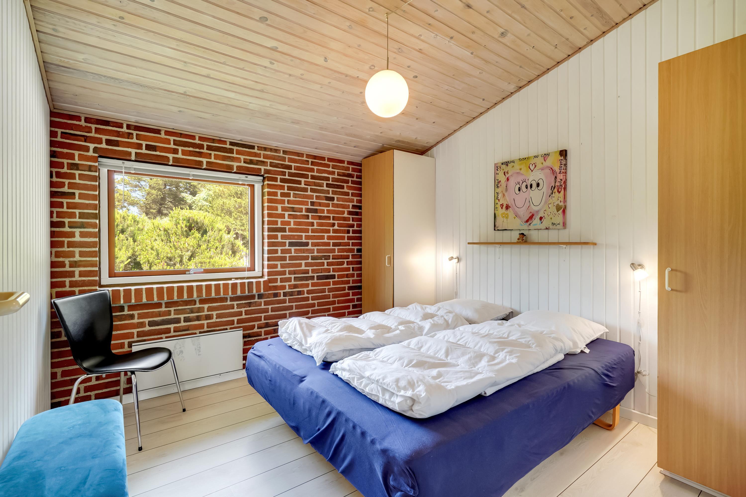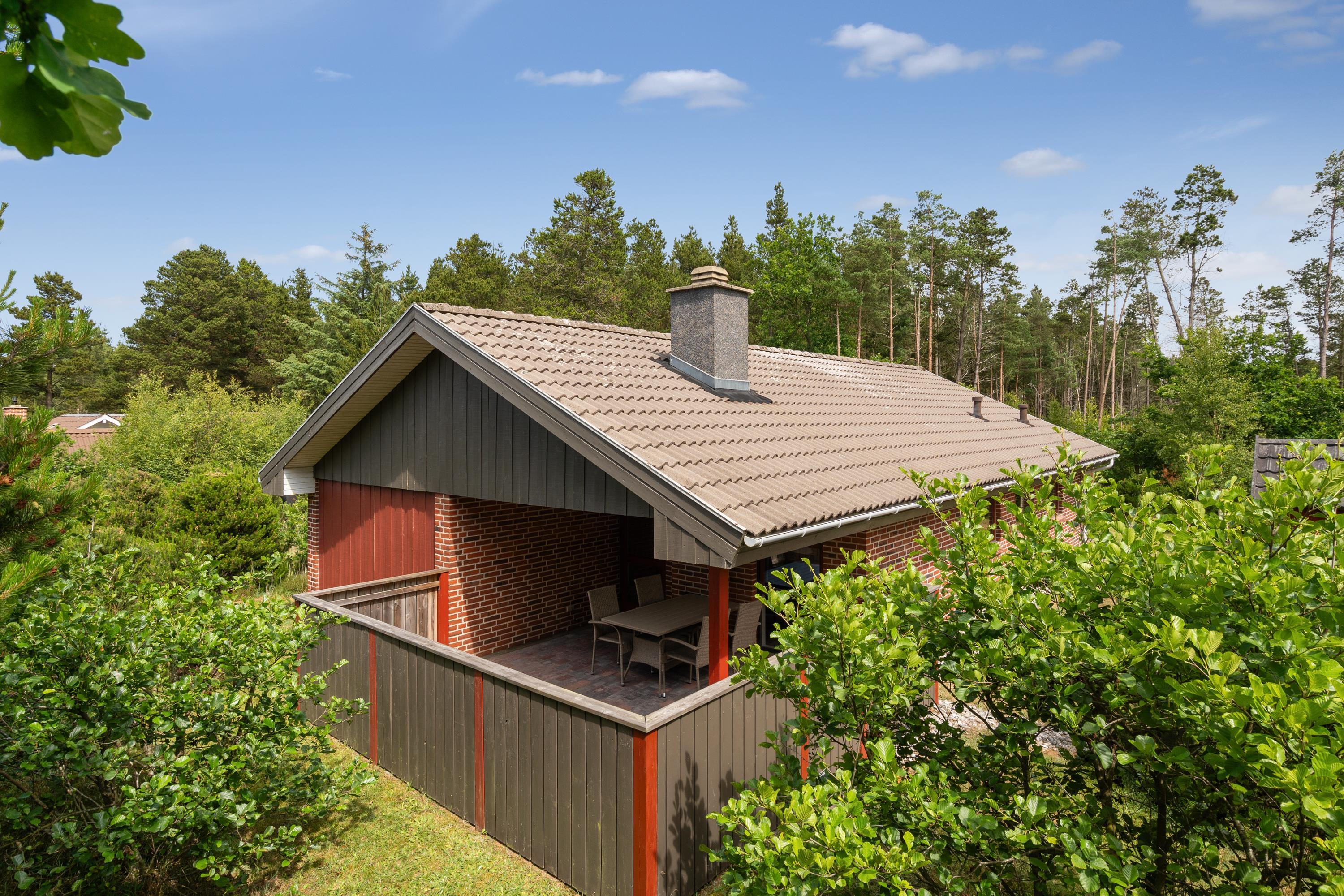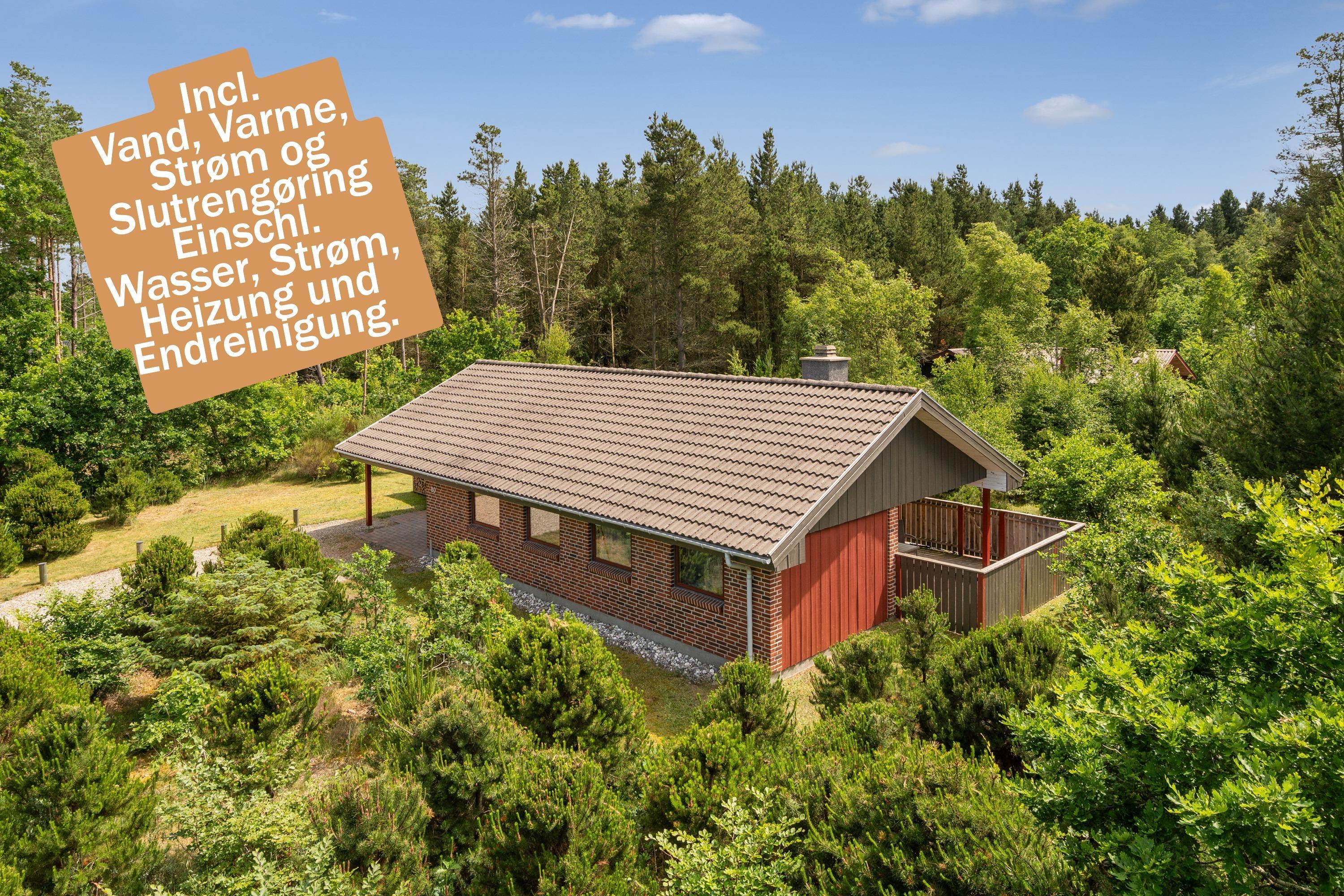 **Huset udlejes med forbrug af varme, vand, strøm inkluderet. Sengelinned og håndklæder ligger klar i huset ved ankomst**For ende af vej i naturskønne omgivelser, kan du booke Skovvang 80, som har direkte sti til Blåbjerg Plantage, hvor du kan nyde lange gå- eller cykelture. Tag hunden med, der er nok at snuse til. Huset byder på 2 soverum med henholdsvis dobbeltsenge og enkeltsenge. Et nyere badeværelse med gulvvarme og sauna. Et åbent køkkenalrum i forbindelse med stuen med brændeovn, varmepumpe og TV. Her findes et viktualierum til opbevaring samt adgang til skur, evt. til jeres medbragte cykler. Grunden er med varierende beplantning, masser af muligheder, hvad enten I søger læ, sol eller skygge. Terrasserne er såvel overdækket som åbne.