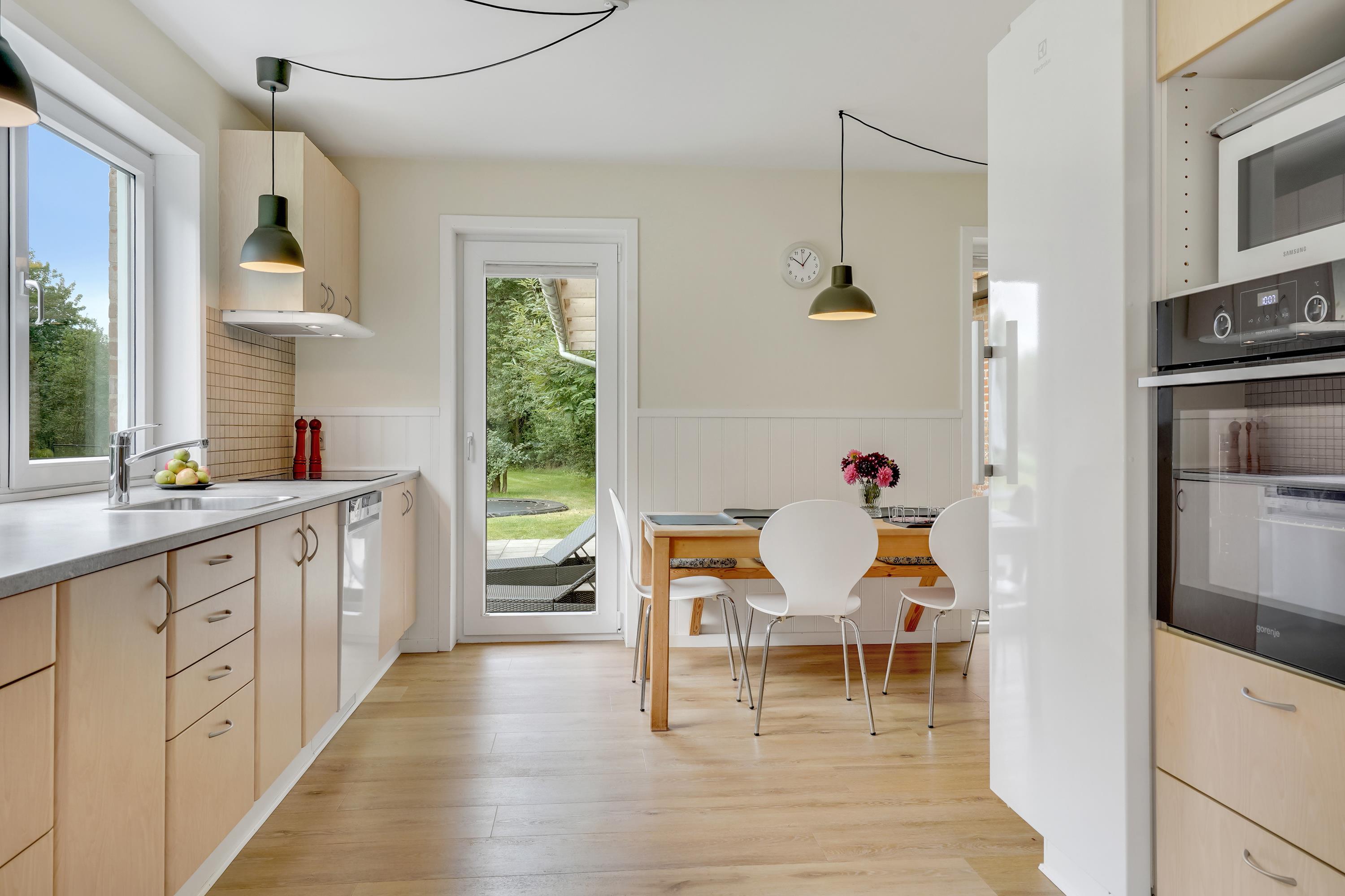 Her får I en unik mulighed for at nyde ensomheden og alligevel bo midt i hjertet af Houstrup. En stor velbeplantet grund med indhegning velegnet til såvel børn som hunde, byder jer velkommen. 2200 m2 for dig som elsker udeliv. Bålplads, fodboldmål, boldspil, gynger, sandkasse og grill - det er her det hele. Selvom I mærker roen, er I tæt på campingpladsen hvor I kan handle, spille golf eller benytte badeland eller andre faciliteter. Huset er personligt, velholdt og up to date. Et soverum i stueetagen med dobbeltseng (1.40) og 2 soverum på 1. sal med dobbeltseng (1.60). Køkken og spisepladsen åbner op til hygge og samvær. I køkkenet med separat fryser, opvaskemaskine og mikroovn kan mange måltider forberedes. Nyere badeværelse med mindre vaskemaskine. Fra den store naturgrund, er der udgang til skøn og fredelig natur og med sti, der fører til campingpladsen. Lønnehedevej 61 er for dig der elsker naturen.