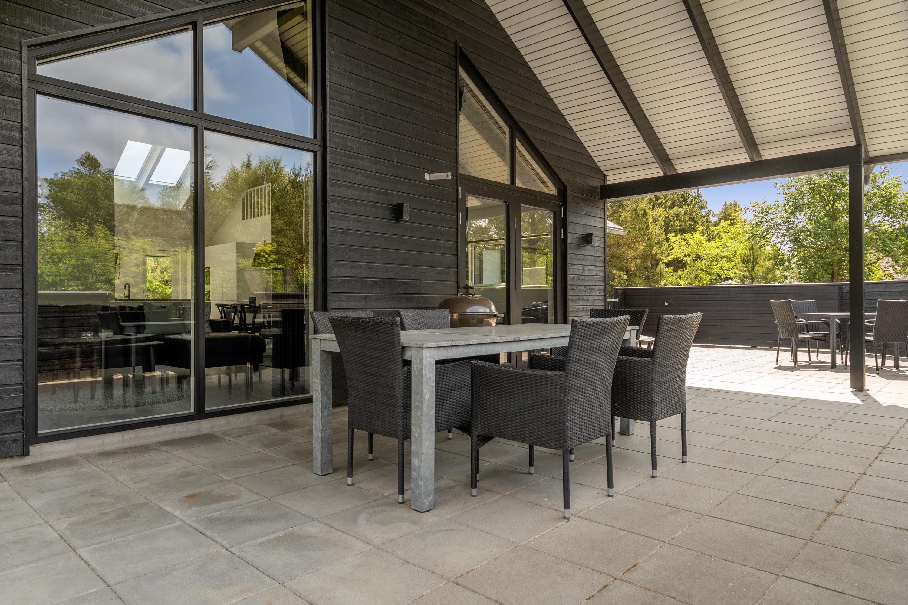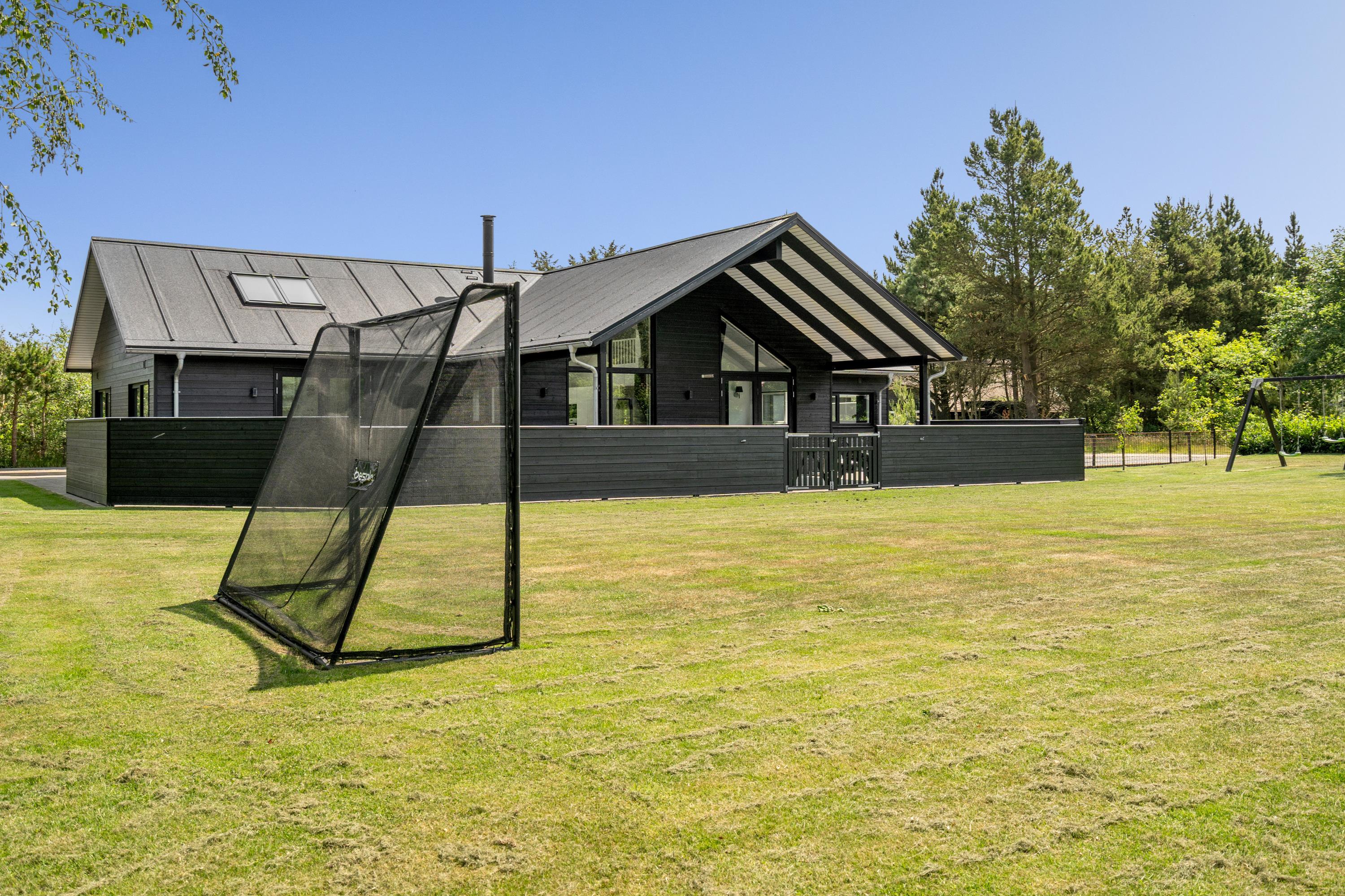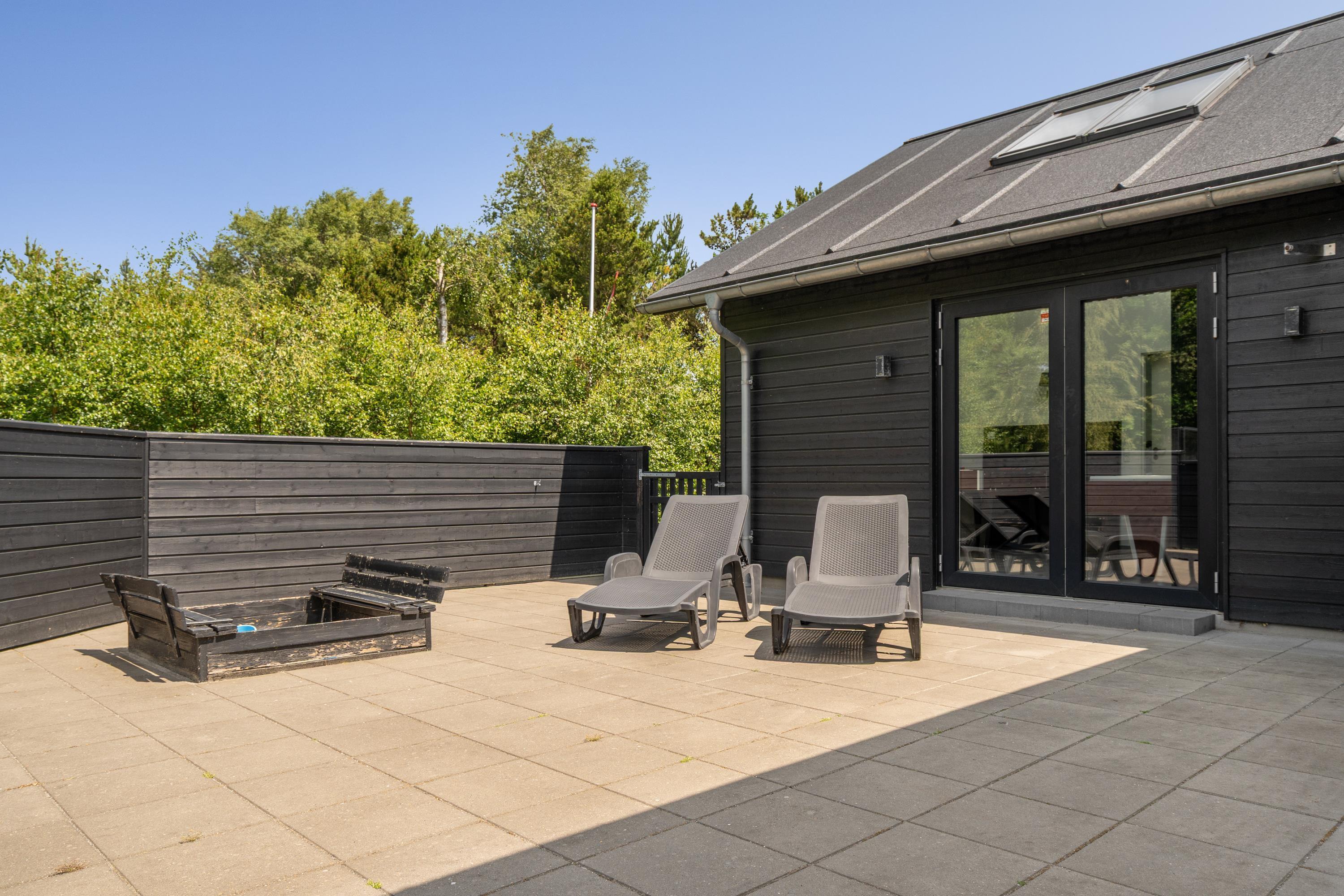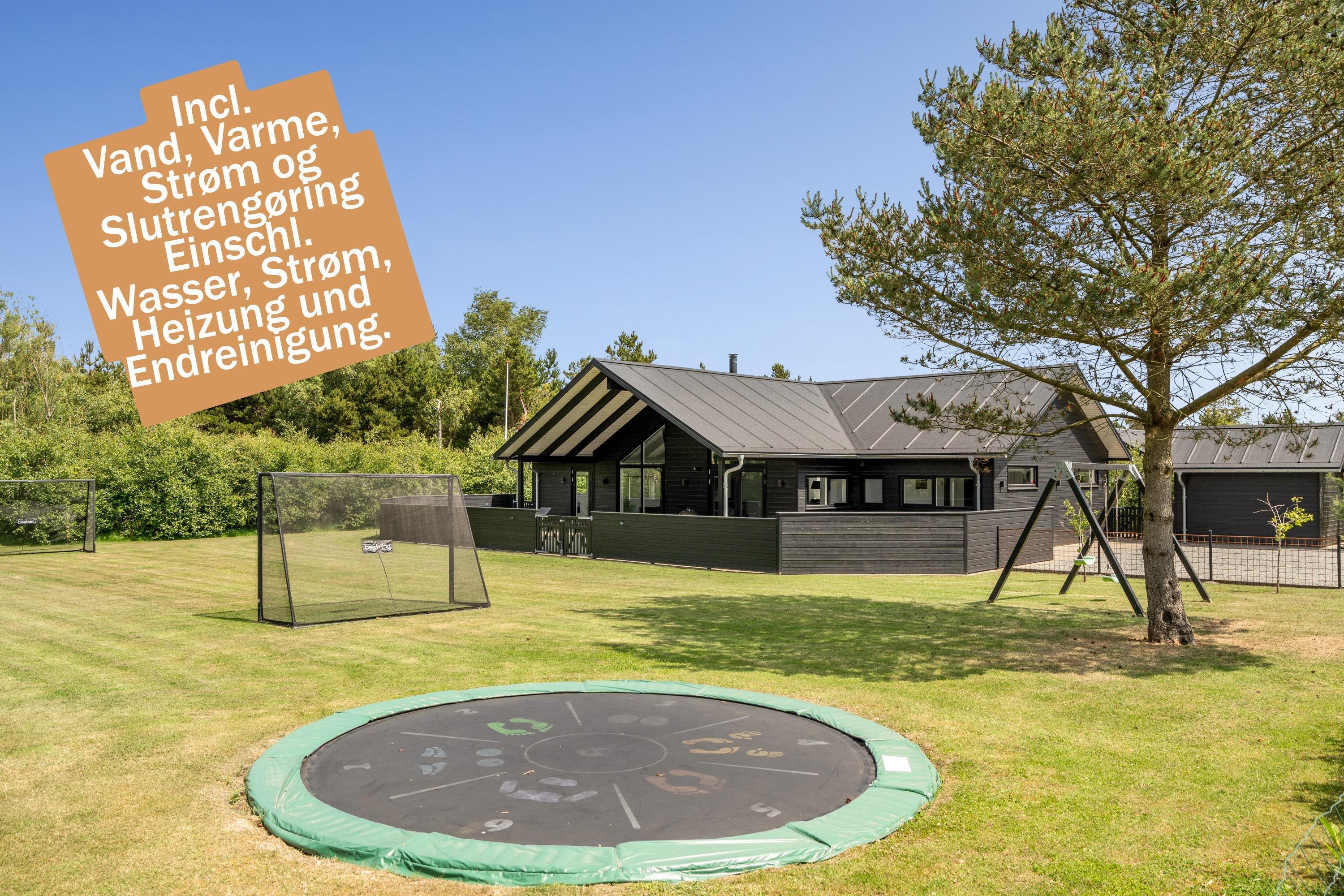 Den store indhegnede terrasse på cirka 70 m2 har tre udgange, hvilket gør det muligt at holde børn og hunde inde. En del af terrassen (ca. 20 m2) er overdækket og bidrager til at forlænge sommerperioden. På den dejlige grund findes fodboldmål, sandkasse, petanquebane, gynger og trampolin, der opfordrer til leg og aktivitet. Huset udlejes udelukkende til familier og ikke til grupper. Der er også et separat og aflåst skur til lejer med ekstra køleskab. Dette hus er virkelig gennemført! Fri adgang til Svøm og Leg. I kan som gæst hos Axelgaard spille gratis golf i Outrup og komme til speedway løb i Outrup uden beregning.
