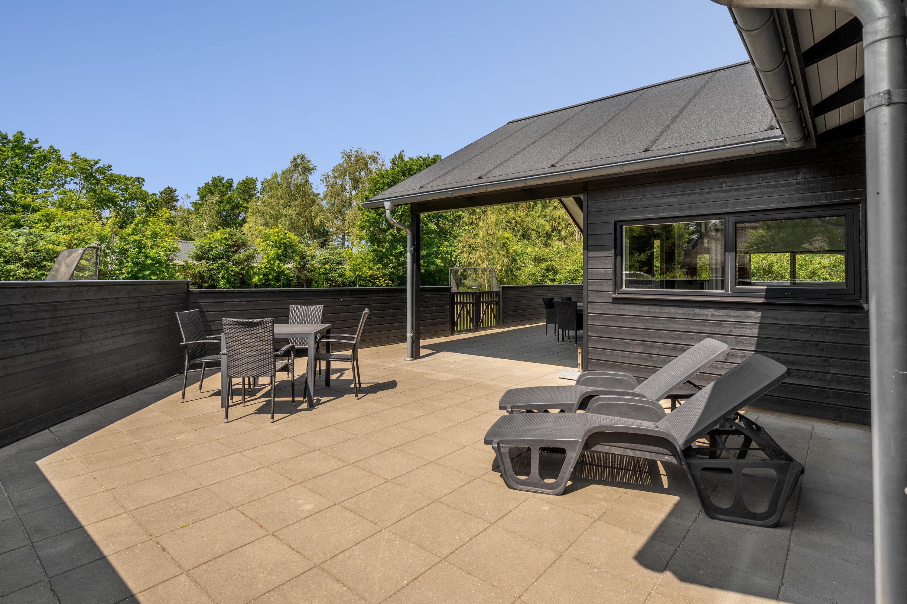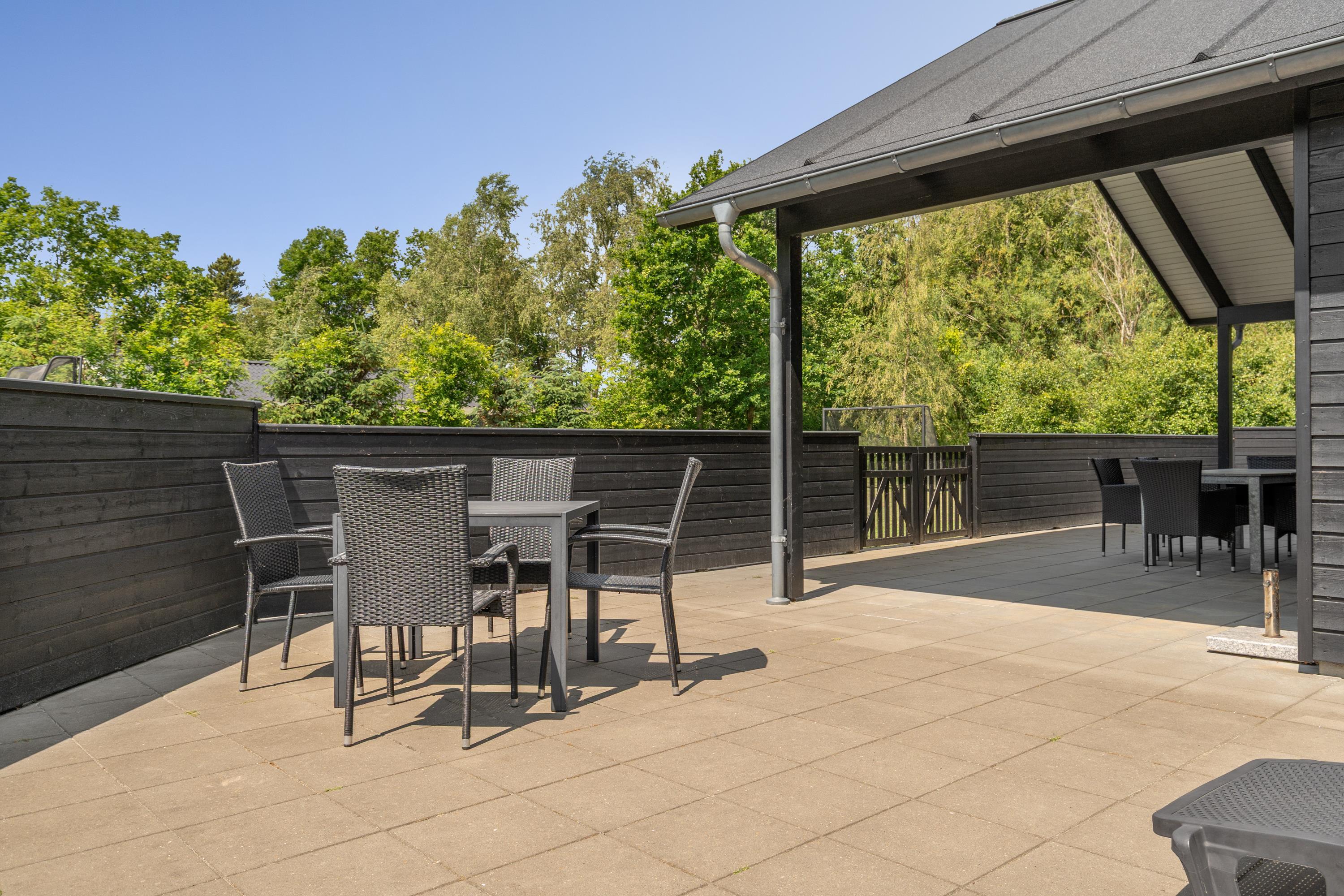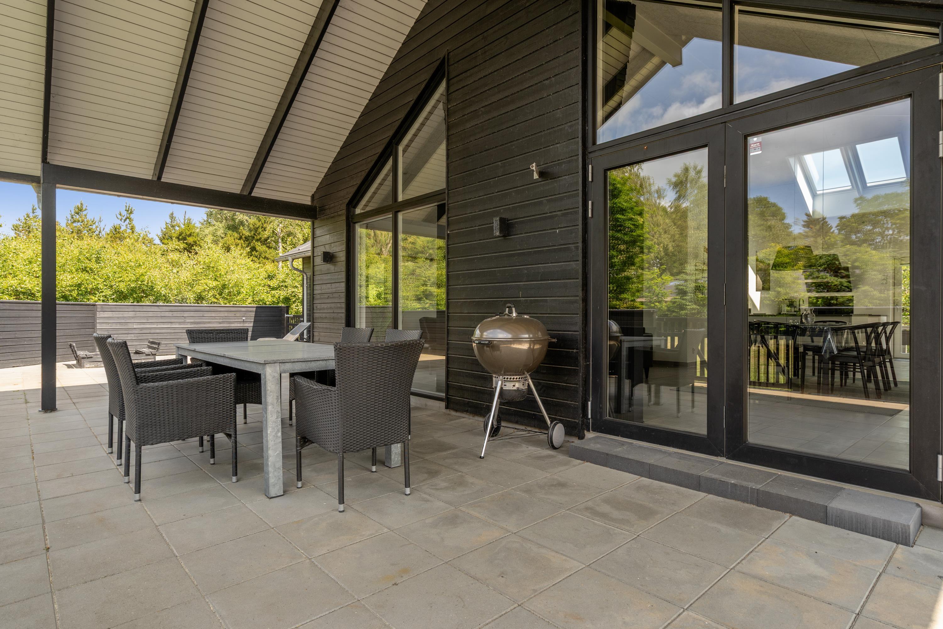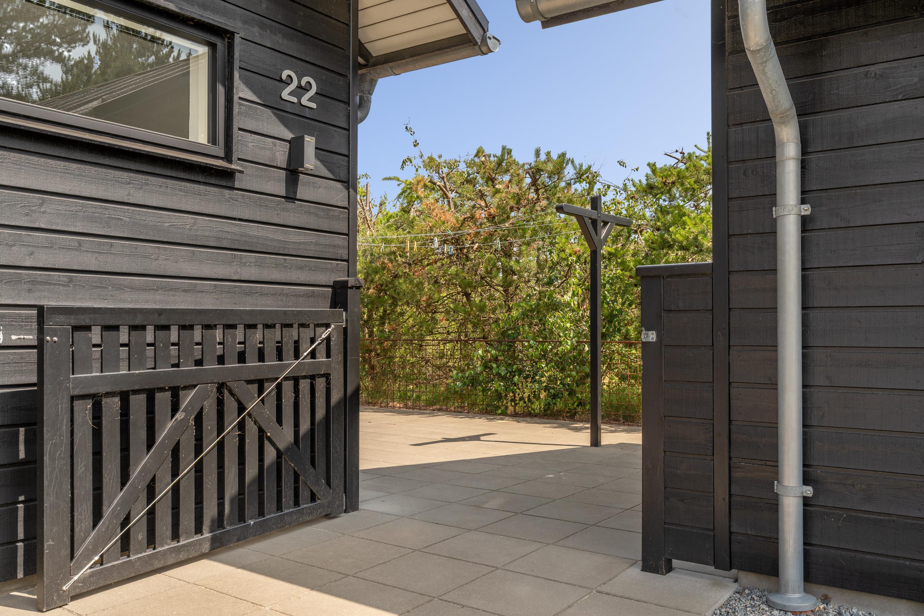 Den store indhegnede terrasse på cirka 70 m2 har tre udgange, hvilket gør det muligt at holde børn og hunde inde. En del af terrassen (ca. 20 m2) er overdækket og bidrager til at forlænge sommerperioden. På den dejlige grund findes fodboldmål, sandkasse, petanquebane, gynger og trampolin, der opfordrer til leg og aktivitet. Huset udlejes udelukkende til familier og ikke til grupper. Der er også et separat og aflåst skur til lejer med ekstra køleskab. Dette hus er virkelig gennemført! Fri adgang til Svøm og Leg. I kan som gæst hos Axelgaard spille gratis golf i Outrup og komme til speedway løb i Outrup uden beregning.