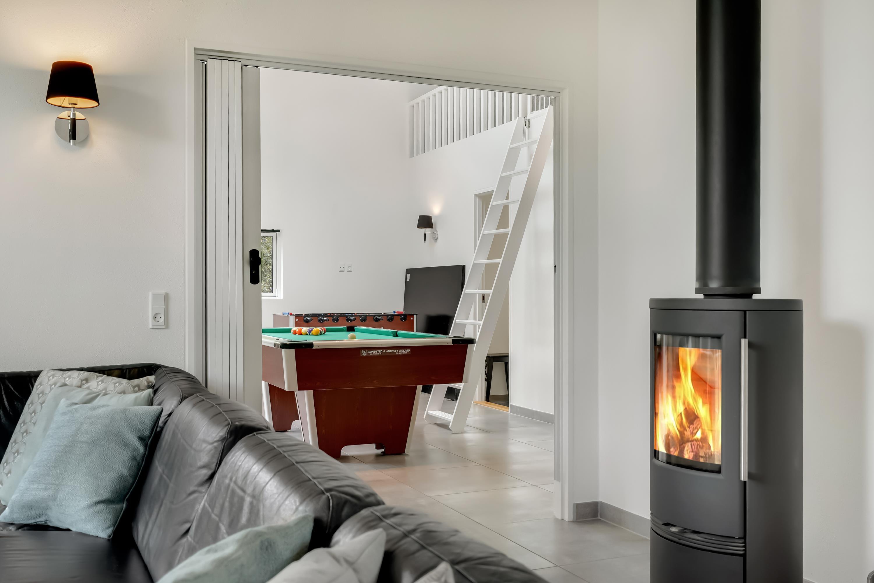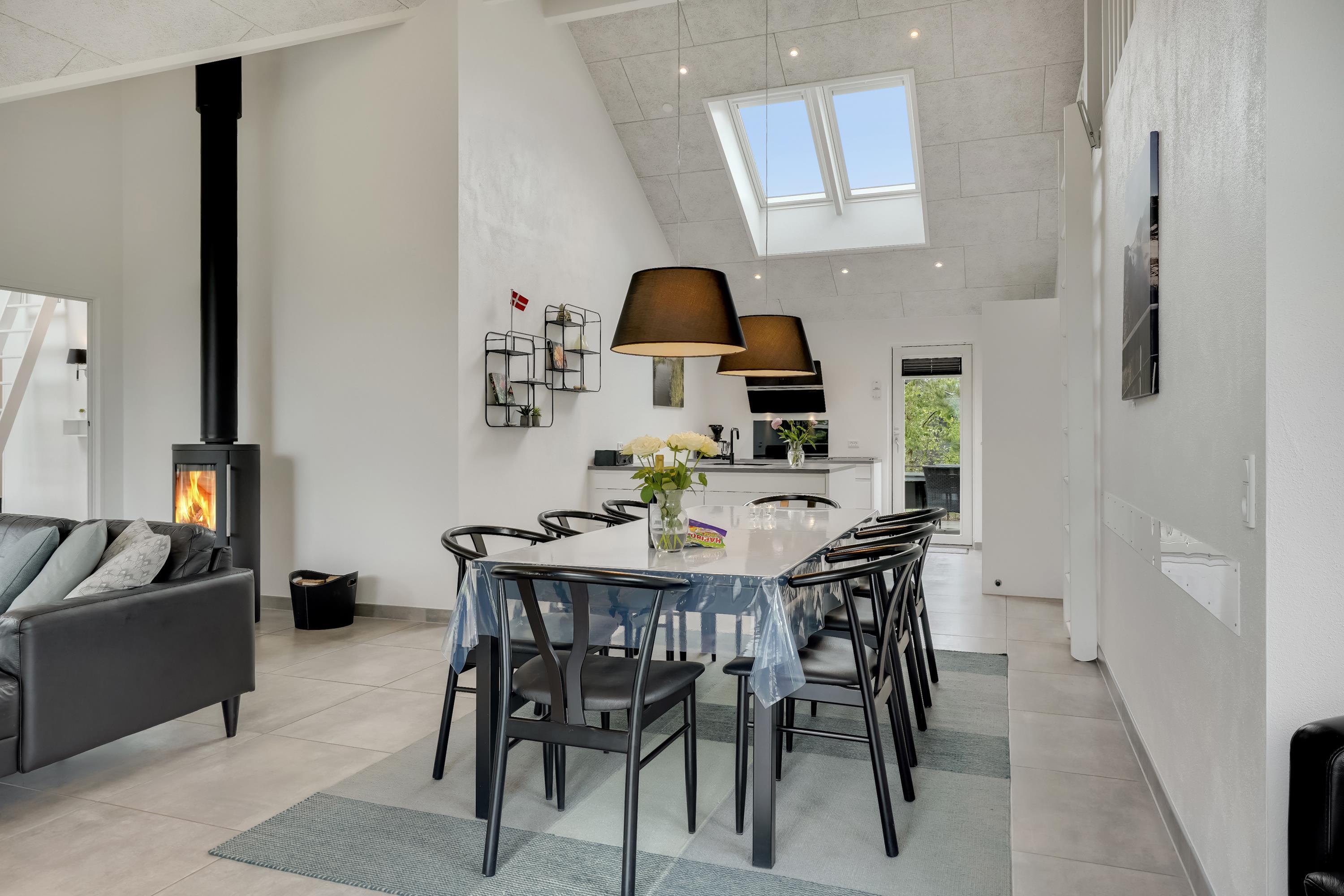 Køkkenet er rummeligt og kombineret med en spiseplads samt en opholdsstue, der har både brændeovn og varmepumpe, hvilket sikrer et behageligt indeklima og lavere energiregninger. I stuen er der CD/DVD.
