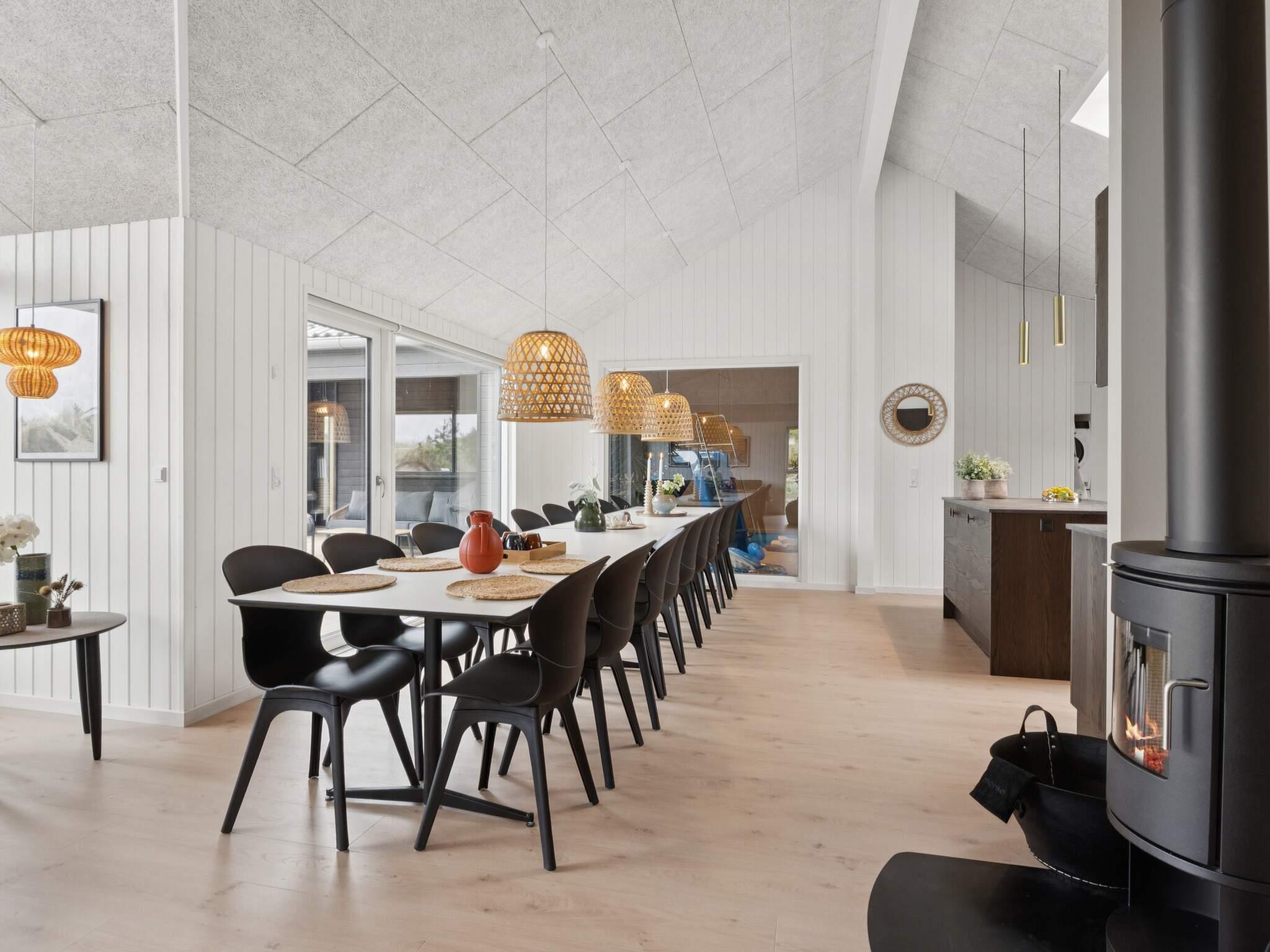 Husets store XL-køkken er udstyret med alt, hvad I behøver til både hurtige måltider og store festmiddage. Med to opvaskemaskiner, to ovne og to store køleskabe er der masser af plads til at tilberede mad til en stor gruppe. Efter middagen kan I samles i den indbydende stue, hvor brændeovnen skaber en varm og hyggelig atmosfære, perfekt til de kølige aftener.