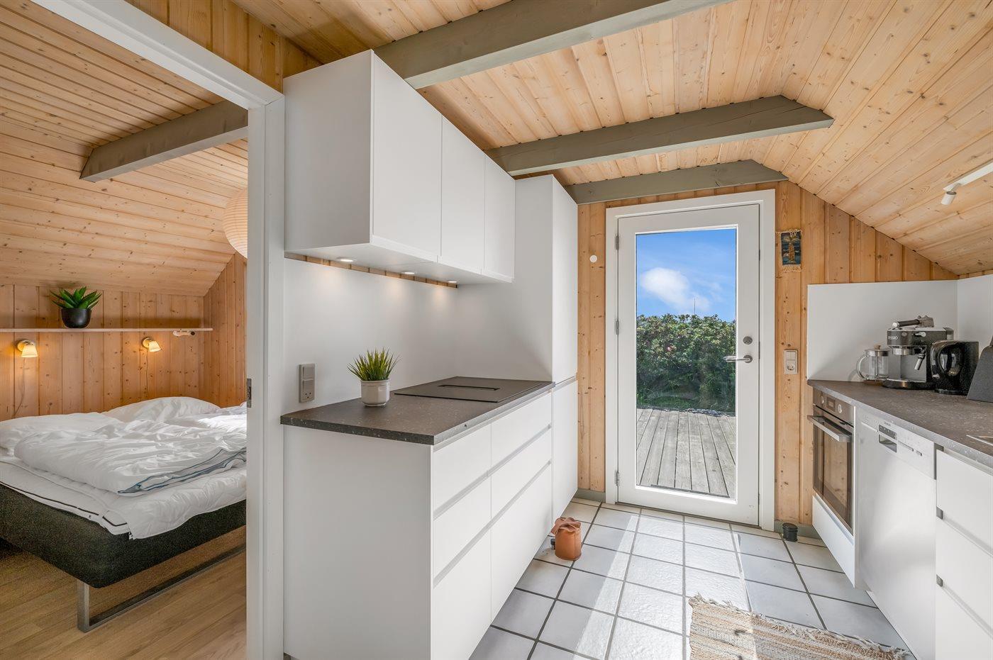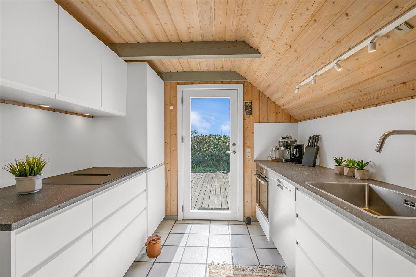 Køkkenet er udstyret med 1 køleskab. Der er 4 keramiske kogeplader, bageovn samt opvaskemaskine.