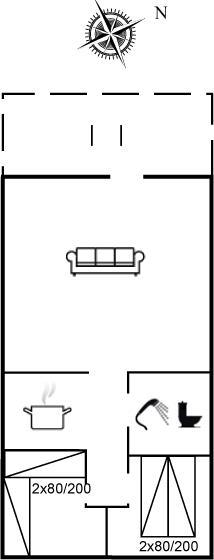 Der er i alt 2 soveværelser. Sovepladserne fordeler sig på: 2 sovepladser i dobbeltseng. 4 sovepladser i enkeltsenge.