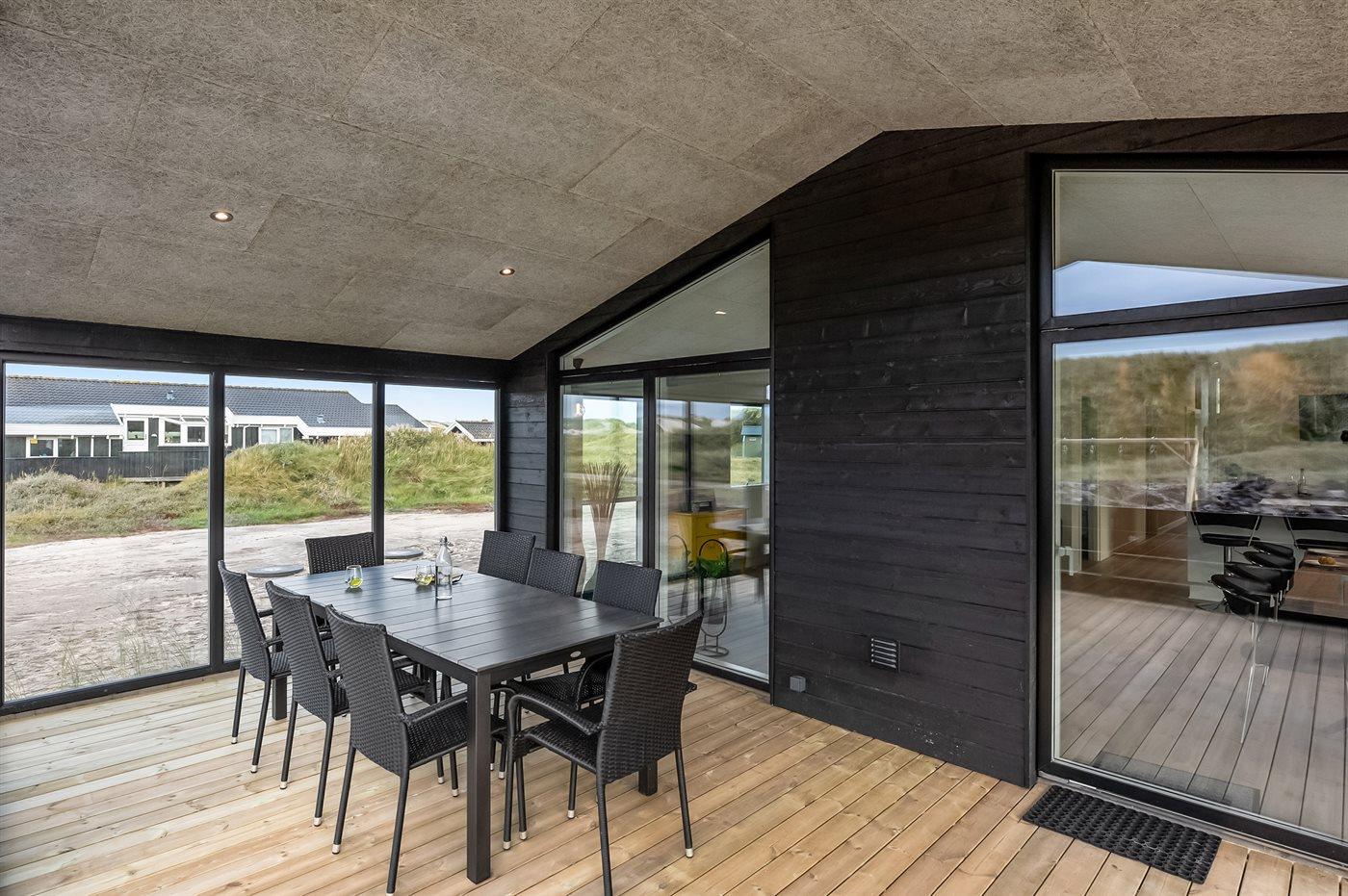 Ferieboligen er beliggende på en 2788 m² stor naturgrund. Der er 300 m til havet. Nærmeste forretning er beliggende i en afstand af 2500 m. Til ferieboligen hører 93 m² terrasseareal. Desuden er der 25 m² overdækket terrasse. Heraf i alt 93 m² lukket terrasse. Gynge. Sandkasse. Der er installeret stik til opladning af elbil. Type 2 stik. Parkering ved ferieboligen.