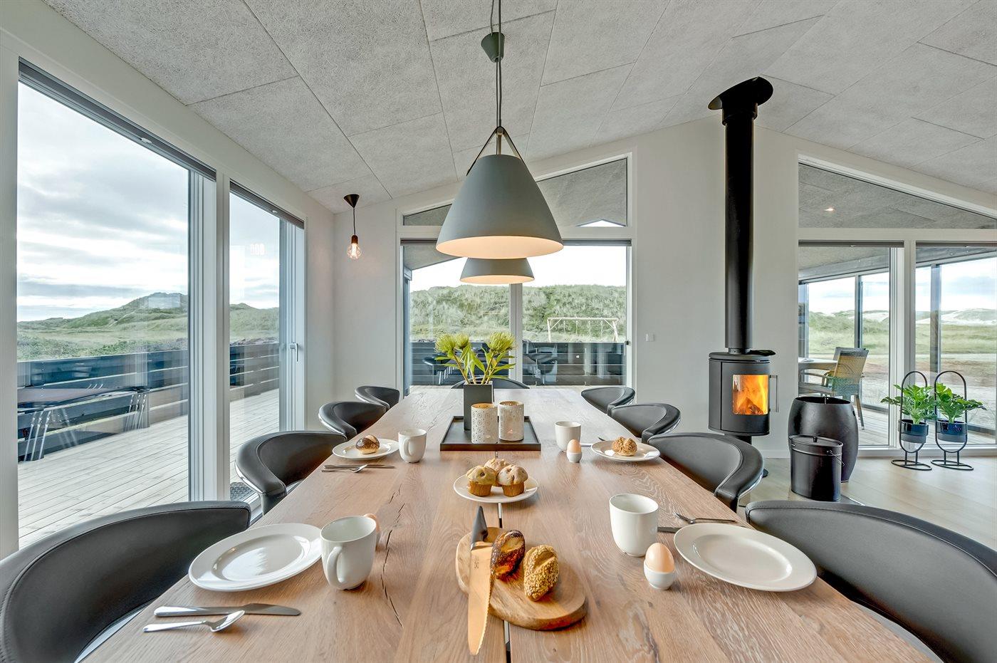 Sommerhuset egner sig til 8 personer samt 1 barn op til 3 år. Ferieboligen er på 155 m² og er bygget i 2019. Det er ikke tilladt at medbringe husdyr. Ferieboligen er udstyret med energibesparende varmepumpe. Ferieboligen er udstyret med energibesparende varmegenvindingsanlæg. Hele ferieboligen har gulvvarme. Ferieboligen har vaskemaskine. Tørretumbler. Frysekapacitet på 40 liter. Der er desuden brændeovn. Til de små er der 1 stk. barnestol.