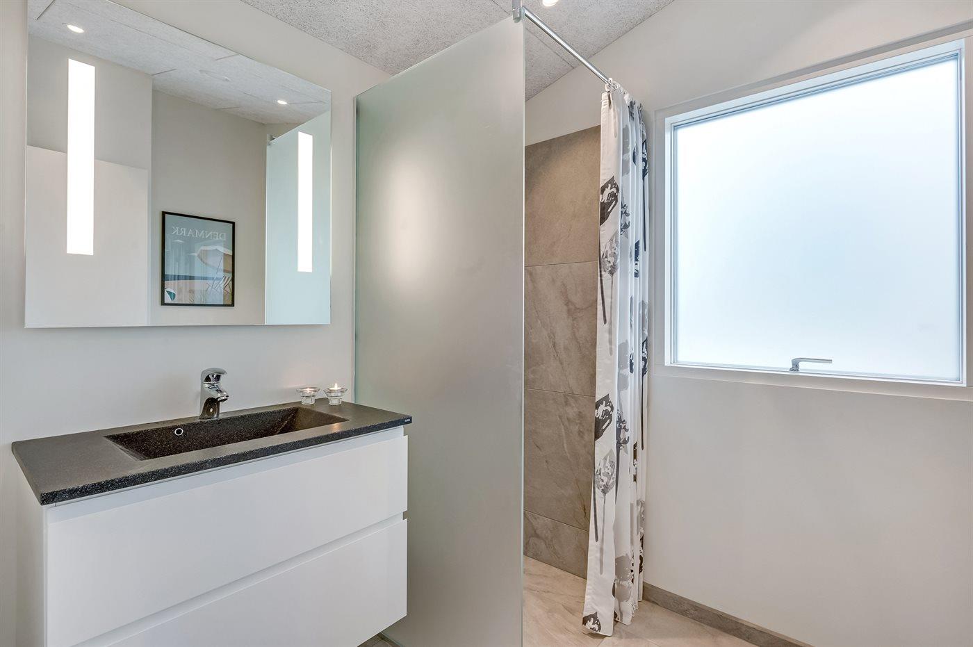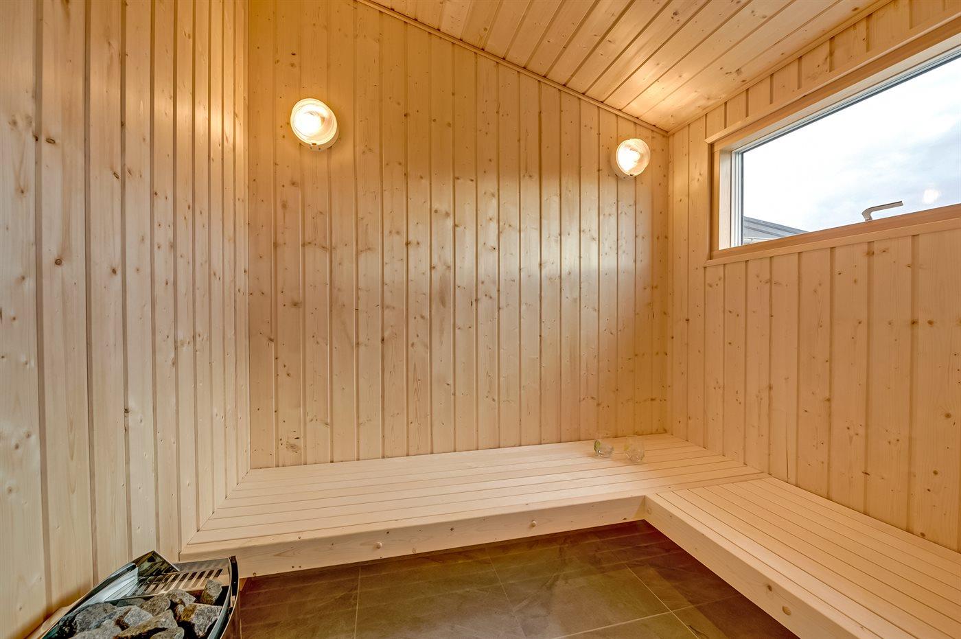Der er 3 badeværelser med bruseniche og 3 toiletter. Der er gulvvarme på 3 badeværelser. I saunaen er der mulighed for afslapning.