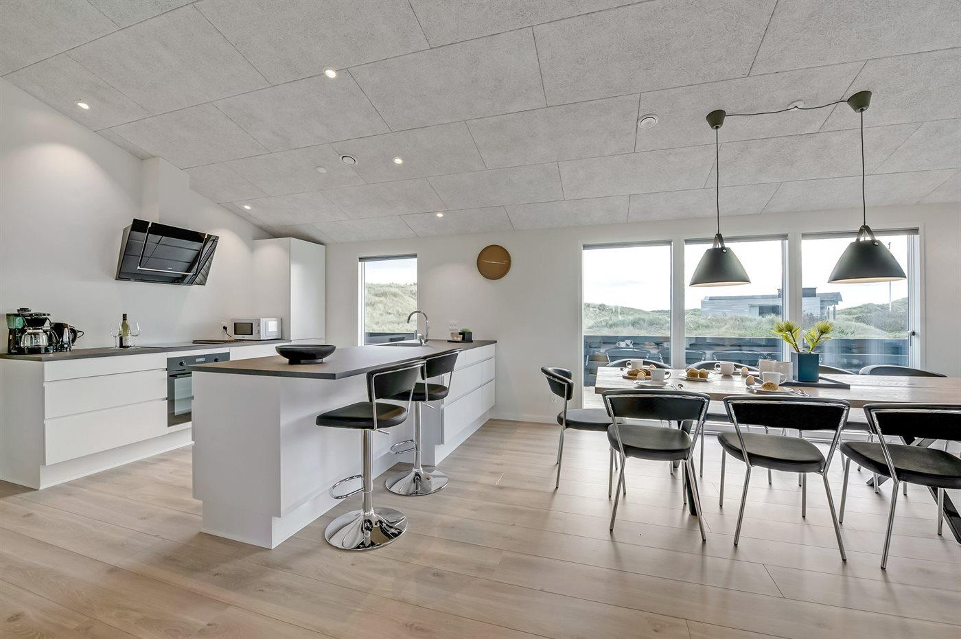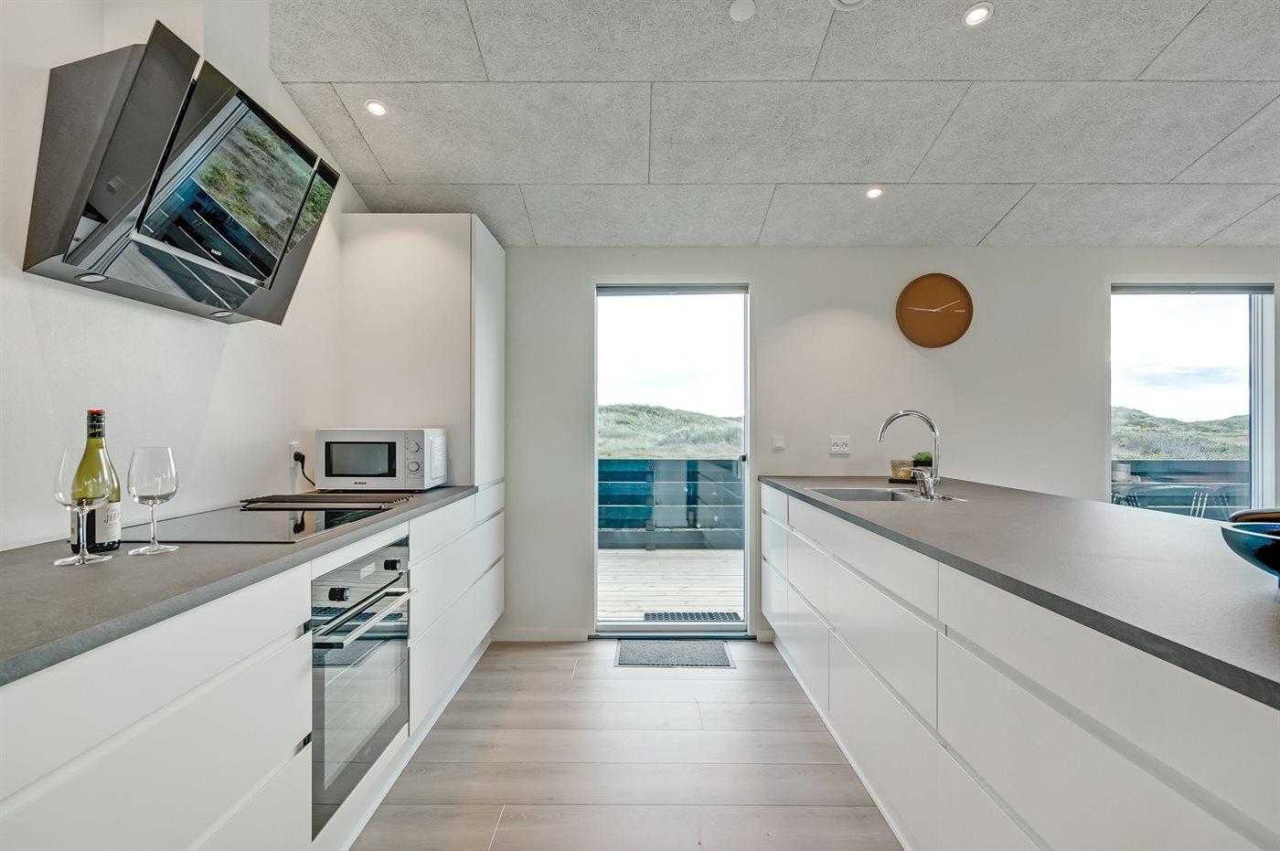 Køkkenet er udstyret med 1 køleskab. Der er 4 keramiske kogeplader, varmluftovn, mikrobølgeovn samt opvaskemaskine.