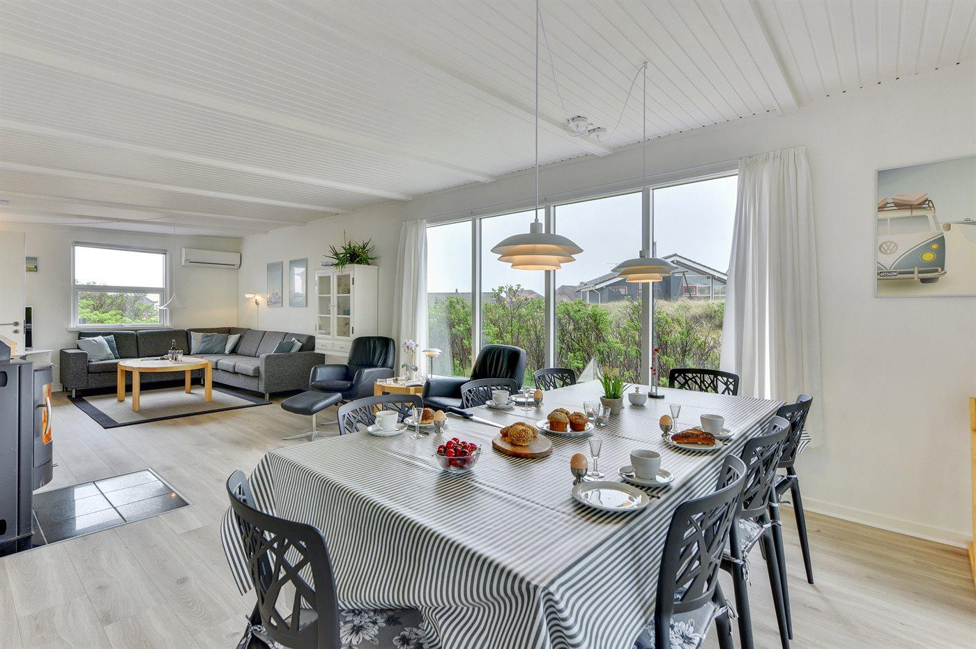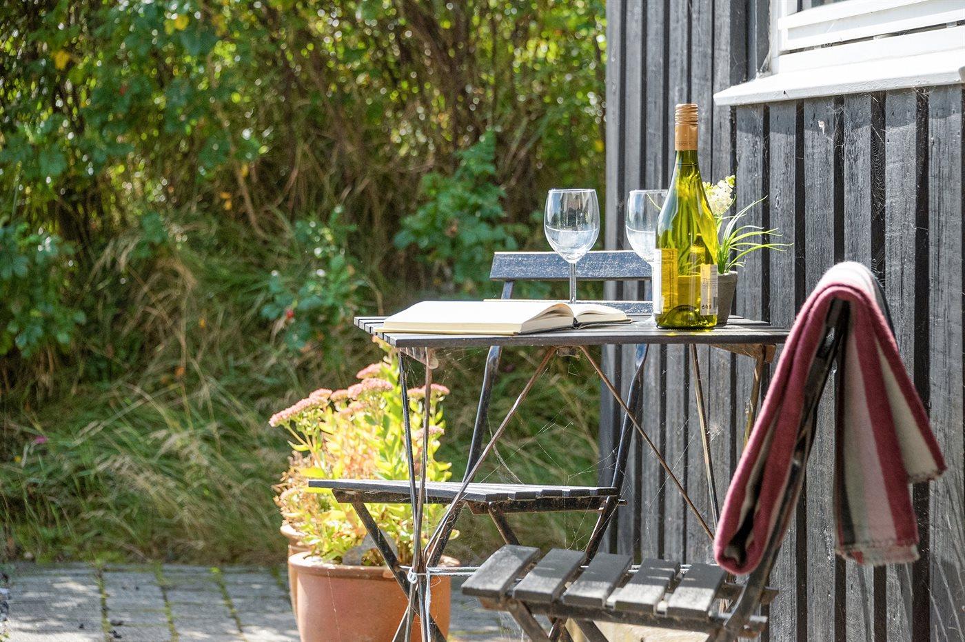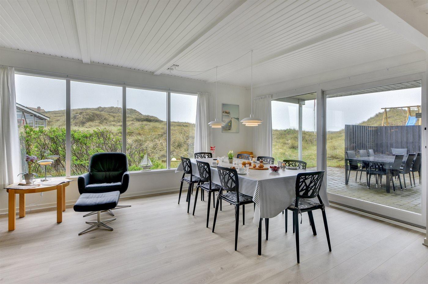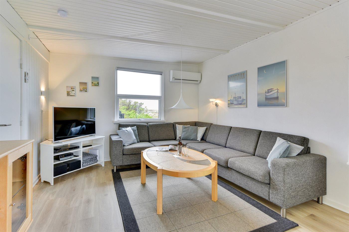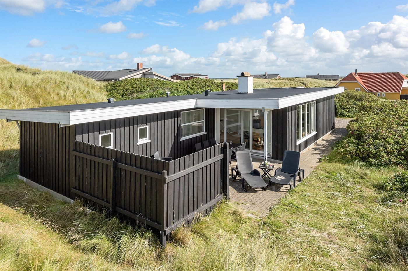 På en charmerende, kuperet klitgrund kun 200 m fra Vesterhavet og med en vidunderlig udsigt til de nærliggende klitter finder I dette flotte og hyggeligt indrettede sommerhus. Huset er meget velholdt og er løbende blevet renoveret, senest i 2020, hvor der bl.a. er kommet nyt køkken, gulv, bad, stue, møbler og inventar. Der findes en delvist overdækket og afskærmet terrasse mod vest samt en afskærmet terrasse mod øst – således er det på en dejlig solskinsdag muligt at nyde opholdet på terrassen fra morgen til aften.