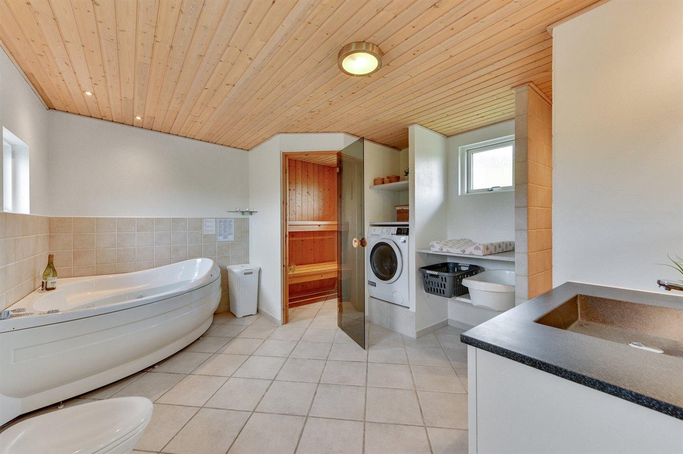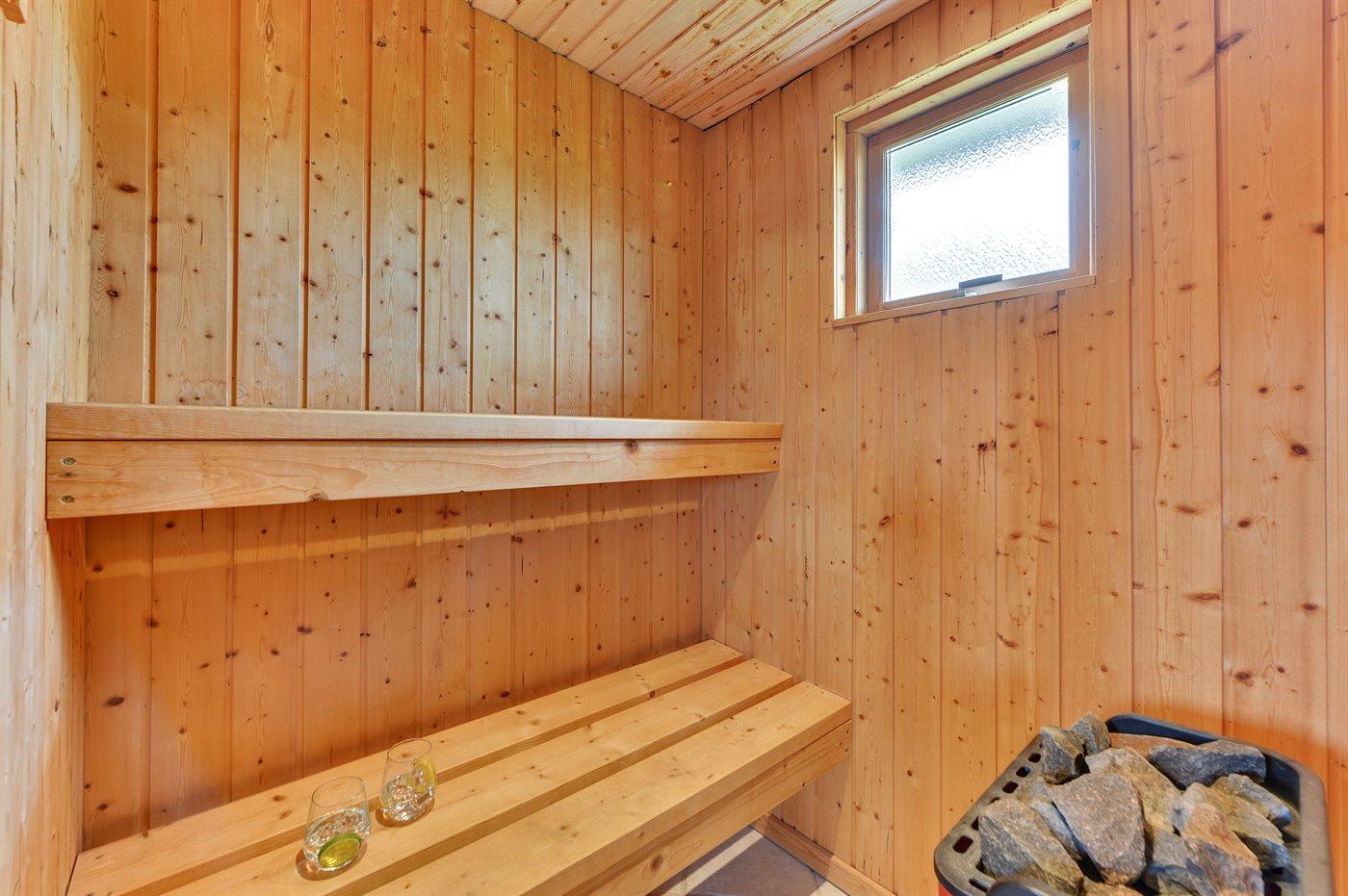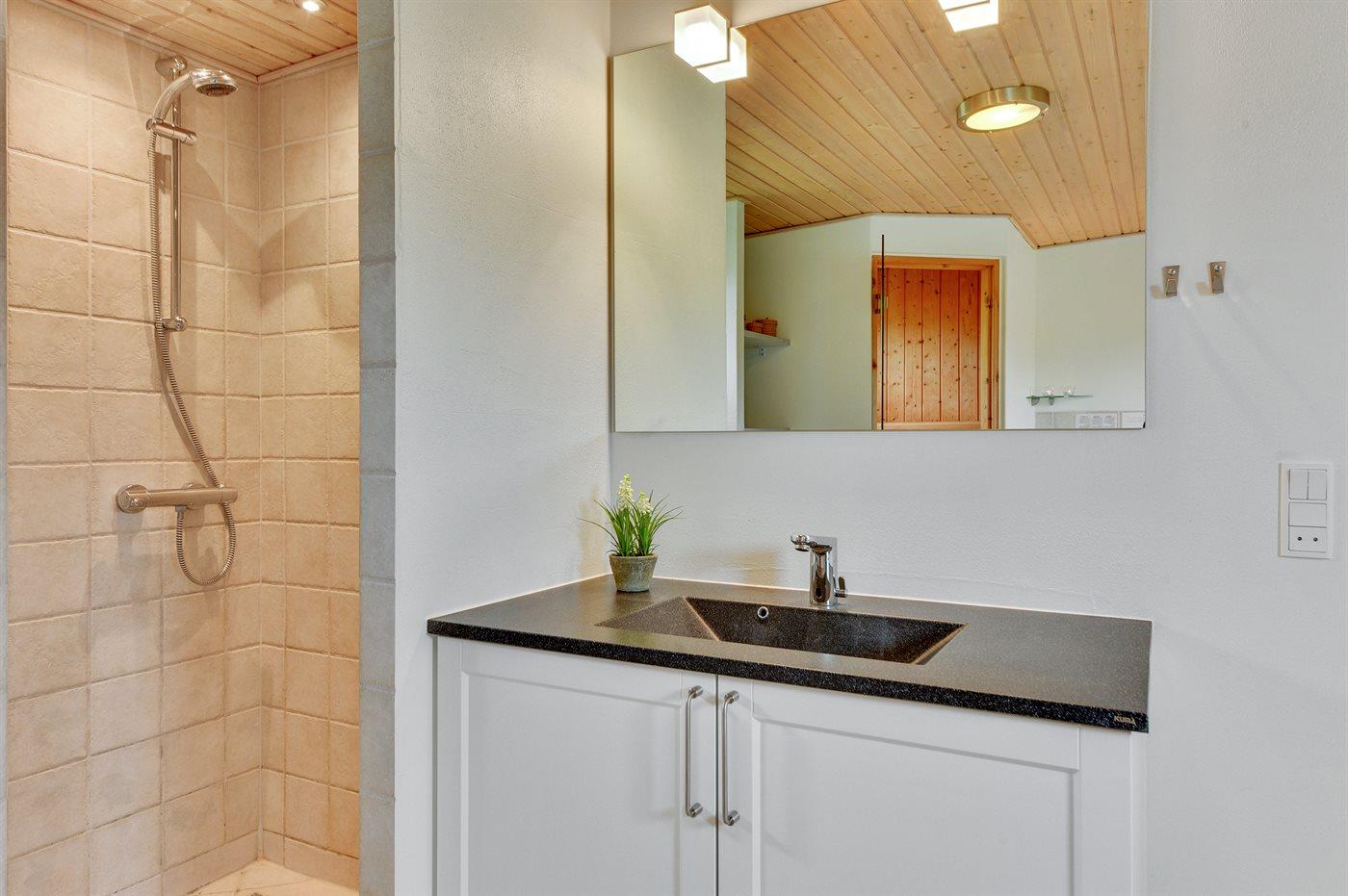 Der er 1 badeværelse med bruseniche og 1 toilet.. Der er gulvvarme på 1 badeværelse. I saunaen er der mulighed for afslapning.