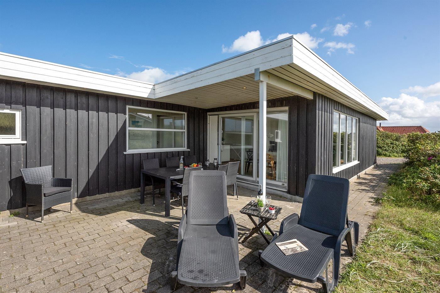 Ferieboligen er beliggende på en 2500 m² stor klitgrund. Der er 200 m til havet. Nærmeste forretning er beliggende i en afstand af 3000 m. Til ferieboligen hører 30 m² terrasseareal. Desuden er der 6 m² overdækket terrasse. Gynge. Sandkasse. Udendørs bruser. Grill til rådighed. Der er carport til rådighed. Parkering ved ferieboligen.