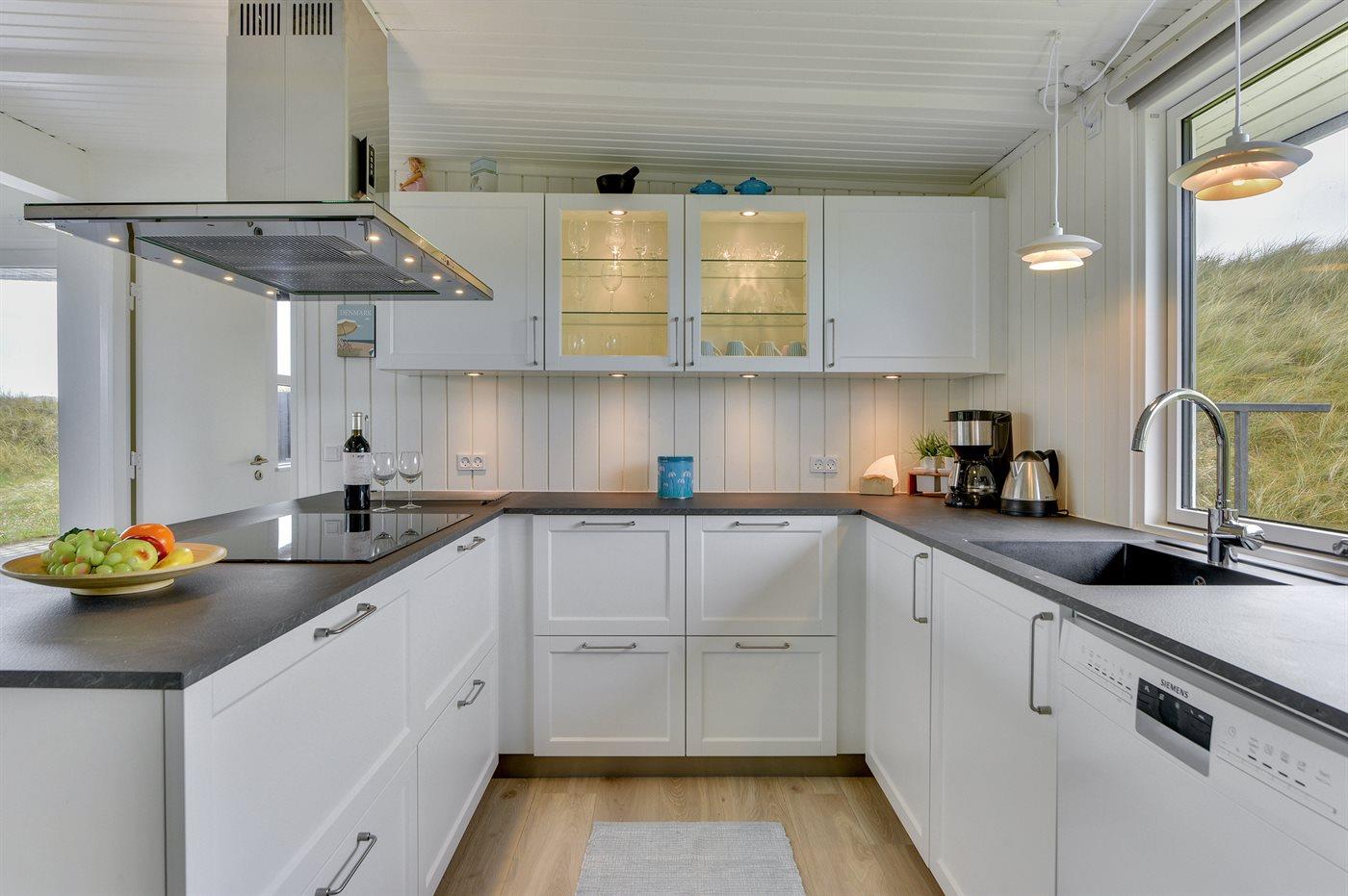 Køkkenet er udstyret med 1 køleskab. Der er 4 induktionskogeplader, varmluftovn, mikrobølgeovn samt opvaskemaskine.