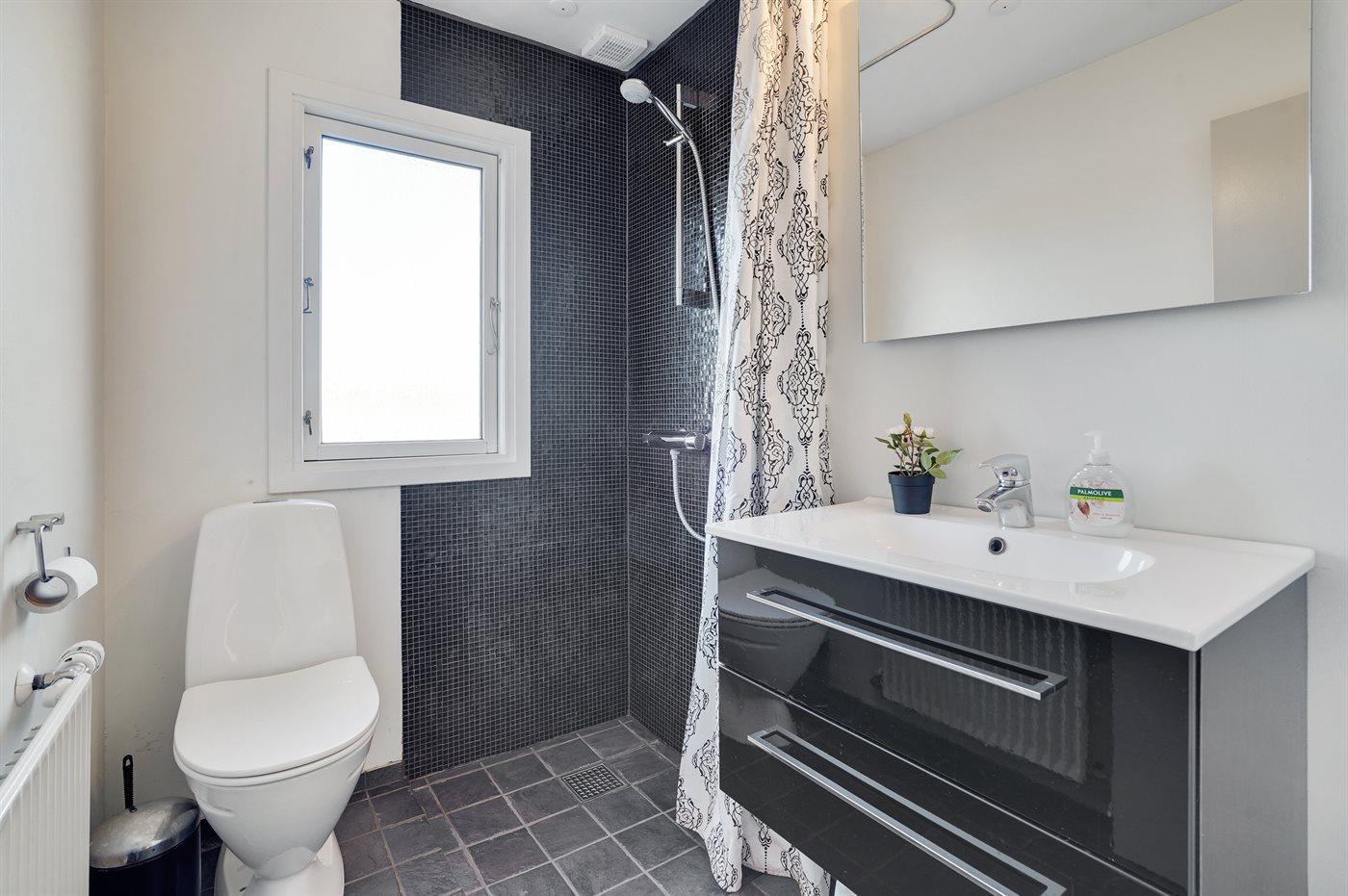 Der er 1 badeværelse med bruseniche og 1 toilet.. Der er gulvvarme på 1 badeværelse.