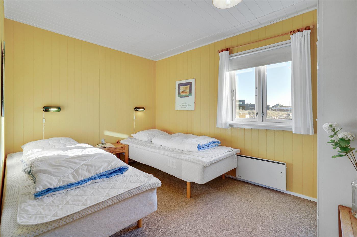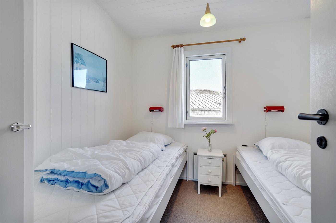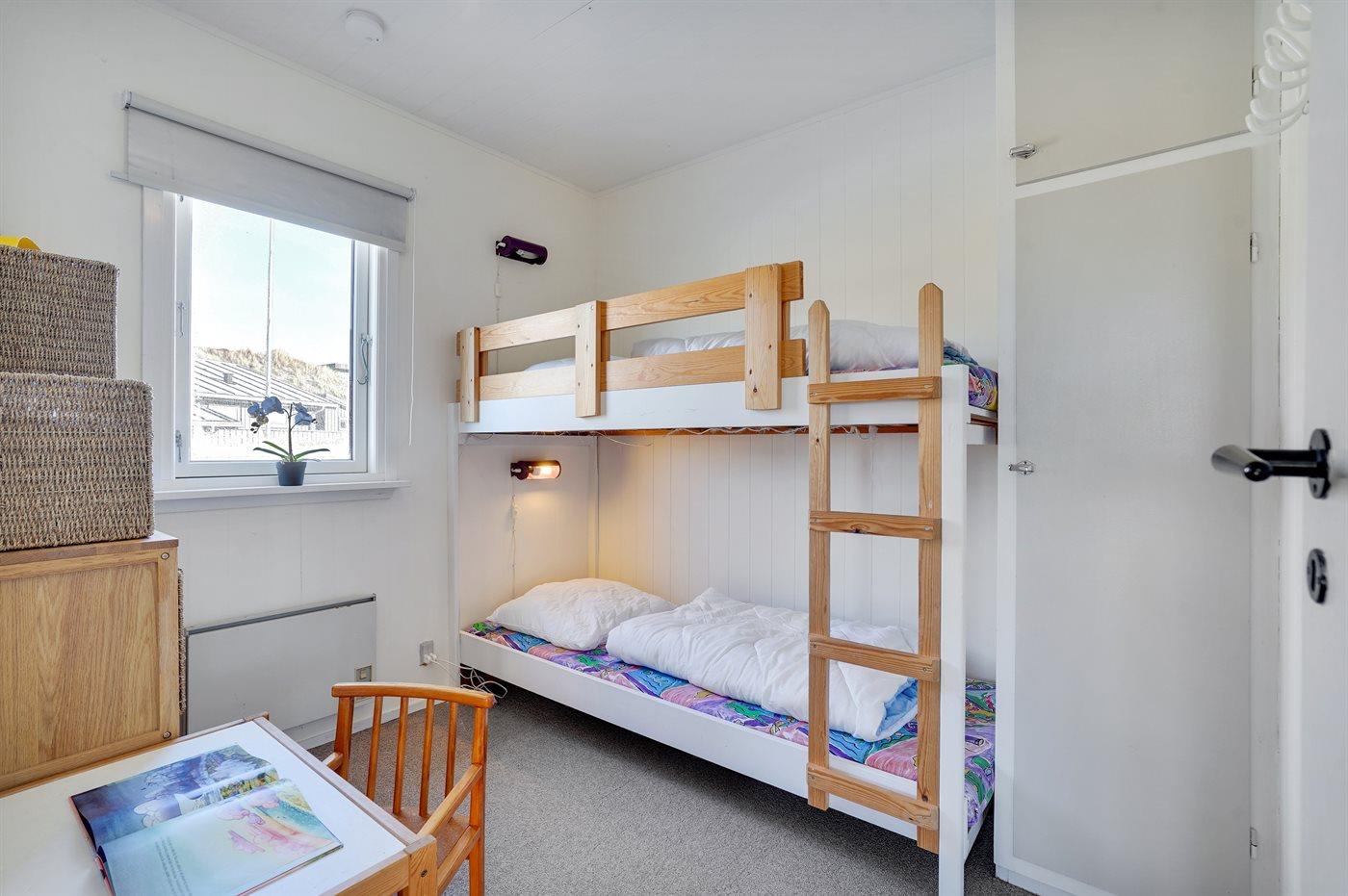 Der er i alt 3 soveværelser. Sovepladserne fordeler sig på: 4 sovepladser i enkeltsenge. 2 sovepladser i køjeseng.
