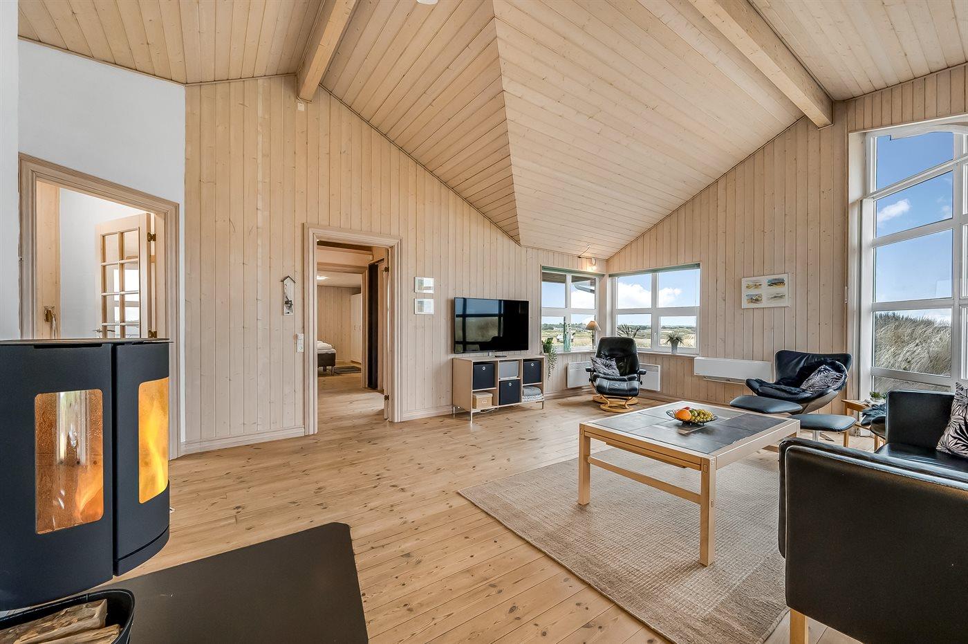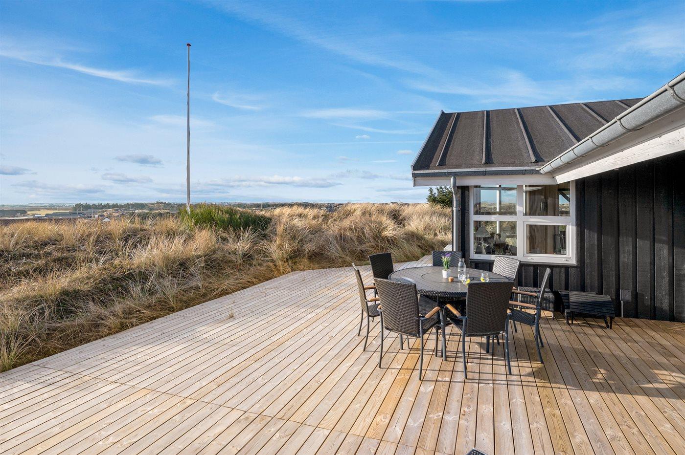 Et fantastisk beliggende sommerhus med kig til klitlandskab hav og fjord.