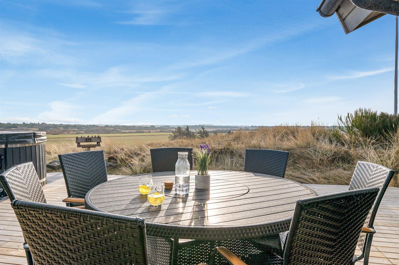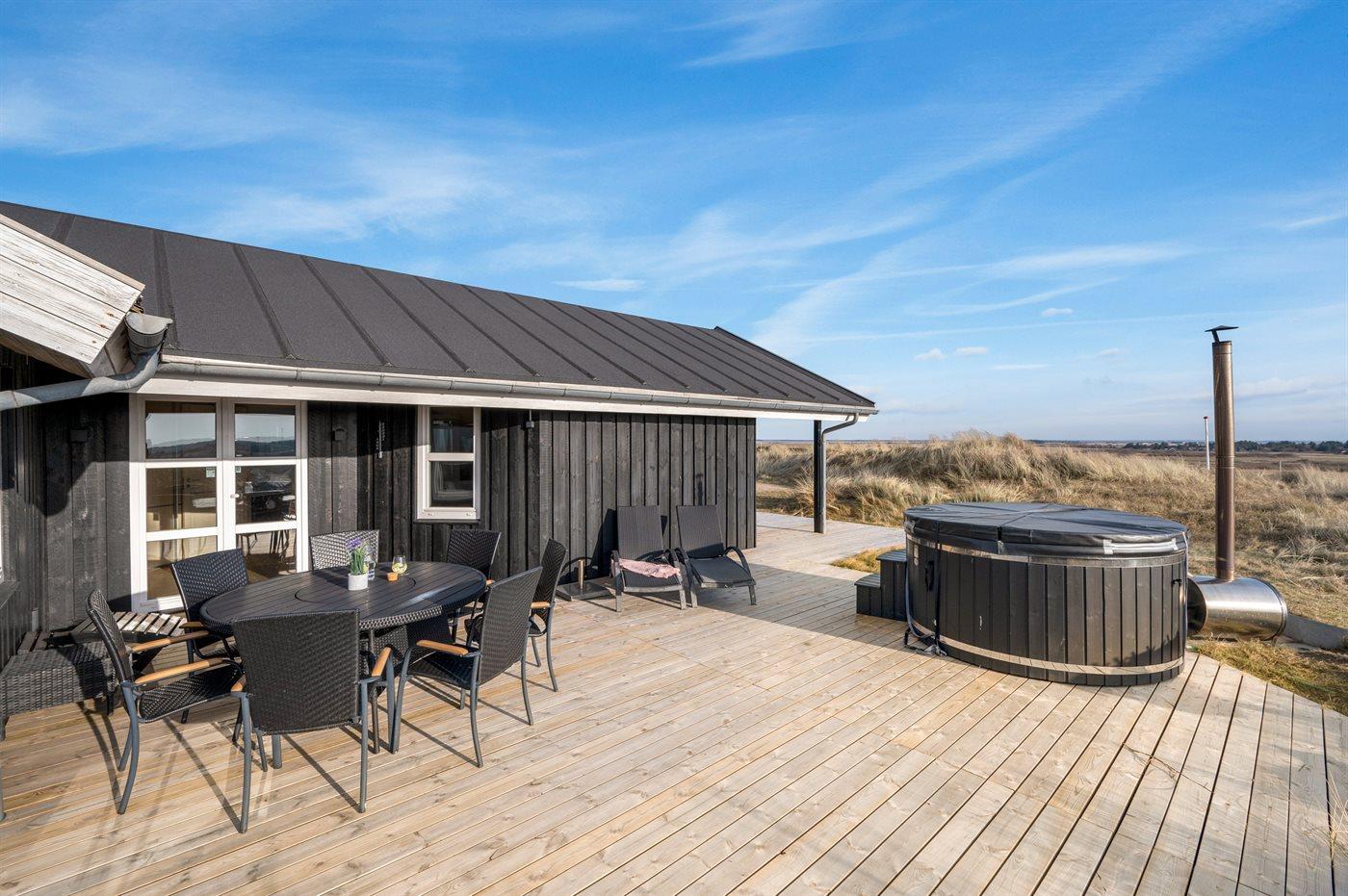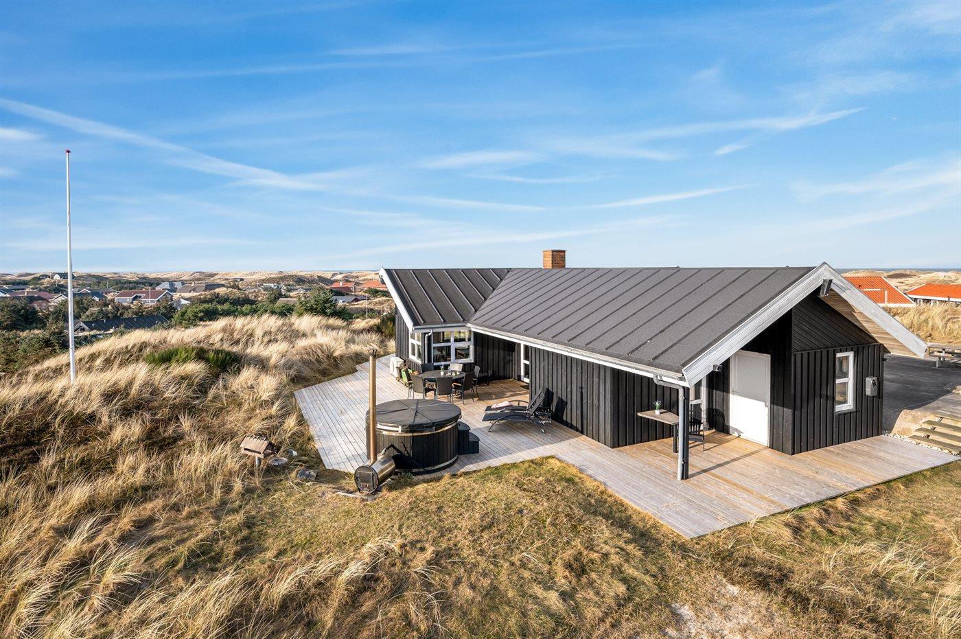 Fantastisk sommerhus med havudsigt, aktivitetsrum, sauna og vildmarkskar nær Ringkøbing.