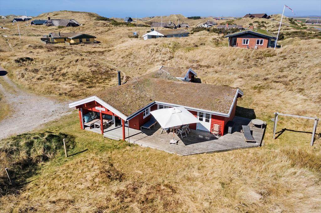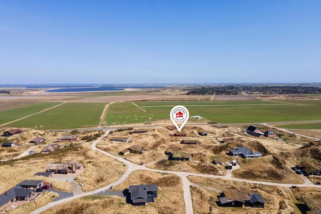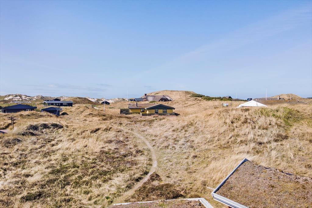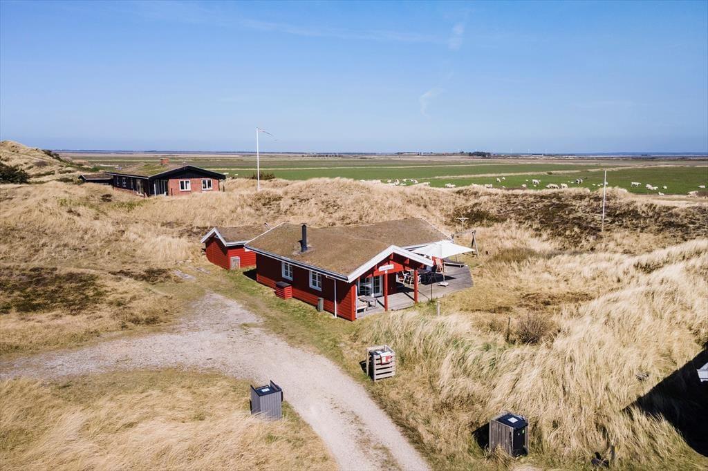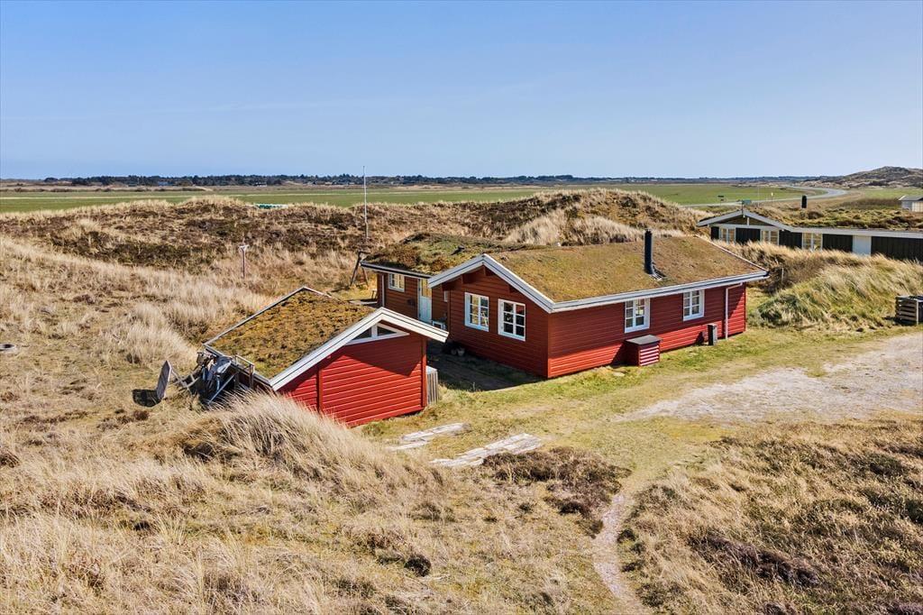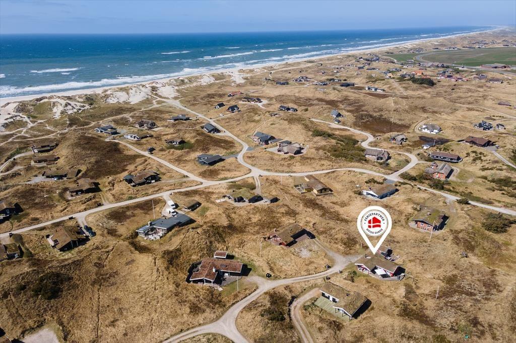 Sortebærdalen er en lille vej, der ender blindt, og sommerhuset ligger helt for enden i fredfyldte og ugenerede omgivelser. En lille sti fører jer direkte gennem klitlandskabet og ned mod Vesterhavet – for at komme ned på stranden skal I kun tilbagelægge 400 meter, så flere daglige badeture kan sagtens komme på tale. Skal hele ferien ikke foregå her på den dejlige sandstrand, er der få kilometer til både Stadil Fjord og Ringkøbing Fjord, og den hyggelige badeby Søndervig ligger bare tre kilometer væk. Her kan I klare indkøbene og gå ud at spise, og hvis I har medbragt cykler, er der cykelsti hele vejen derhen.