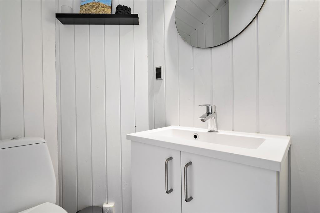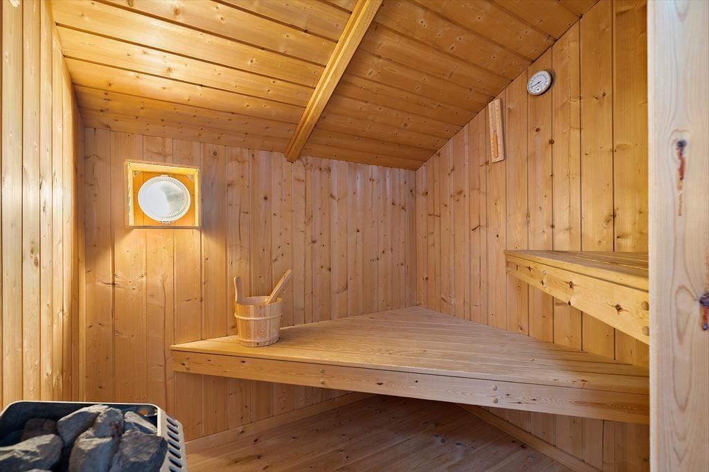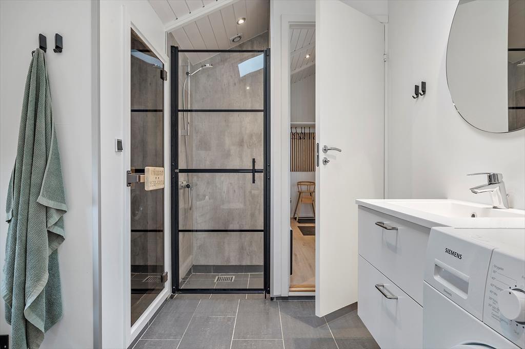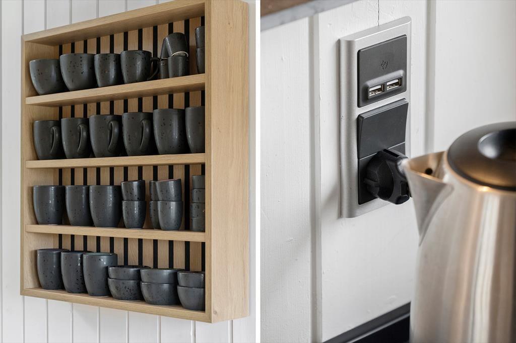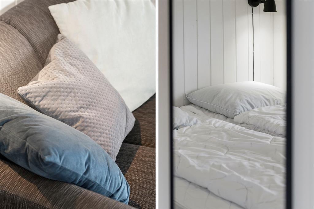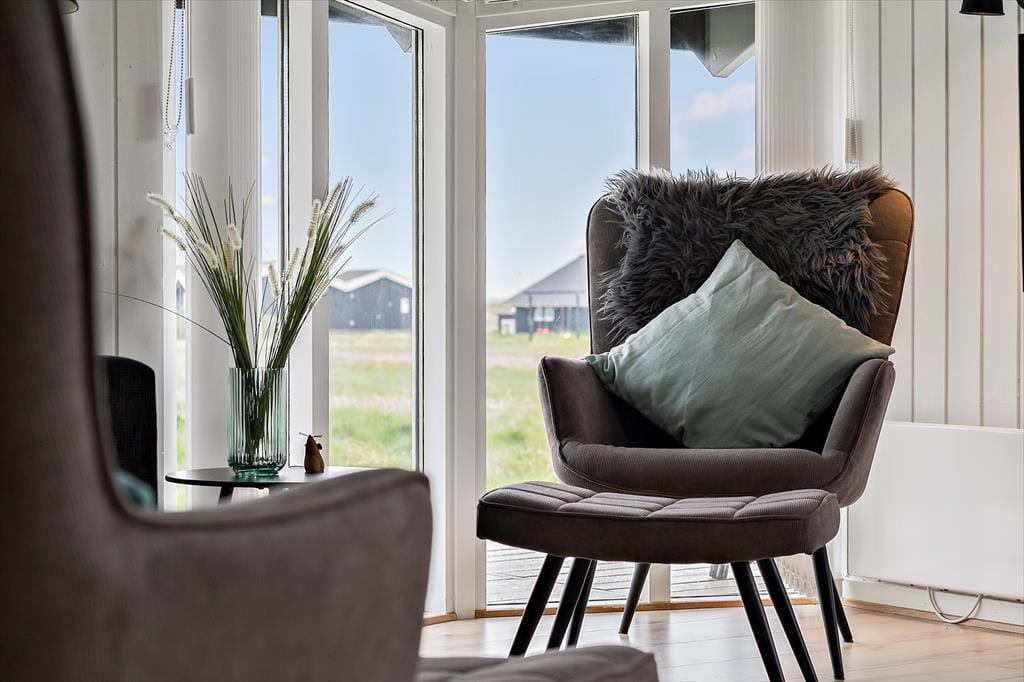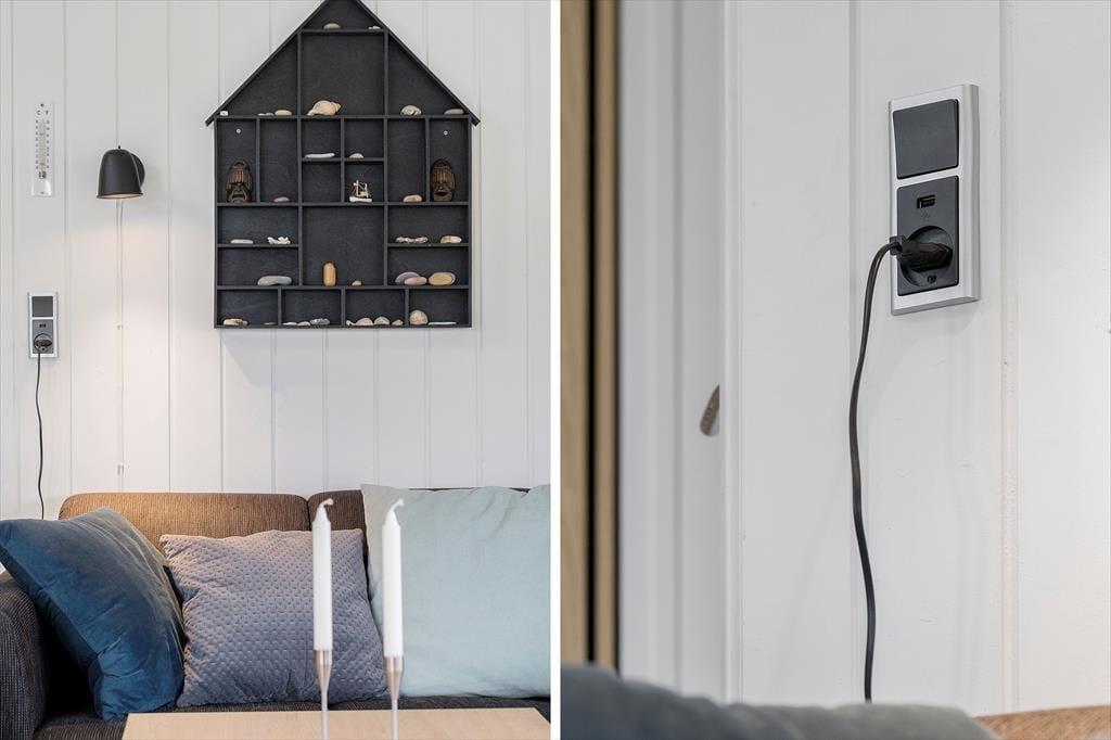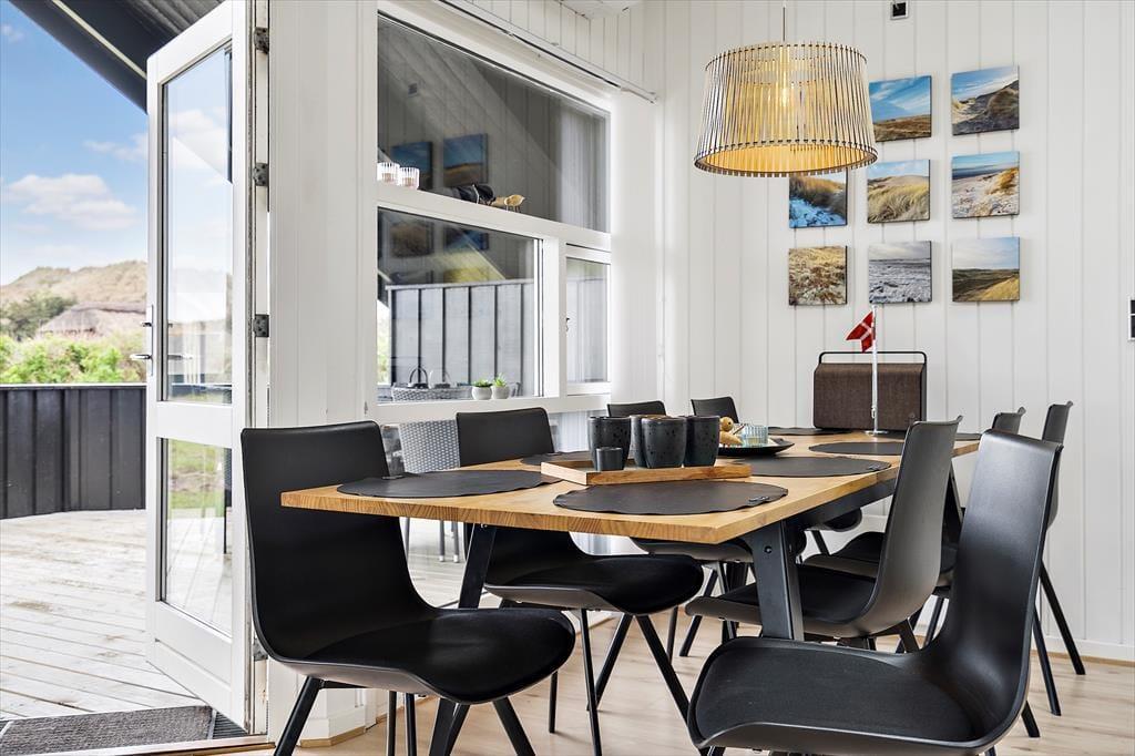 Udover sovegemakker og badefaciliteter er der selvfølgelig også en opholdsafdeling i det 88 m2 store sommerhus. Den består af stue og køkken i åben forbindelse, og med loft til kip, ovenlysvinduer og hvidmalede trævægge er atmosfæren lys og indbydende. Efter seneste renovering, der foregik i 2021, er interiøret stilfuldt, og i køkkenet har I alt, hvad I skal bruge for at trylle noget lækkert frem til alle måltider på dagen. Er det køligt udenfor, kan I tænde op i brændeovnen, inden I sætter jer til bords – og også fra sofaafdelingen kan I kigge ind i flammerne og mærke varmen brede sig. En anden måde, I kan blive varmet igennem på, er at gå i spabad og sauna på det lækre wellnessbadeværelse, der ligger centralt i huset.