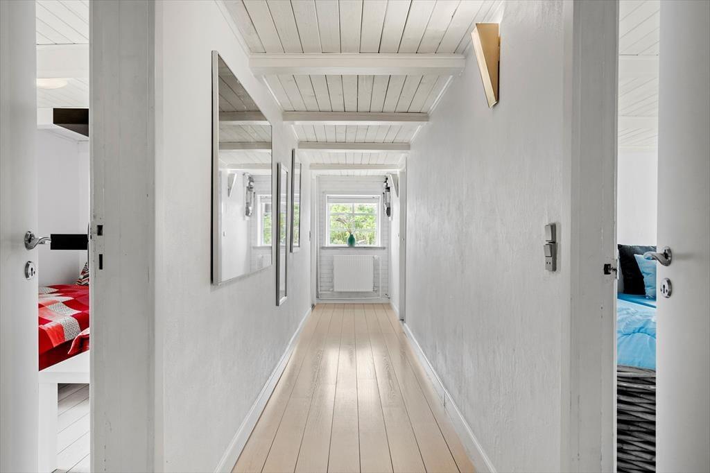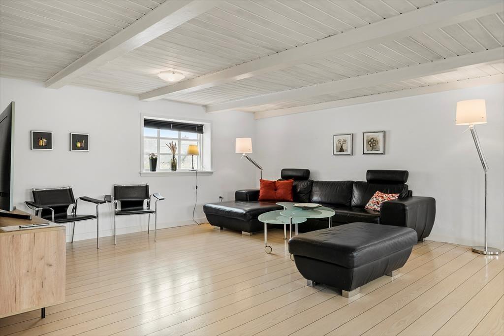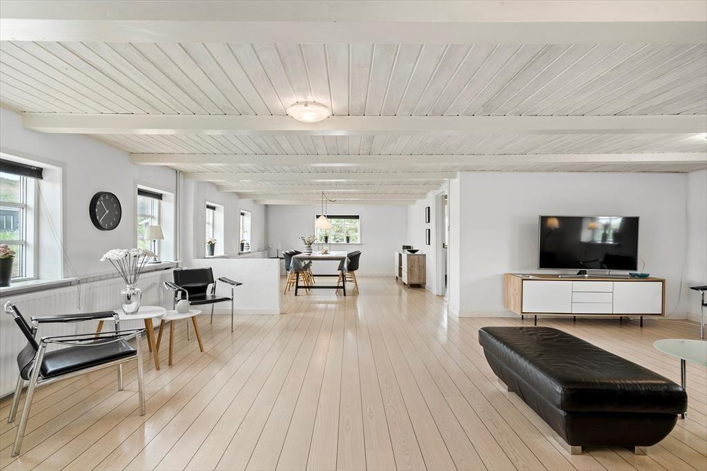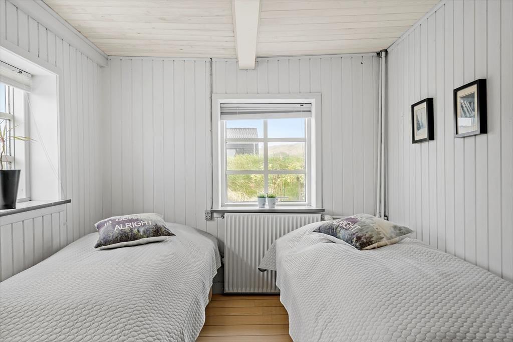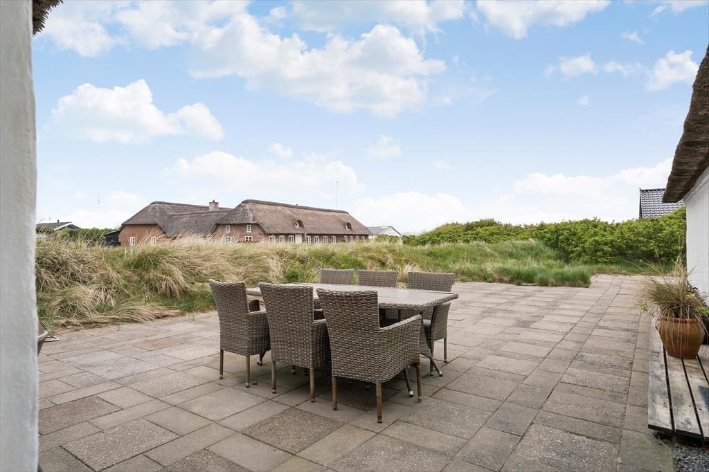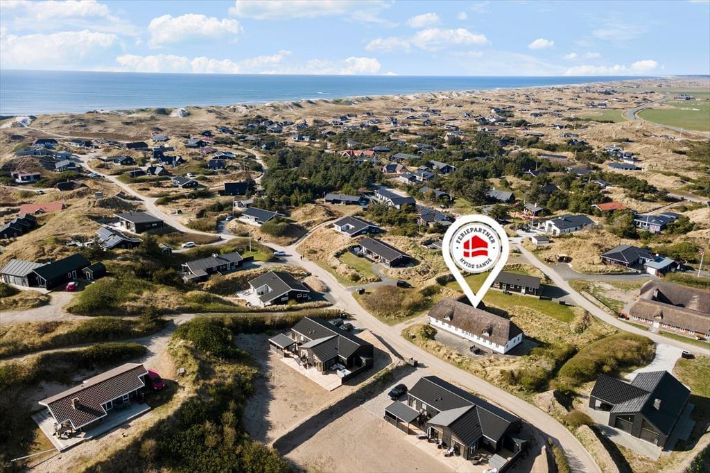 Ferieboligen ligger skønt placeret på en 2910 m2 stor naturgrund i Houvigs kønne klitlandskab. Med andre ord er rammerne helt i top, når I vil grille eller bare slappe af under åben himmel. De tilbagelænede stunder kan foregå på den store fliseterrasse, der breder sig rundt om huset, hvilket gør det nemt at finde en god solkrog det meste af dagen.