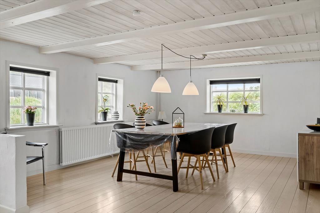 Historisk charme og moderne boligdesign er flot forenet i denne hyggelige feriebolig, der ligger bare 600 meter fra Houvig Strand og Vesterhavet.
