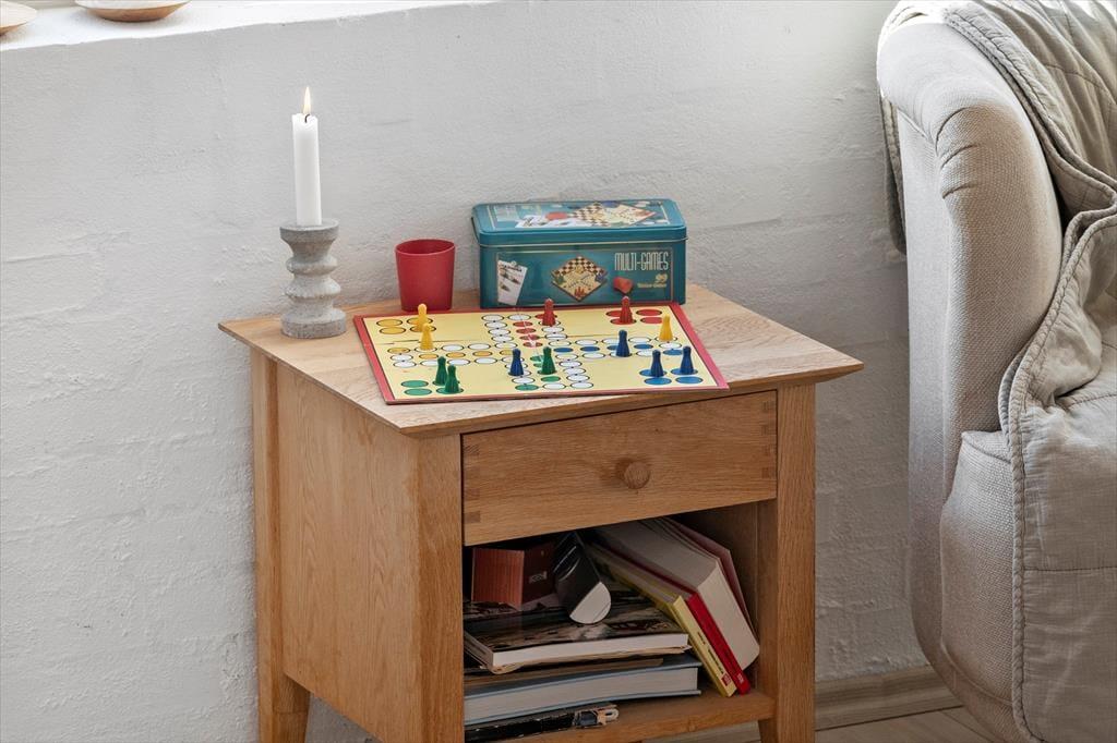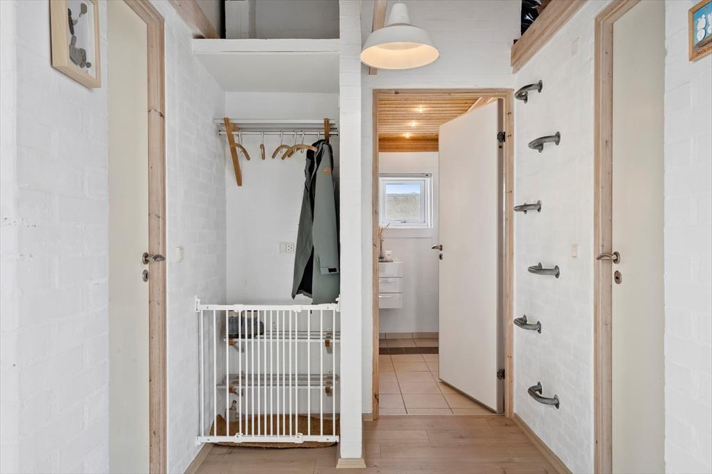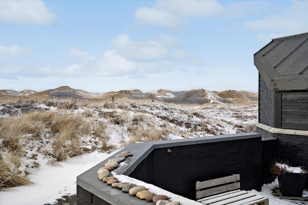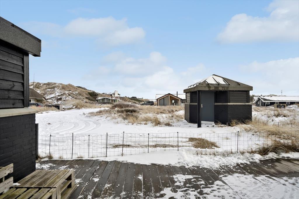 Når solen titter frem, rykker ferien helt naturligt udenfor på den dejlige, åbne terrasse, som samtidig er delvist indhegnet. Her kan du nyde morgenkaffen i læ, lade børnene lege trygt og finde ro i liggestolen med udsigt til det karakteristiske klitlandskab. Den indhegnede del af grunden skaber en tryg ramme, og huset byder desuden på praktiske løsninger, der gør ferien ekstra bekvem – blandt andet mulighed for at opbevare udstyr sikkert. Vi oplever ofte, at netop disse små detaljer gør en stor forskel i ferien, fordi de giver mere tid til det, der virkelig betyder noget: afslapning, nærvær og kvalitetstid.