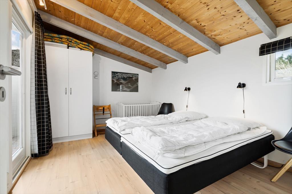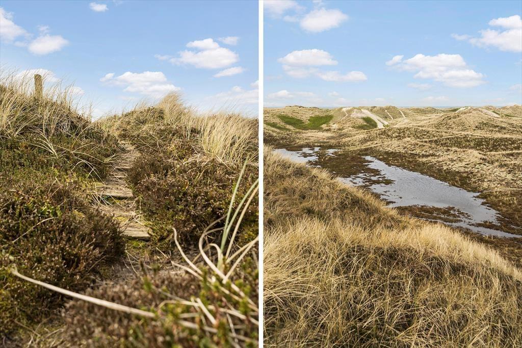 Sommerhuset ligger roligt placeret i bunden af den lukkede vej Mågedalen, og stierne gør det særdeles nemt at trave den korte tur gennem klitterne og lige ned på Houvig Strand. Der er heller ikke mere end en kort gåtur hen til Houvigs sæsonåbne bager, og hvis du vil købe ind til aftensmaden i en rigtig gårdbutik, skal du følge kysten et par kilometer mod nord. De daglige ferieindkøb kan også klares i badebyen Søndervig, hvor du får rig mulighed for at tage ud at spise og prøve sjove ferieaktiviteter. Den årlige Sandskulpturfestival er en populær begivenhed, og uanset om du spiller golf, surfer, fisker eller elsker at cykle lange ture, kan du dyrke din hobby i lokalområdet.