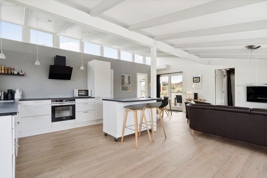 Det er ikke kun naturen, der er værd at skrive hjem om, for selve huset er et indbydende byggeri med moderne interiør og en lys atmosfære. Huset blev renoveret i 2021, og det foregik på gennemført vis, så der nu blandt andet er gulvvarme i alle rum, inklusiv i de tre dejlige soveværelser og på det stilfulde badeværelse. Køkkenet er både rummeligt og veludstyret, og derudover er det rart, at det er integreret med stuen, så du kan nyde familienærværet, også når du er i gang med at bage boller eller forberede aftensmaden. Trænger du til at slappe helt af, kan du streame film eller serier på fladskærms-tv’et – hvis ikke du bare sætter dig med en god kop kaffe og lader tankerne vandre, mens du beundrer klitlandskabet udenfor.