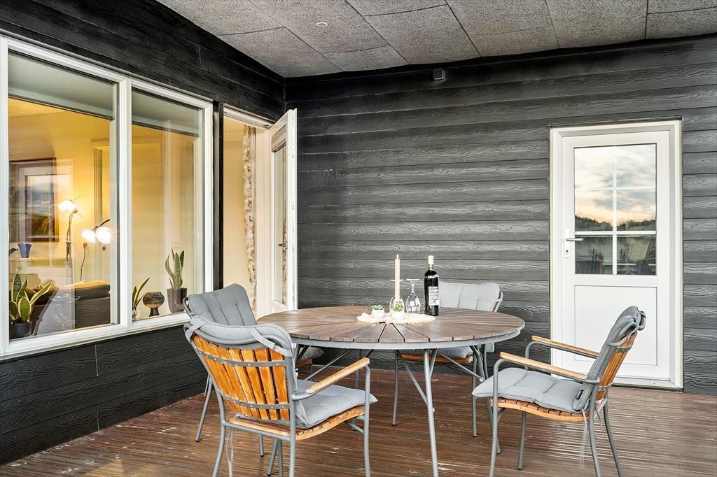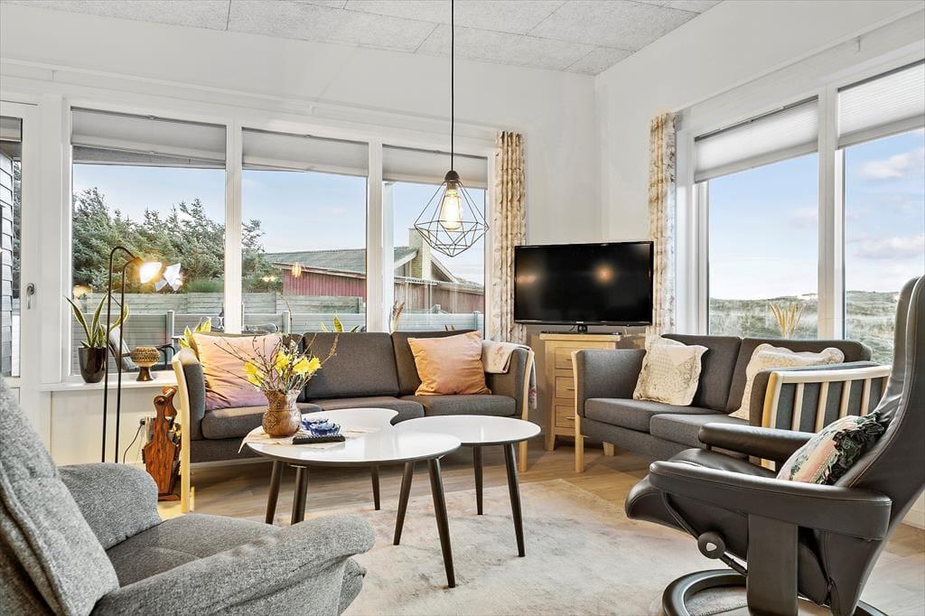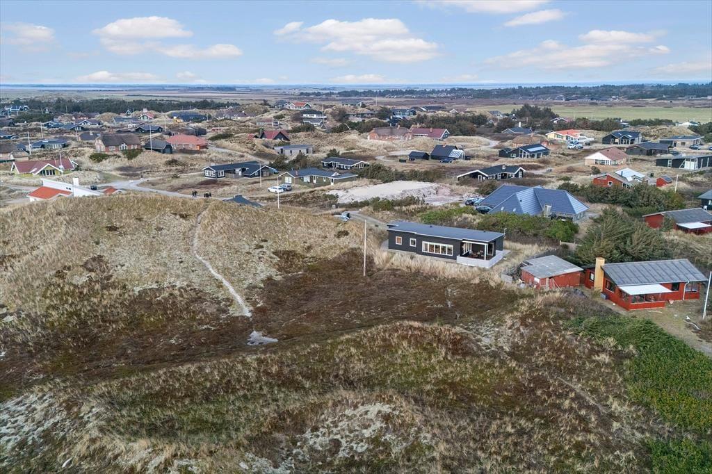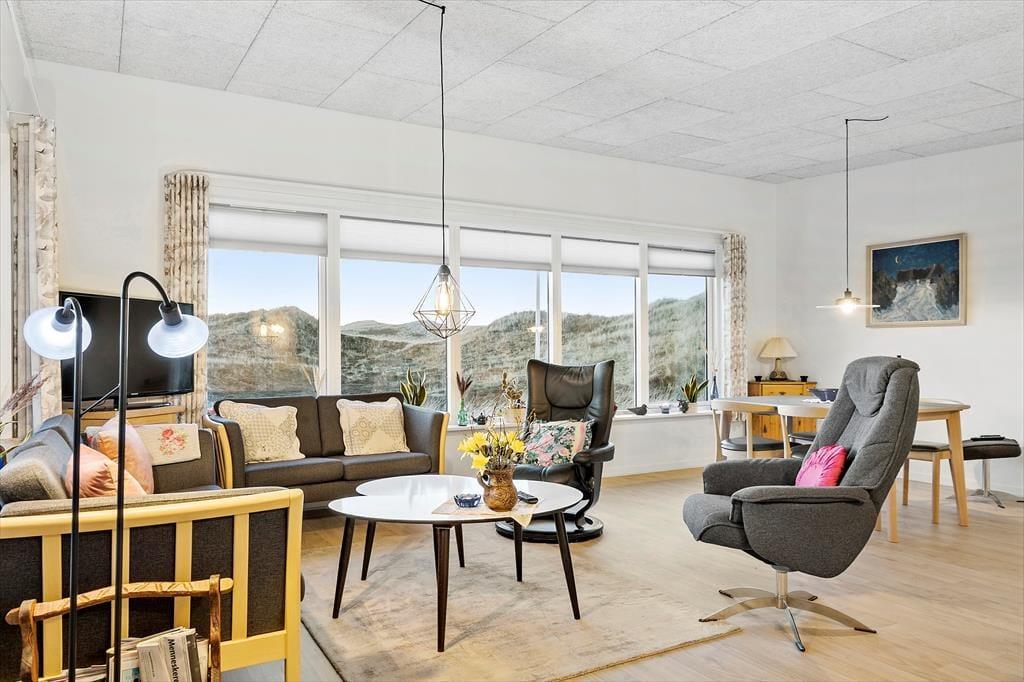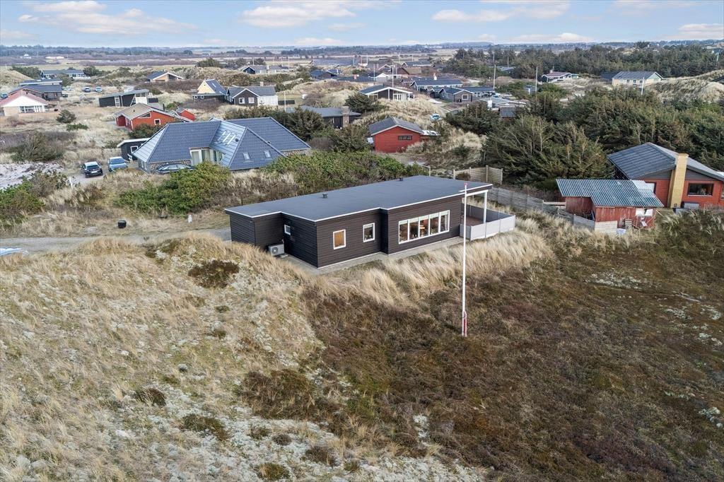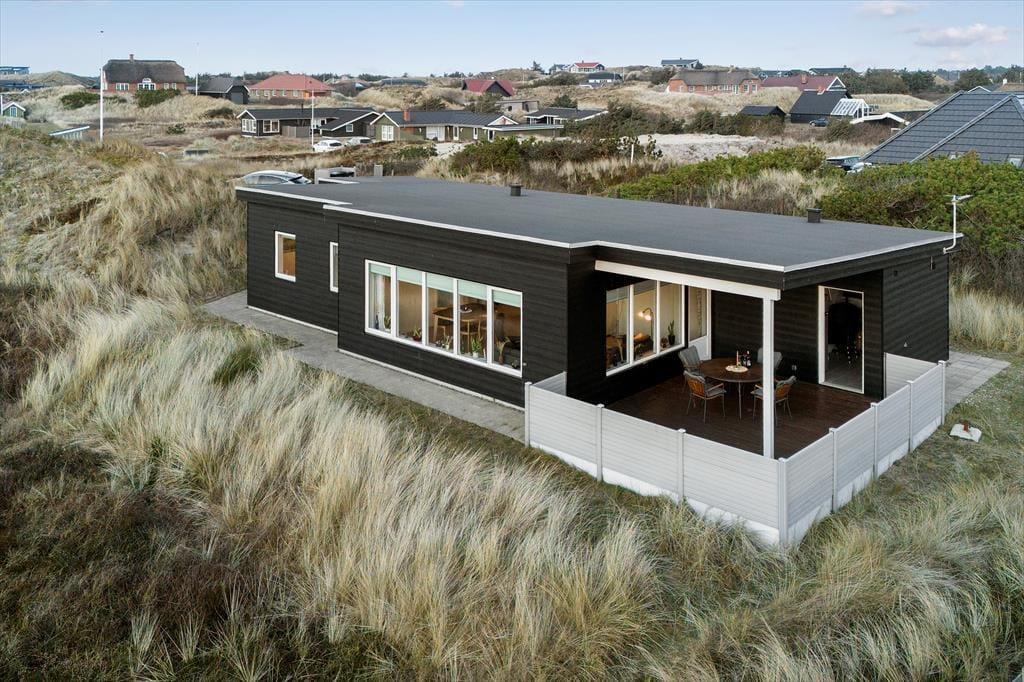 Udenfor venter en dejlig både lukket og overdækket træterrasse, hvor du kan tilbringe mange timer i det fri. Her kan du sidde og nyde den smukke natur omkring dig, og måske endda nyde en god bog eller en kop kaffe, mens du lader roen sænke sig. Den private beliggenhed gør det muligt at være helt uforstyrret, så du kan nyde både sol og skygge, afhængigt af hvor du placerer dig på terrassen. Den skønne udsigt til klitterne gør det ekstra hyggeligt at være ude, og om aftenen kan du få en fantastisk oplevelse, når solen går ned over landskabet.