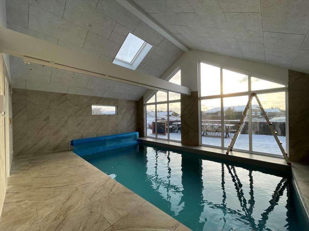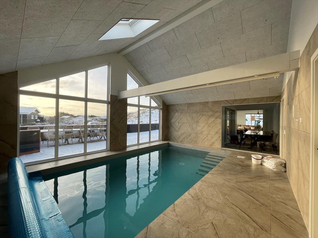 Indendørs finder I også husets poolafdeling, som er noget helt særligt. Poolen er nemlig med saltvandsanlæg, hvilket betyder, at I slipper for den klassiske klorlugt. Vandet føles blødere mod huden, er mere skånsomt – og samtidig et mere miljøvenligt valg. For os er det en klar kvalitet, som løfter ferieoplevelsen markant. Sommerhuset er desuden handicapvenligt indrettet med brede døre, lift i det ene soveværelse samt lift over poolen, så alle har mulighed for at nyde vandet og opholdet fuldt ud.