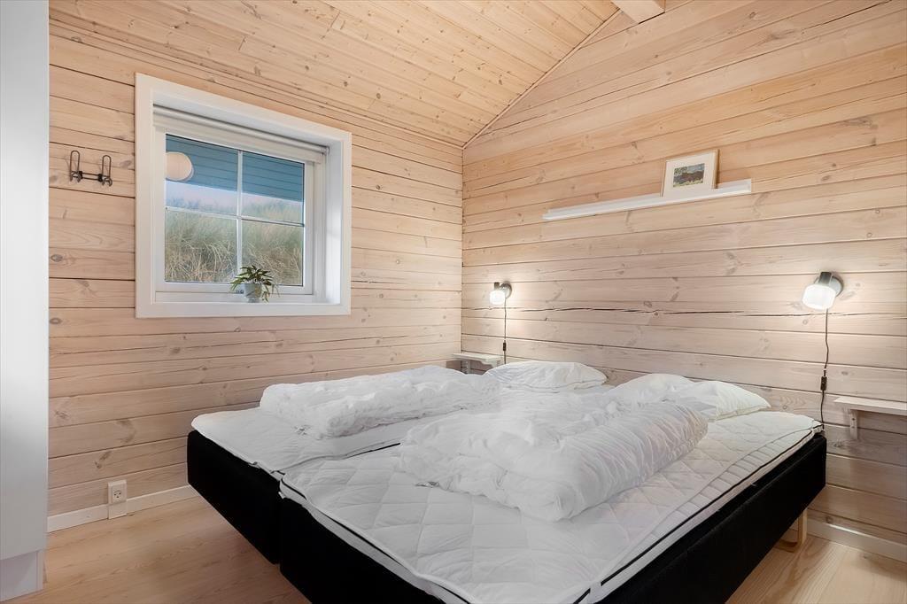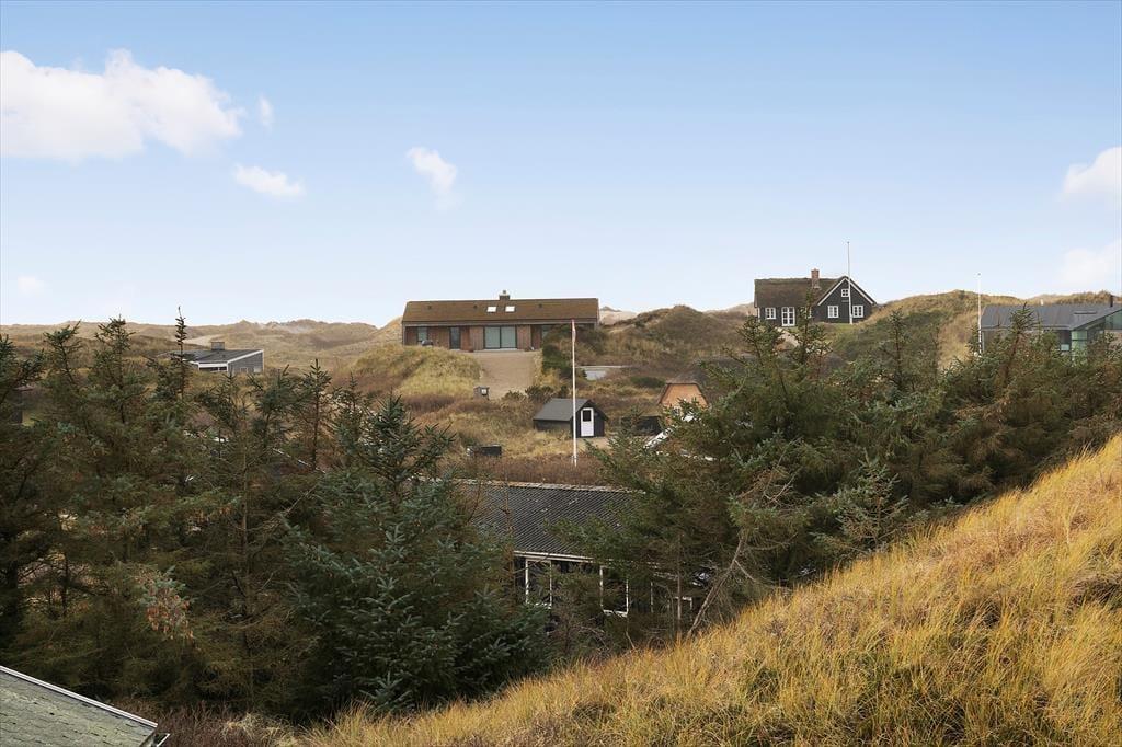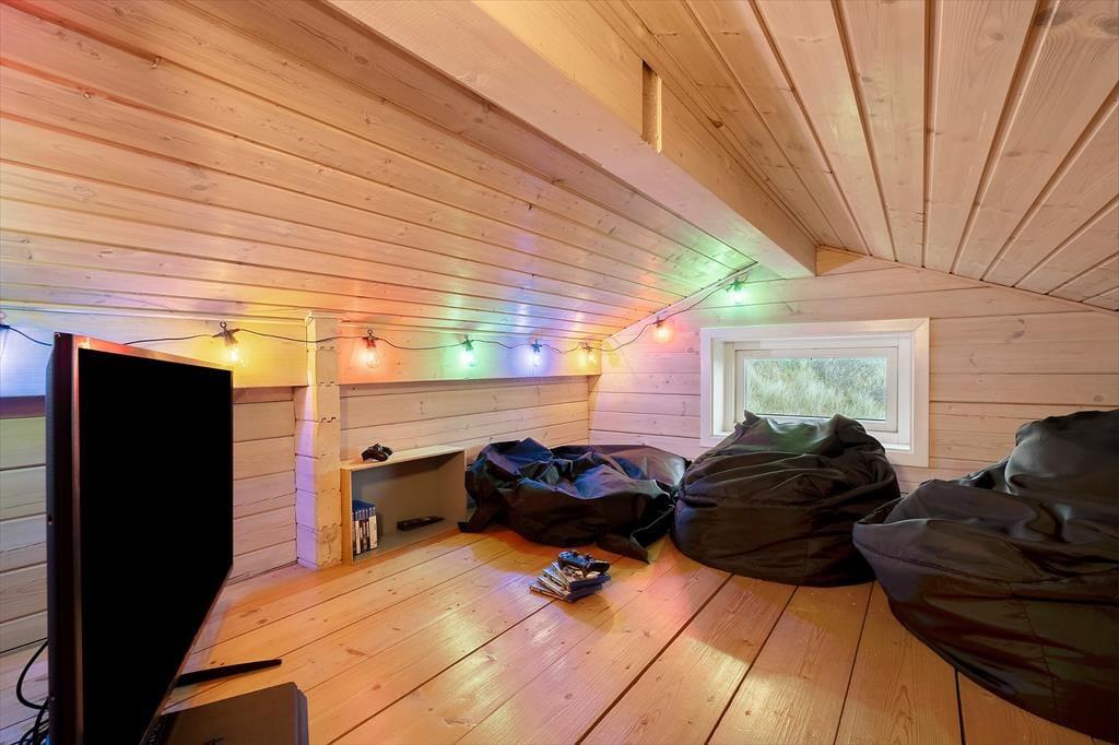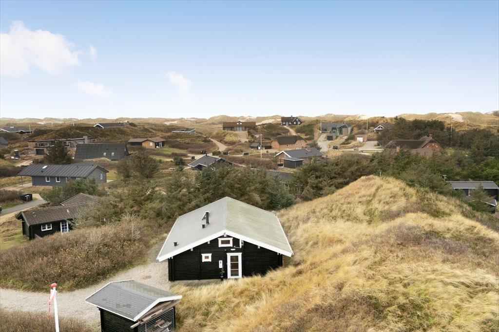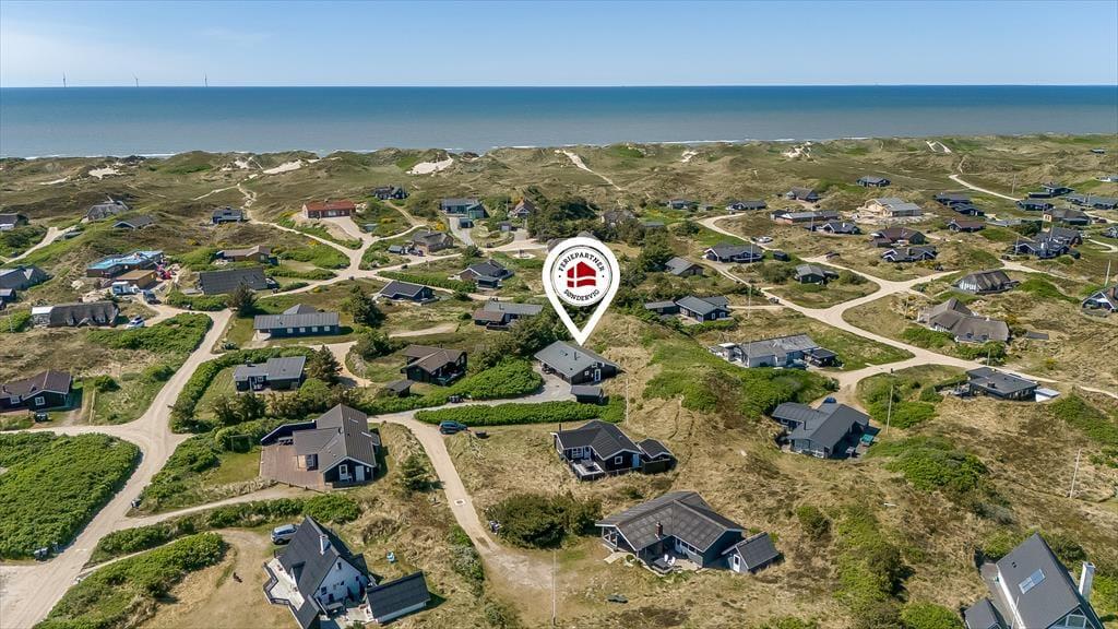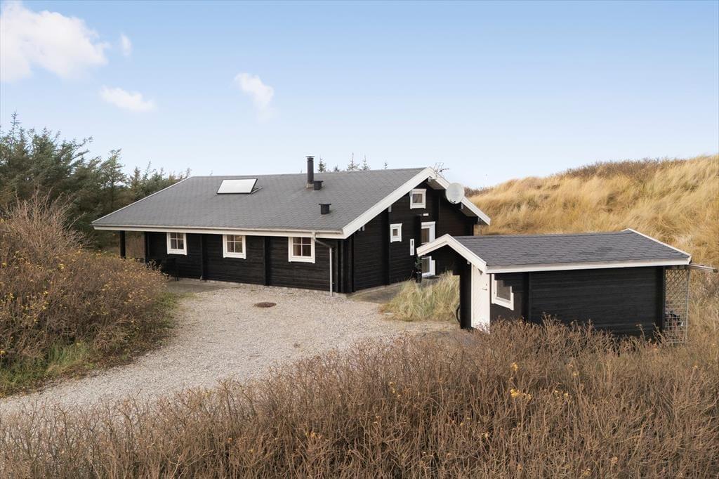 Det hyggelige bjælkehus ligger godt tilbagetrukket på den lukkede Troldedalen, bare 400 meter fra Houvig Strand og det brusende Vesterhav. Den attraktive adresse betyder, at I kan tilbringe en stor del af ferien i vandkanten – uanset om I er kommet for at bade, eller om I er mere til at gå lange ture og lede efter flotte sten og skaller. Den nemme adgang til den nærmeste golfbane og lokalområdets mange fiskespots vil golfspillere og lystfiskere sikkert værdsætte, og hvis I har medbragt cykler, kan I se frem til mange skønne udflugter til Stadil Fjord, Ringkøbing eller Hvide Sande. Den hyggelige badeby Søndervig ligger kun et par kilometer mod syd, når I vil købe ind, gå på restaurant eller finde en sjov ferieaktivitet til hele familien.