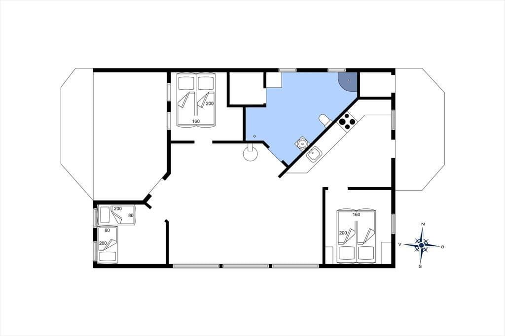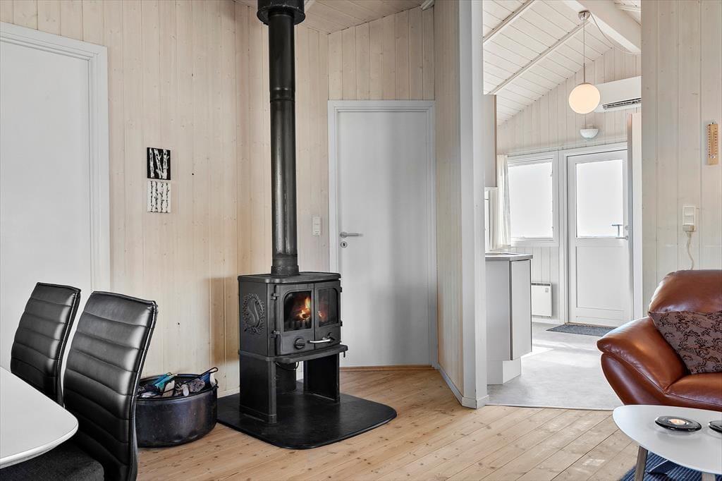 En stor del af dagens vågne timer kan oplagt foregå ude i Houvigs friske luft og frie omgivelser, men det er nu også fristende at drive den af i sommerhuset, der er et pænt renoveret træhus med plads til fire personer. Efter en delvis renovering kan I hygge jer med madlavningen i den lækre, nye køkkenafdeling, der ligger i åben forbindelse med stuen. Et fladskærms-tv med Chromecast og en god fibernetforbindelse er til rådighed, når I ikke hygger jer med analog underholdning som bøger, brætspil og sudokuer, og takket være varmepumpen og brændeovnen får I nemt den helt rette temperatur. Trænger I til at blive varmet helt igennem efter en gåtur i blæsevejret, er der spabad og sauna på badeværelset, og tre gode soveværelser står klar, når det er sengetid.