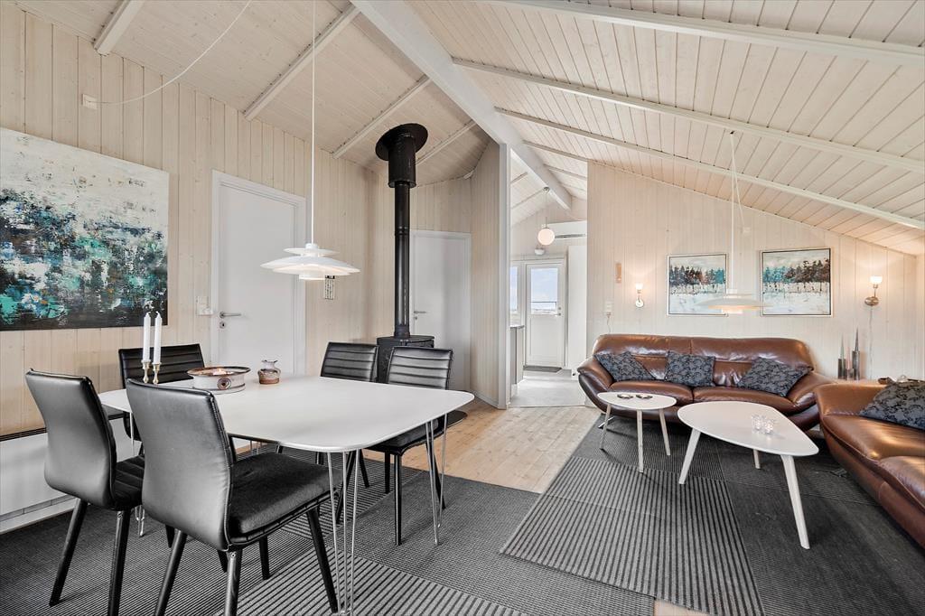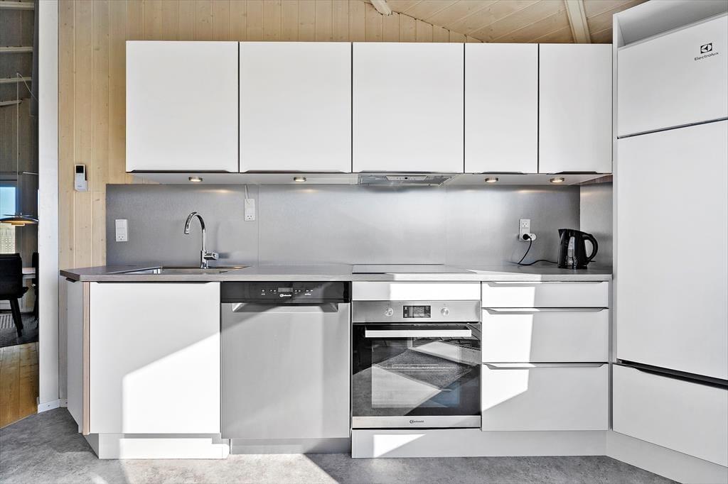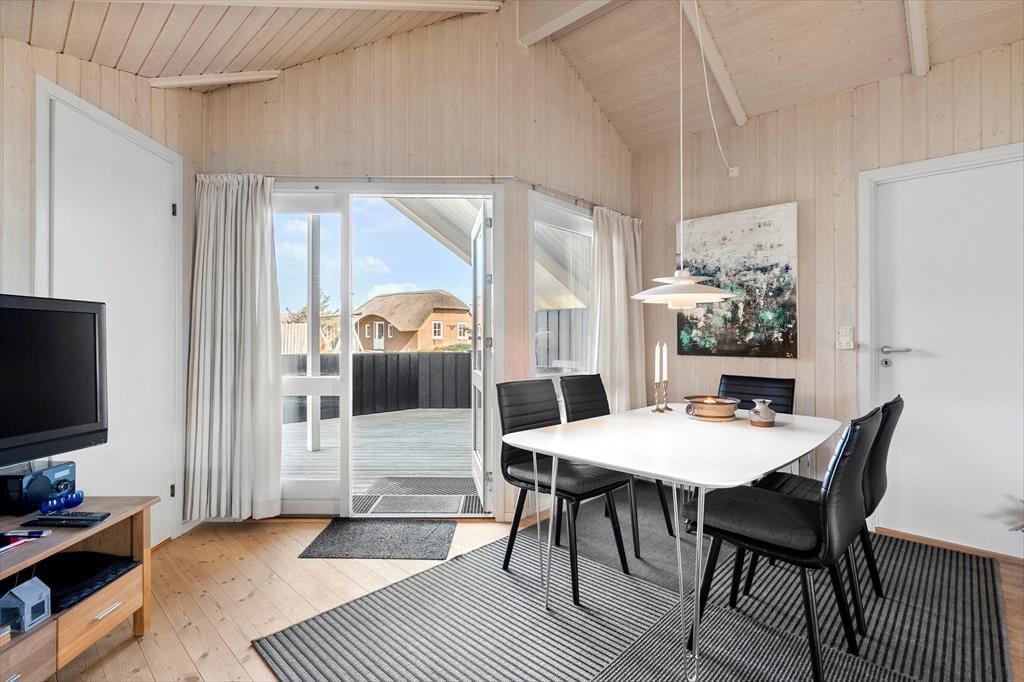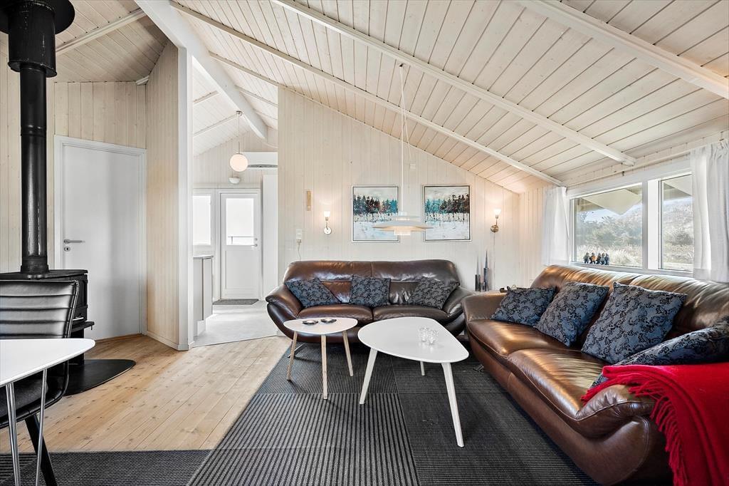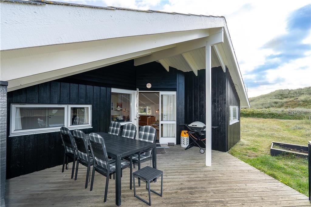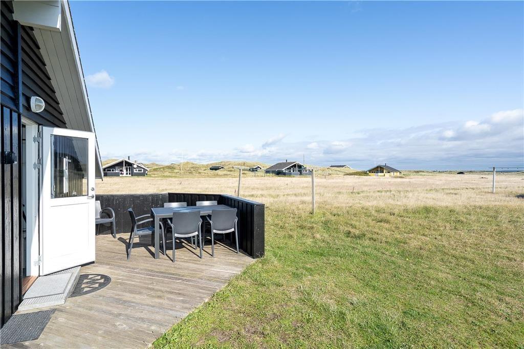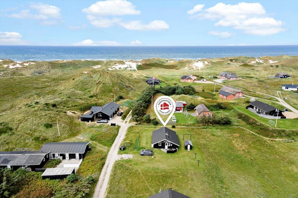 Ude nyder I godt af, at I befinder jer i et kuperet landskab med spredte sommerhuse på små, stille veje. Alt ånder fred og idyl, og klitterne skærmer af mod vinden – og sikrer jer en køn udsigt, når I slapper af på terrassen eller leger på den store naturgrund. Til børnene er der sandkasse og gyngestativ, og uanset om I sidder på den åbne østterrasse eller den delvist overdækkede terrasse mod vest, foregår driverlivet i gode havemøbler. I har også adgang til en grill, og til elbilen findes en ladeboks (type 2-stik, medbring selv kabel).