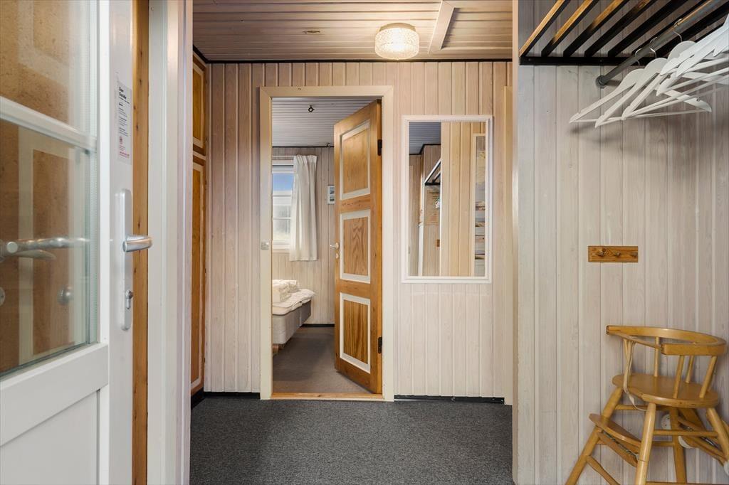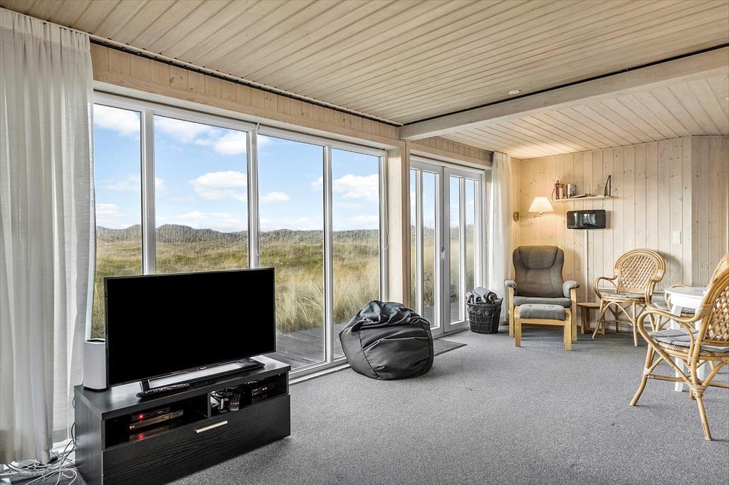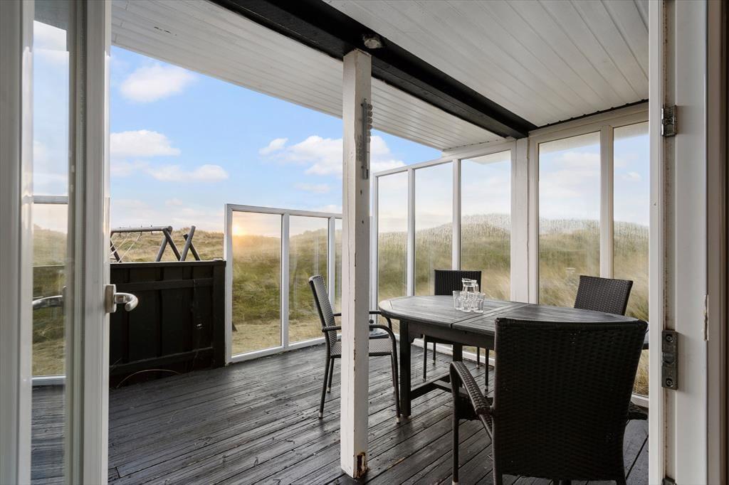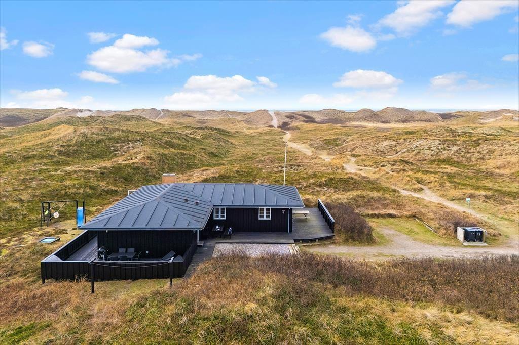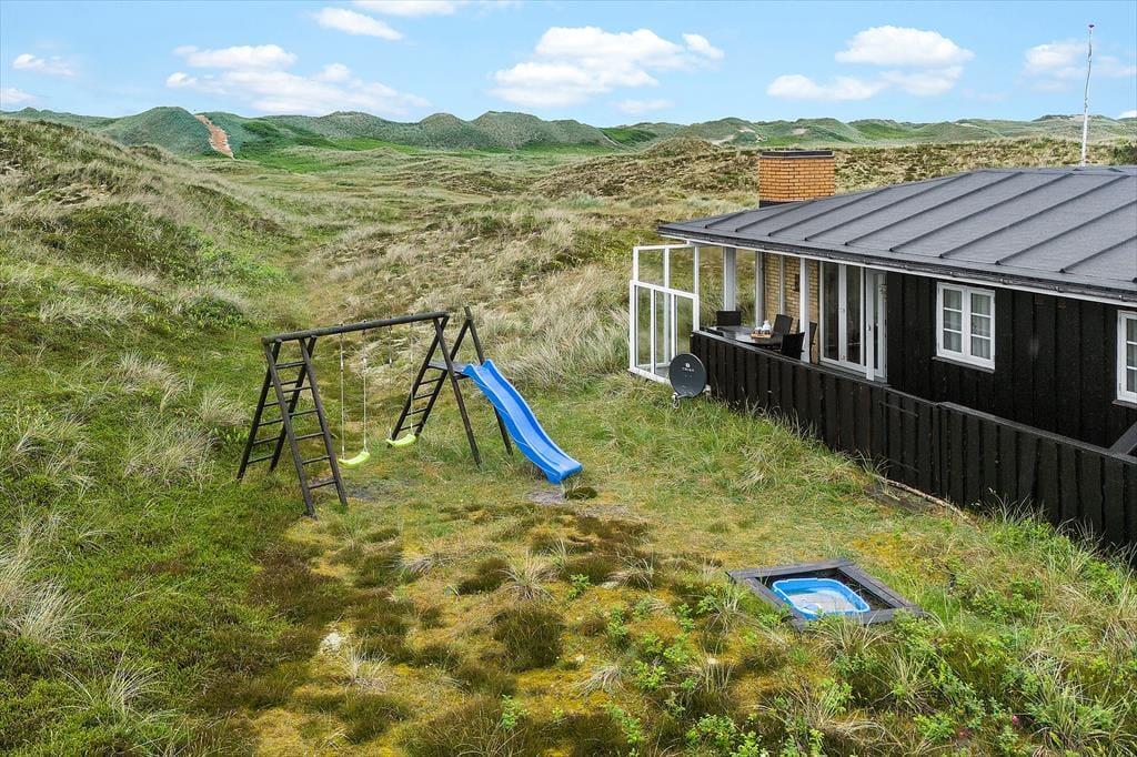 Rundt om sommerhuset har I flere terrasser at vælge imellem, så det er nemt at finde en opholdsplads i læ for vinden. Især mod vest er udsigten helt forrygende, og på det delvist overdækkede terrasseområde mod syd er der glasafskærmning, så I ikke går glip af de flotte naturomgivelser, når I spiser frokost i solen. Der er sandkasse og legestativ med gynger til børnene, som for øvrigt kan lege i rolige omgivelser på naturgrunden.