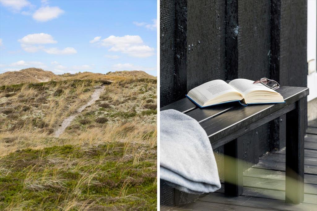 Mågedalen ender blindt lige ved sommerhuset, så I skal bare følge de små stier ud i klitterne, når I vil ned på stranden. Houvig Strand imponerer i al slags vejr, og uanset om I har lyst til at bade, vandre eller spille strandspil, er I kommet til det rette sted. Fra det fredfyldte sommerhusområde har I nem adgang til den nærmeste fiskesø og den lokale golfbane, og en sæsonåben bager ligger i kort gåafstand fra Mågedalen. Lidt længere mod syd ligger den populære badeby Søndervig, der har et godt udvalg af spisesteder, butikker og ferieaktiviteter – inklusiv et tropisk badeland, tennisbaner og en årligt tilbagevendende sandskulpturfestival.