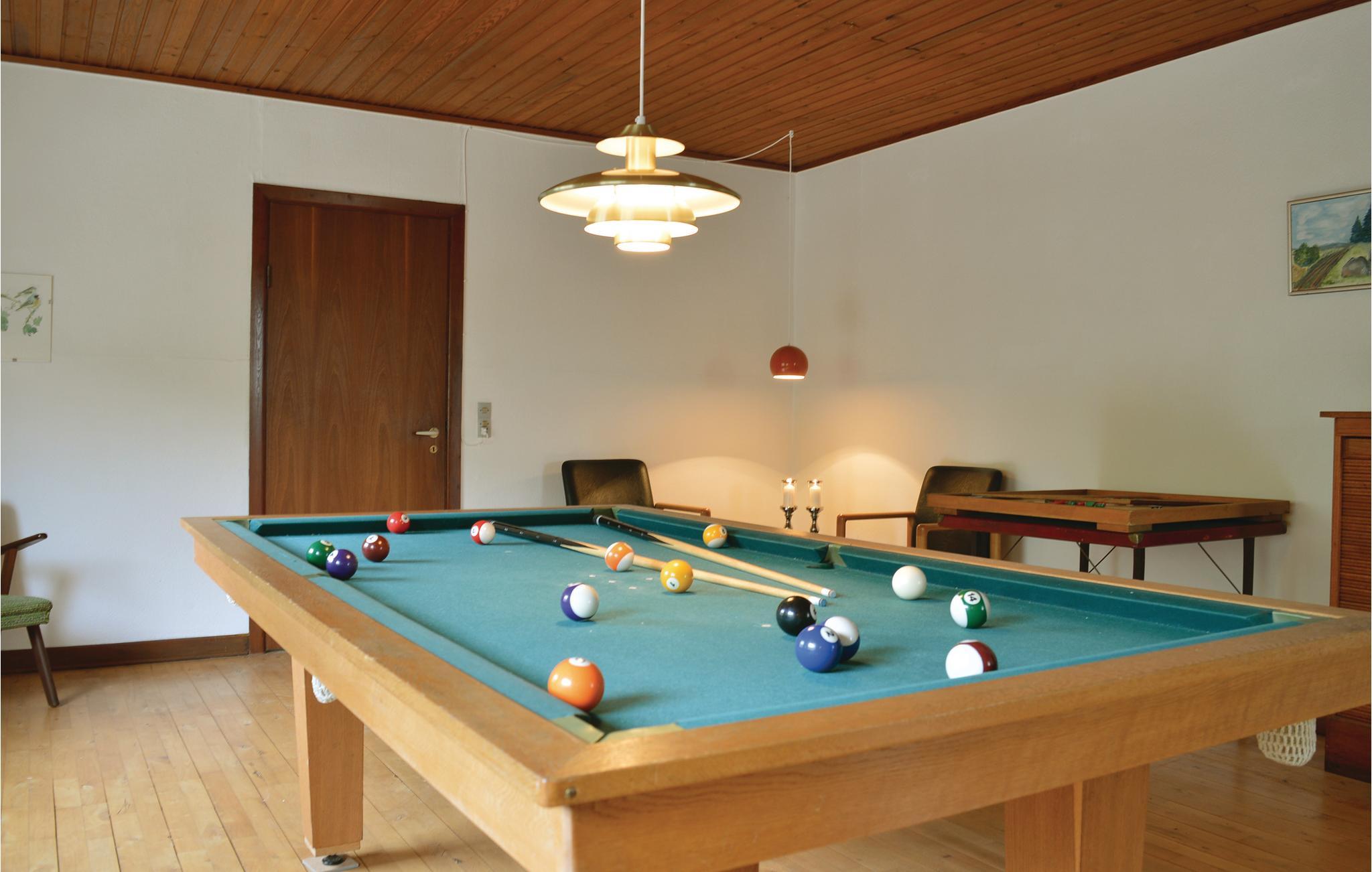 I hovedhuset er der plads til både store og små, og skal der holdes en fødselsdag eller en familiekomsammen, er det store køkken/alrum, som er hjertet i huset, det helt perfekte sted. I stueetagen er der også et stort aktivitetsrum med poolbord, så her kan I muntre jer med mange timers sjov og spas, eller I kan trække jer tilbage til tv-stuen med ren hygge og snak, mens ilden knitrer i brændeovnen. På første sal er der yderligere en stor tv-stue, fire gode soveværelser samt et badeværelse.