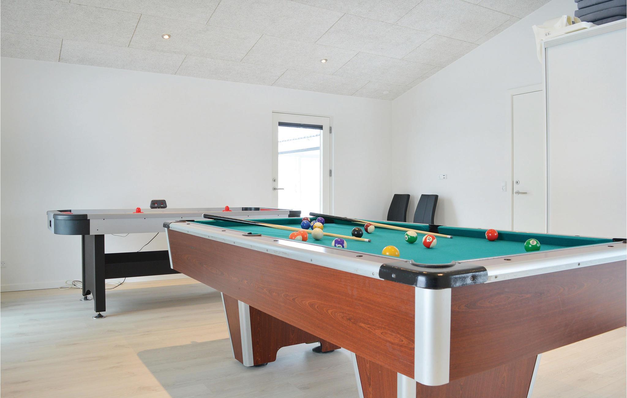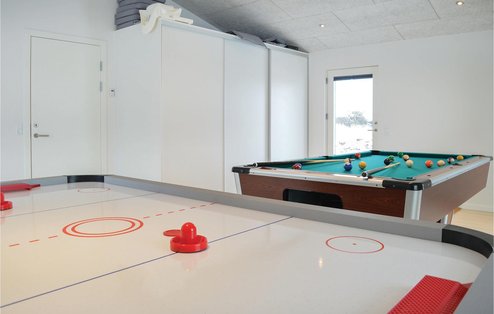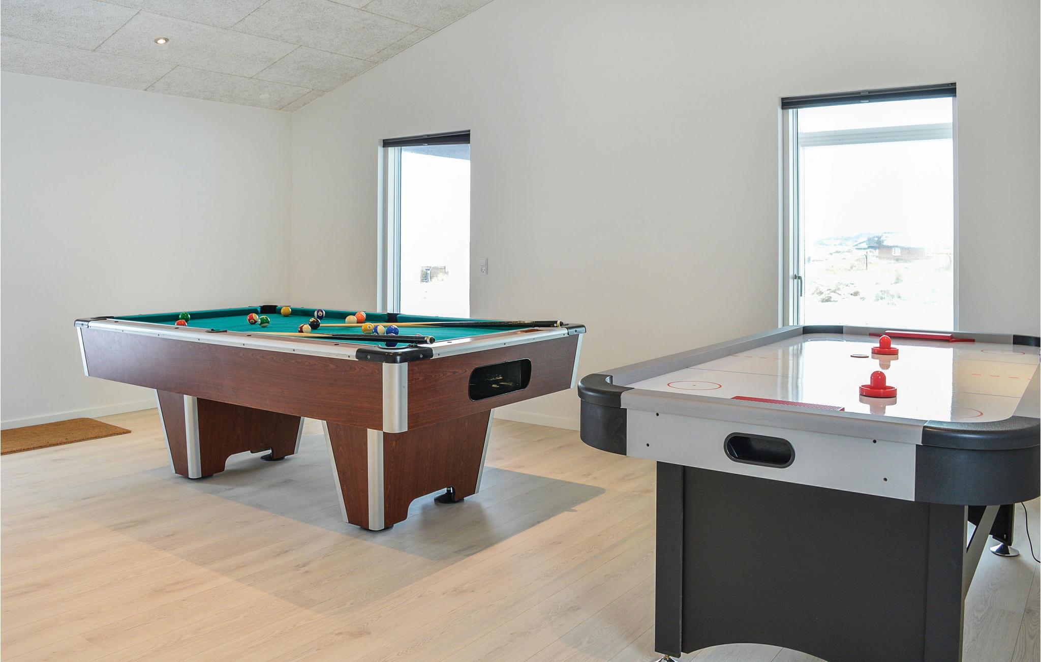 Huset er indrettet med et lyst kombineret køkken og stueområde, fire soveværelser, aktivitetsrum med bl.a. billardbord samt to badeværelser, hvoraf det ene er med både spa og sauna. Udendørs har I flere terrasser, både overdækkede og åbne, så I har gode muligheder for at finde læ. Fra huset såvel som terrasserne har I en flot udsigt til området og klitterne. Huset er beliggende i et roligt område, med kun 5 km til badebyen Søndervig, hvor der er aktiviteter for både store og små. Søndervig tilbyder et væld af aktiviteter. I kan f.eks. leje cykler, tage i svømmehallen, shoppe i de forskellige specialforretninger, udfordre hinanden i bowling- og aktivitetscenteret, besøge de mange legepladser, hygge på "torvet" på badevej, hvor en stor sandkasse er opført med tilhørende siddepladser og handle i områdets store dagligvareforretning. I området er der mange kilometers cykel- og vandrestier der snor sig i landskabet, der er en stor golfbane opført med respekt for områdets særpræg, gode fiskesøer hvor aftensmaden kan fanges og flere surfspots ved Ringkøbing Fjord. Glem endelig ikke Vesterhavet som er ganske unik, uanset årstid, for her er strand så langt øjet rækker. Om sommeren er stranden ofte fyldt med badende gæster, mens der om efteråret og vinteren ofte er mennesketomt, blæsende og mørkt - men alligevel fascinerende.