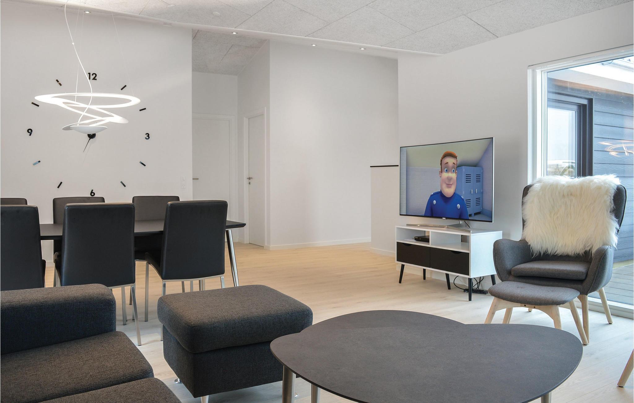 Moderne sommerhus fra 2017 ved Vesterhavet med sauna, spabad og aktivitetsrum.