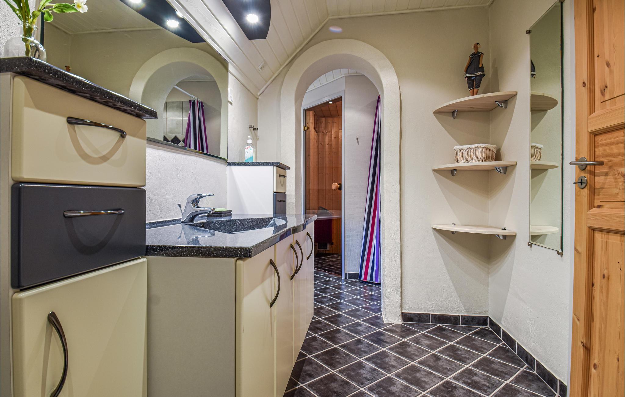Feriehuset indeholder et veludstyret, kombineret køkken/alrum/stue med bl.a. brændeovn samt varmepumpe som supplerende varmekilde. Varmepumpen har også aircondition til nedkøling på de varmeste dage. 3 soveværelser samt et stort badeværelse med både spabad og sauna samt et gæstetoilet. Feriehuset er perfekt til en herlig familieferie.
