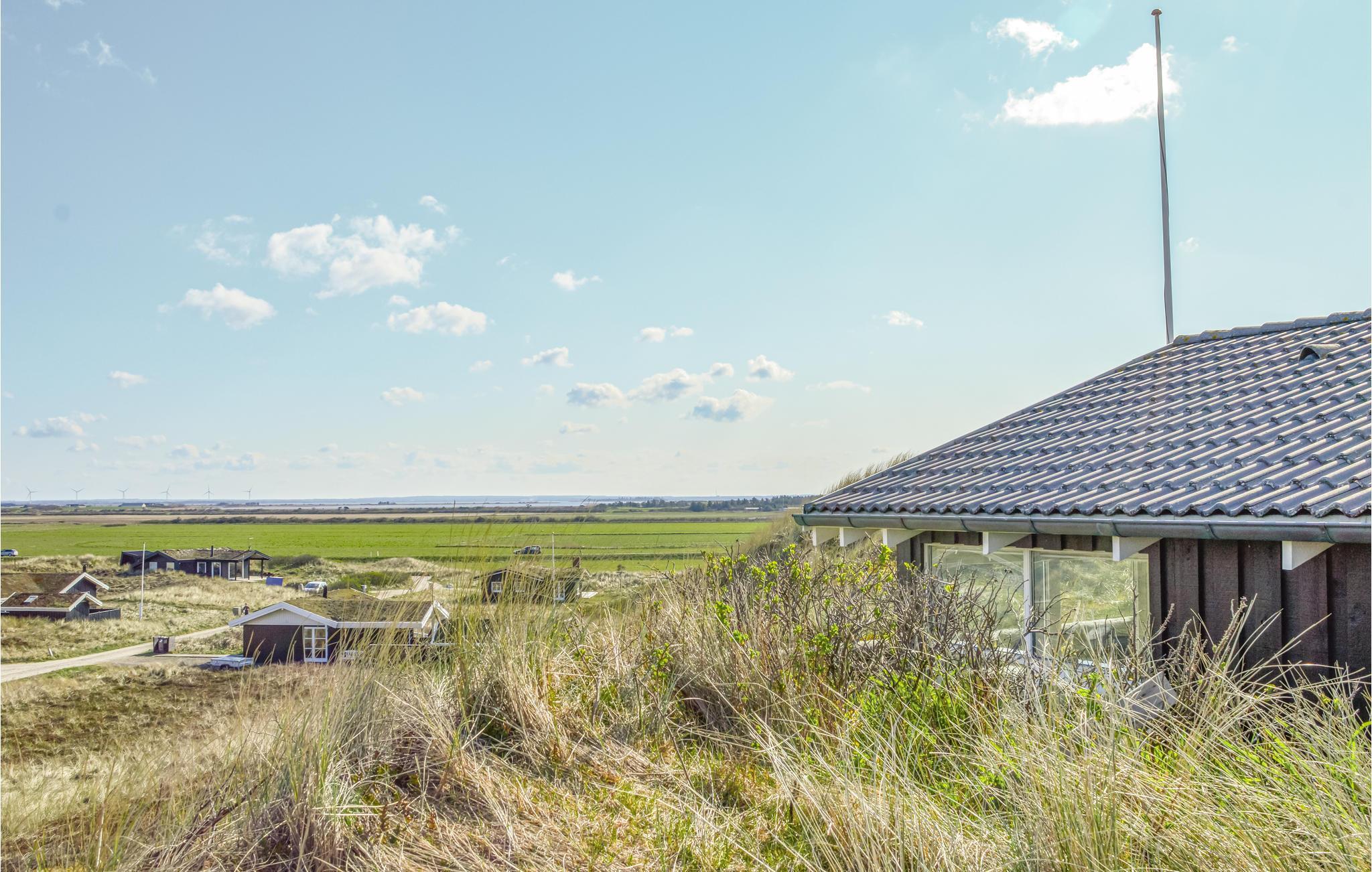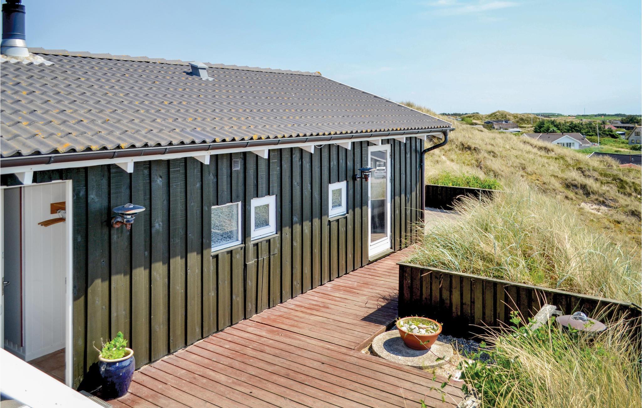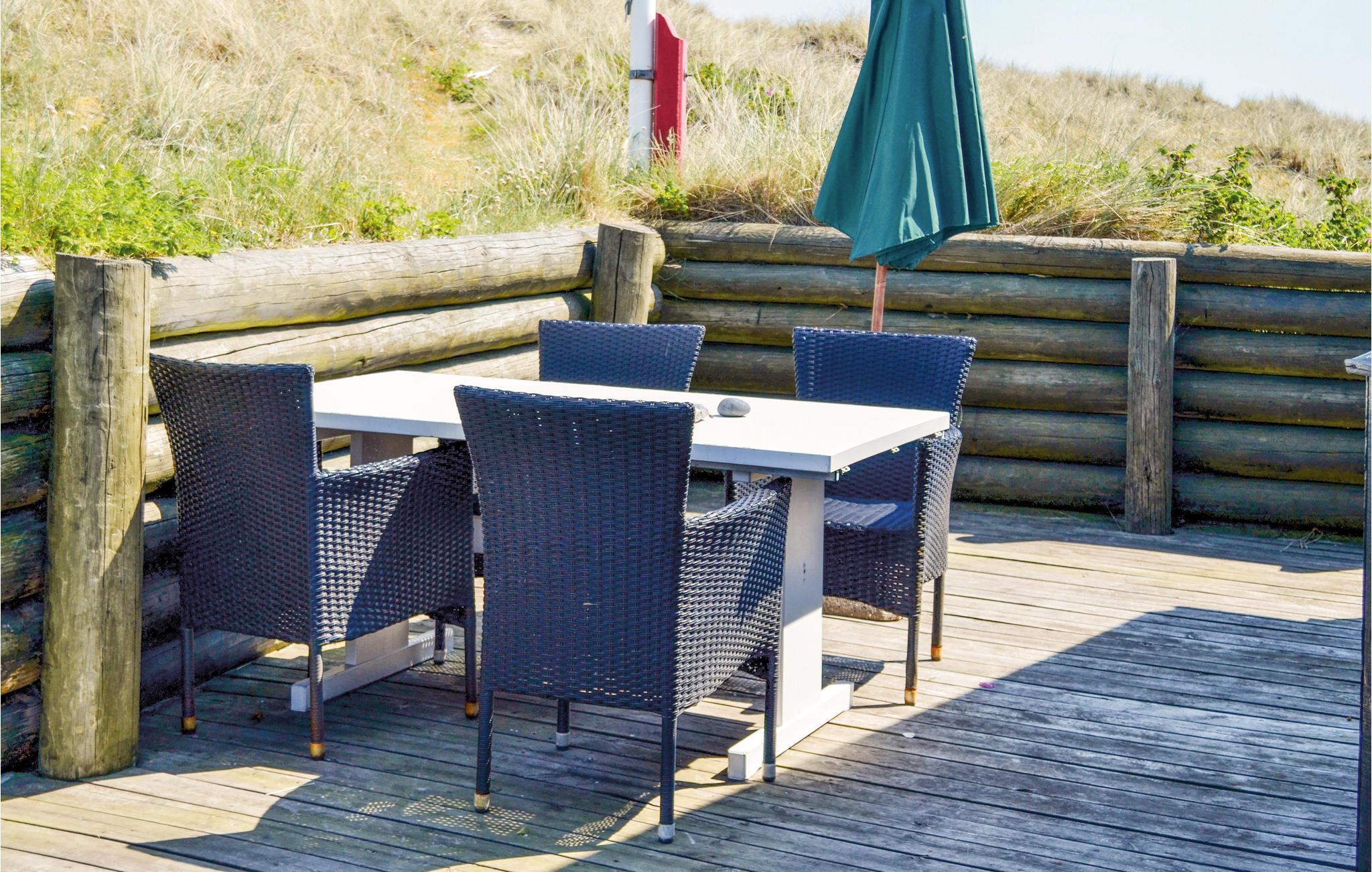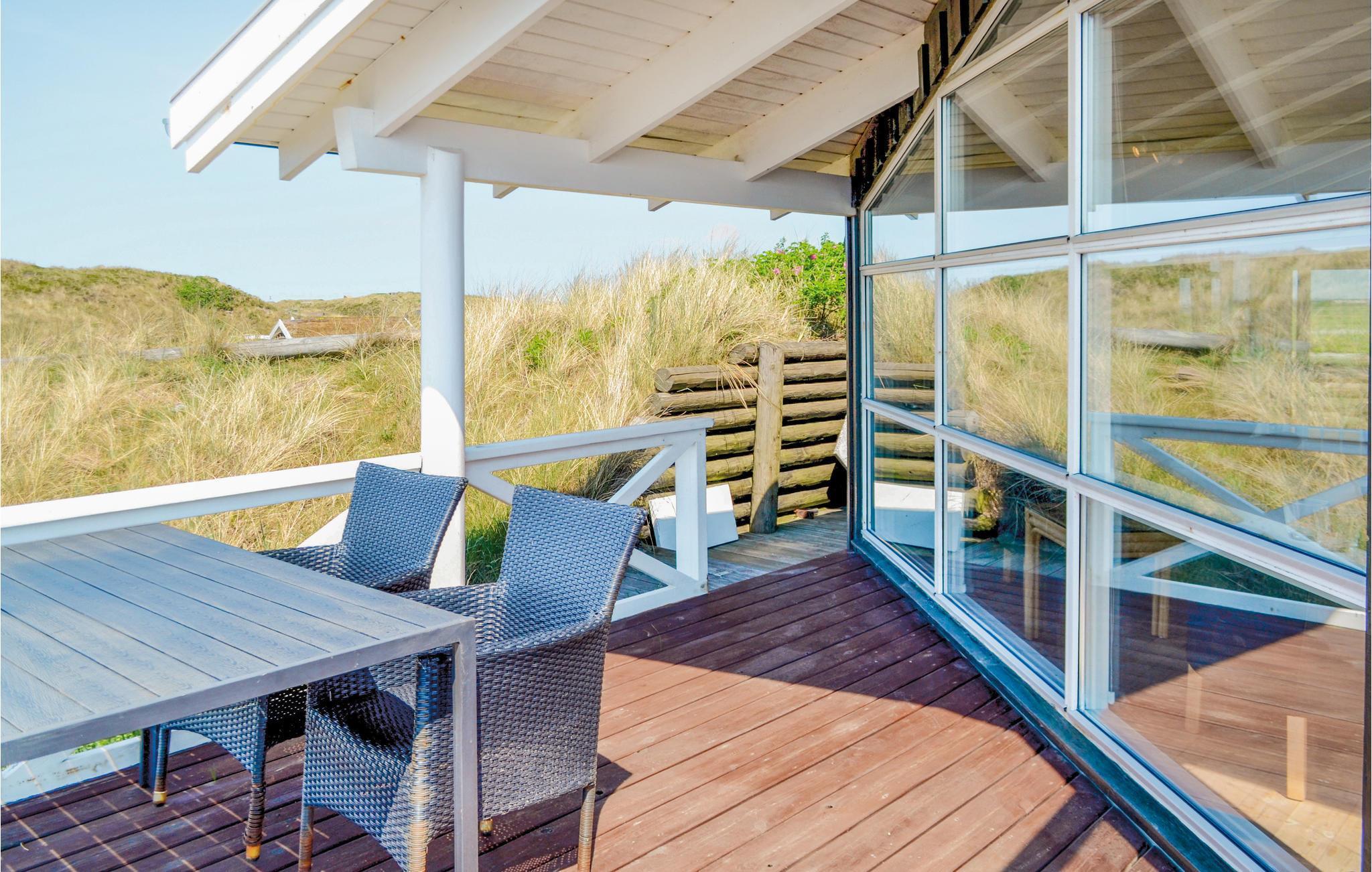 I dette luksuriøse, rigtig godt beliggende feriehus finder I alt til den perfekte ferie. Huset er omgivet af terrasser i forskellige niveauer, alle med en fantastisk udsigt over landskab, klitter, sommerhusområdet og til Vesterhavet. På den ene terrasse findes en standvandsspa og en udesauna, ligeledes med en fantastisk udsigt, så her er lagt op til mange timers udendørs wellness efter en lang gåtur ved det brusende Vesterhav. Når I træder ind i huset, er det første I møder en flot gaspejs, der styres via en fjernbetjening. I den ene ende af huset ligger soveværelserne. Et af de fire soveværelser er et master bedroom med tilhørende badeværelse, dertil kommer endnu et badeværelse med både bruser og et eksklusivt badekar.
